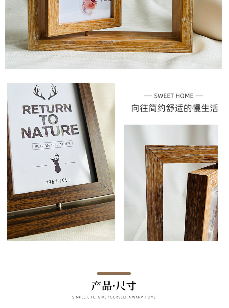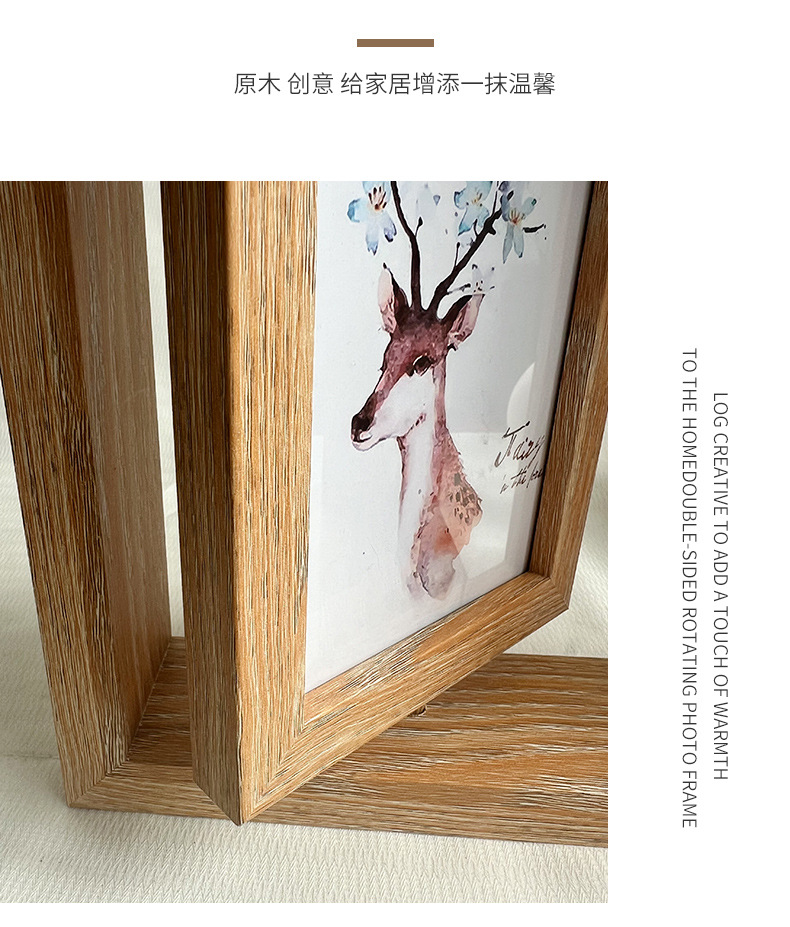 크로스보더 크리에이티브 회전식 나무 액자, 양면 사진, 목판화, 나뭇잎 조각 표본 6inch 커플 선물스토어 가기
