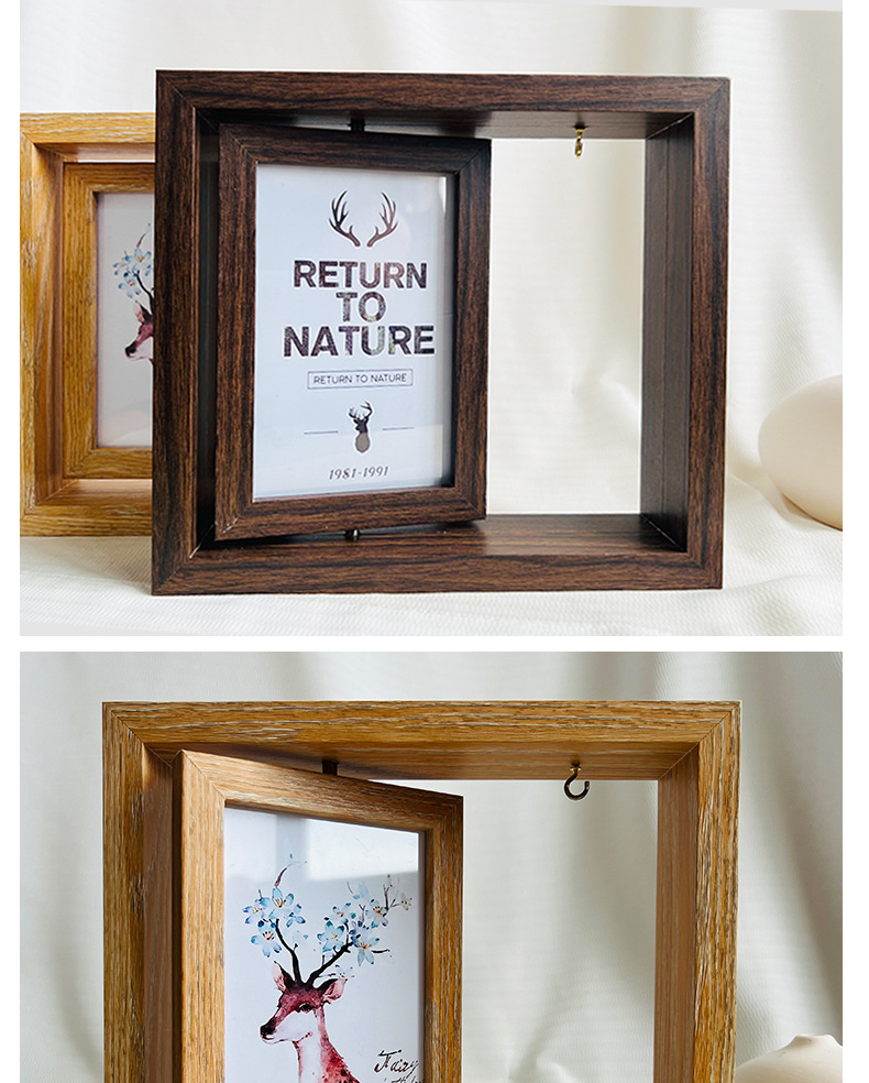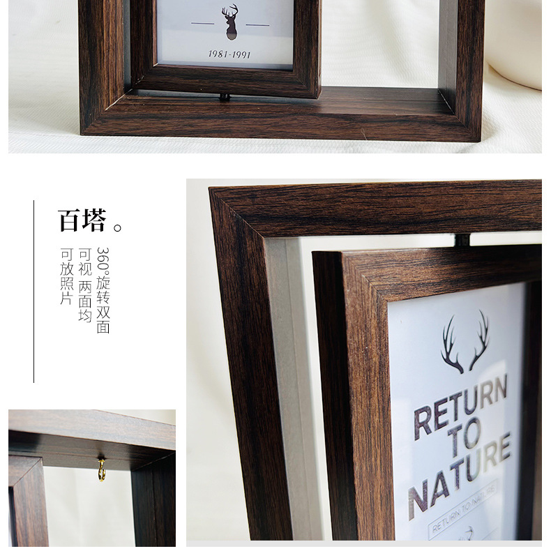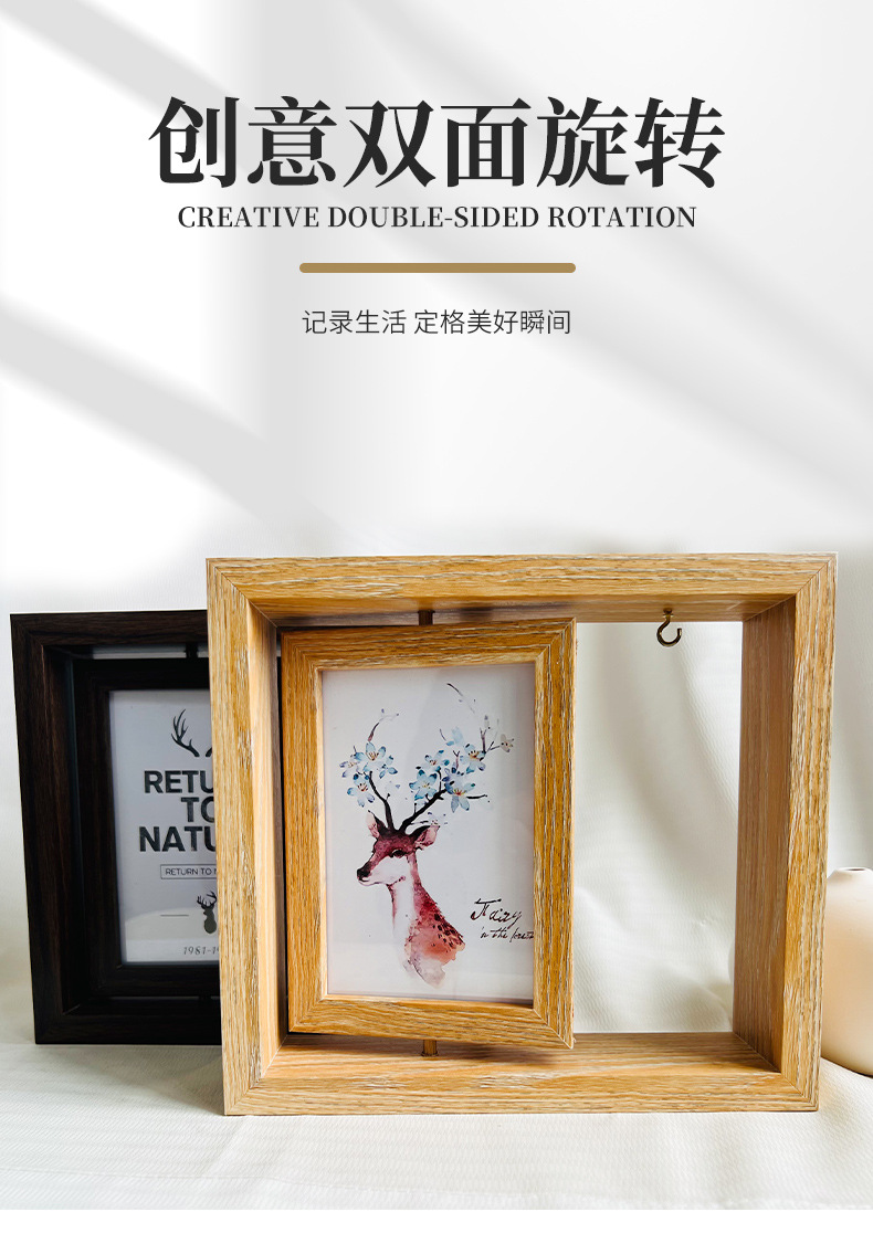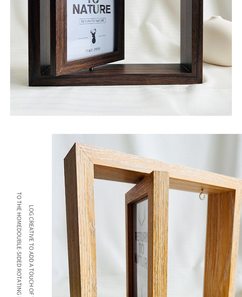 크로스보더 크리에이티브 회전식 나무 액자, 양면 사진, 목판화, 나뭇잎 조각 표본 6inch 커플 선물
