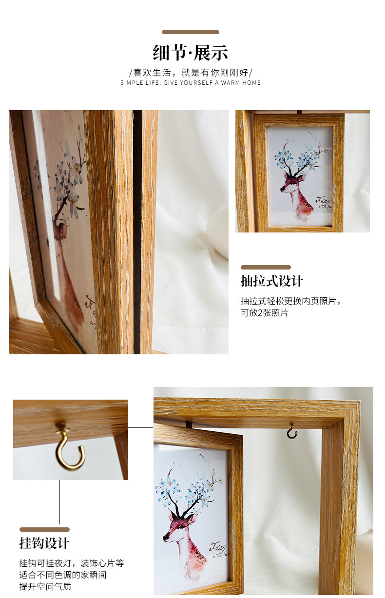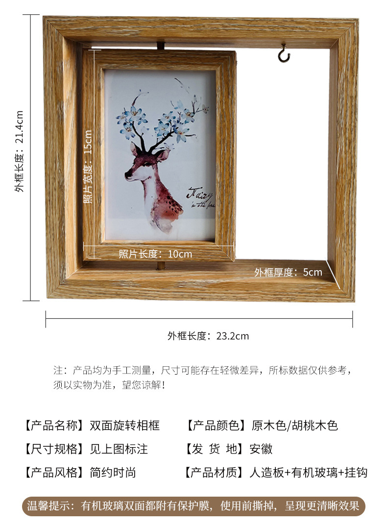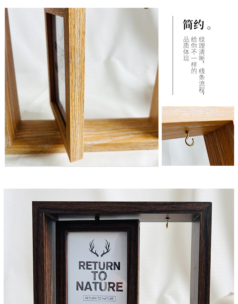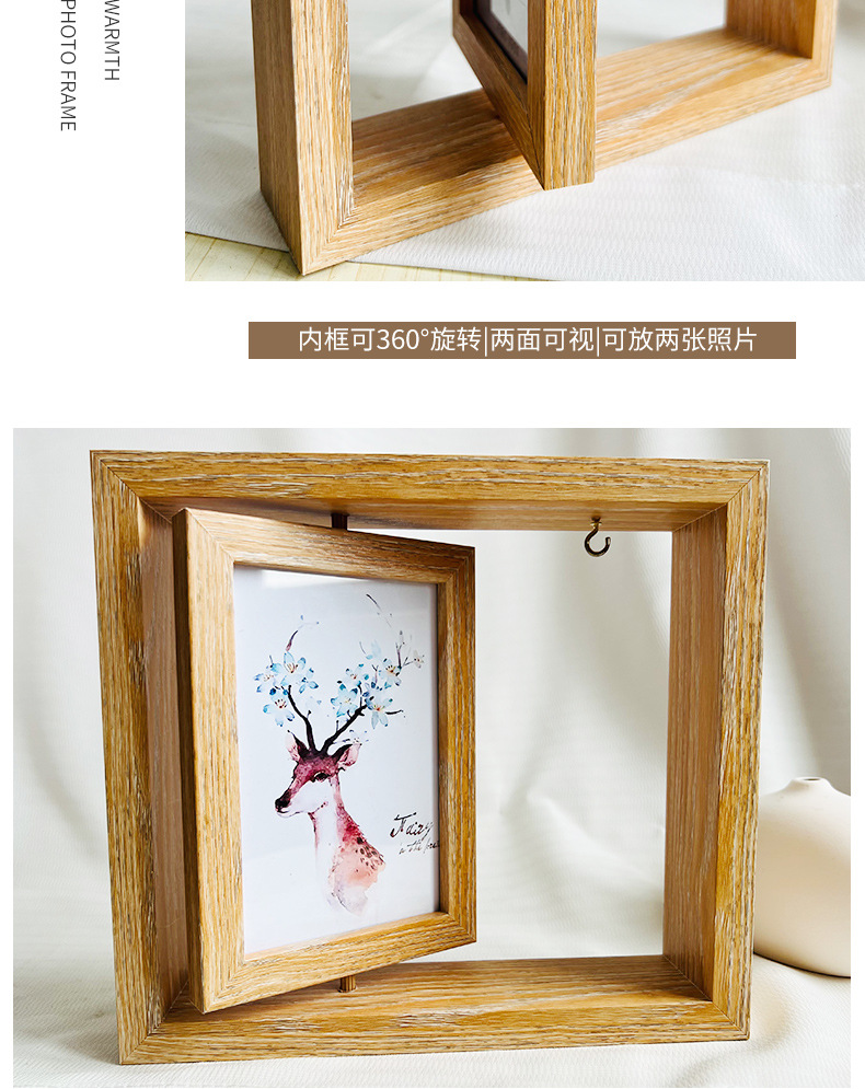 크로스보더 크리에이티브 회전식 나무 액자, 양면 사진, 목판화, 나뭇잎 조각 표본 6inch 커플 선물