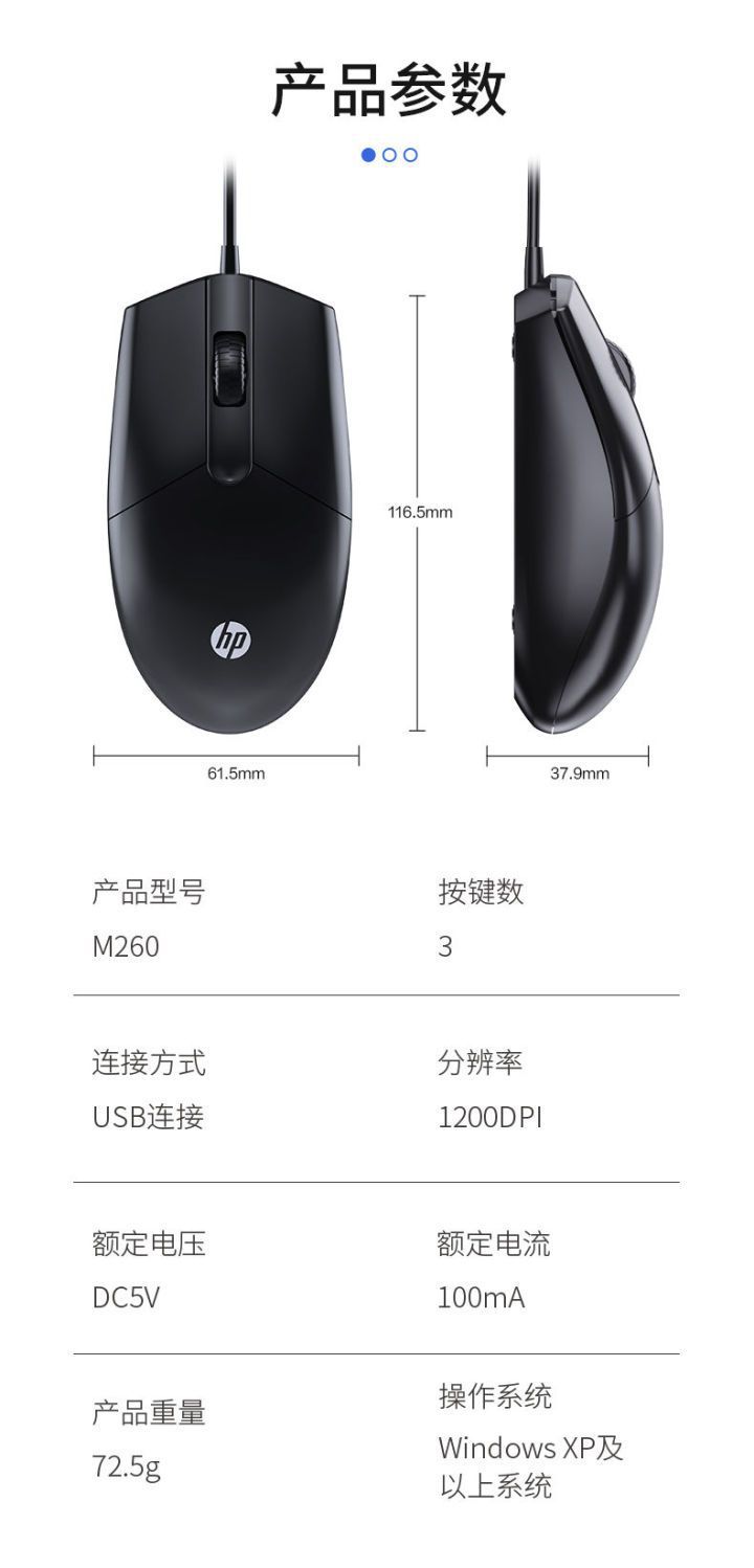 HP/HP M260 유선 마우스 홈 비즈니스 사무실 노트북 데스크탑 USB 범용 국경 도매스토어 가기