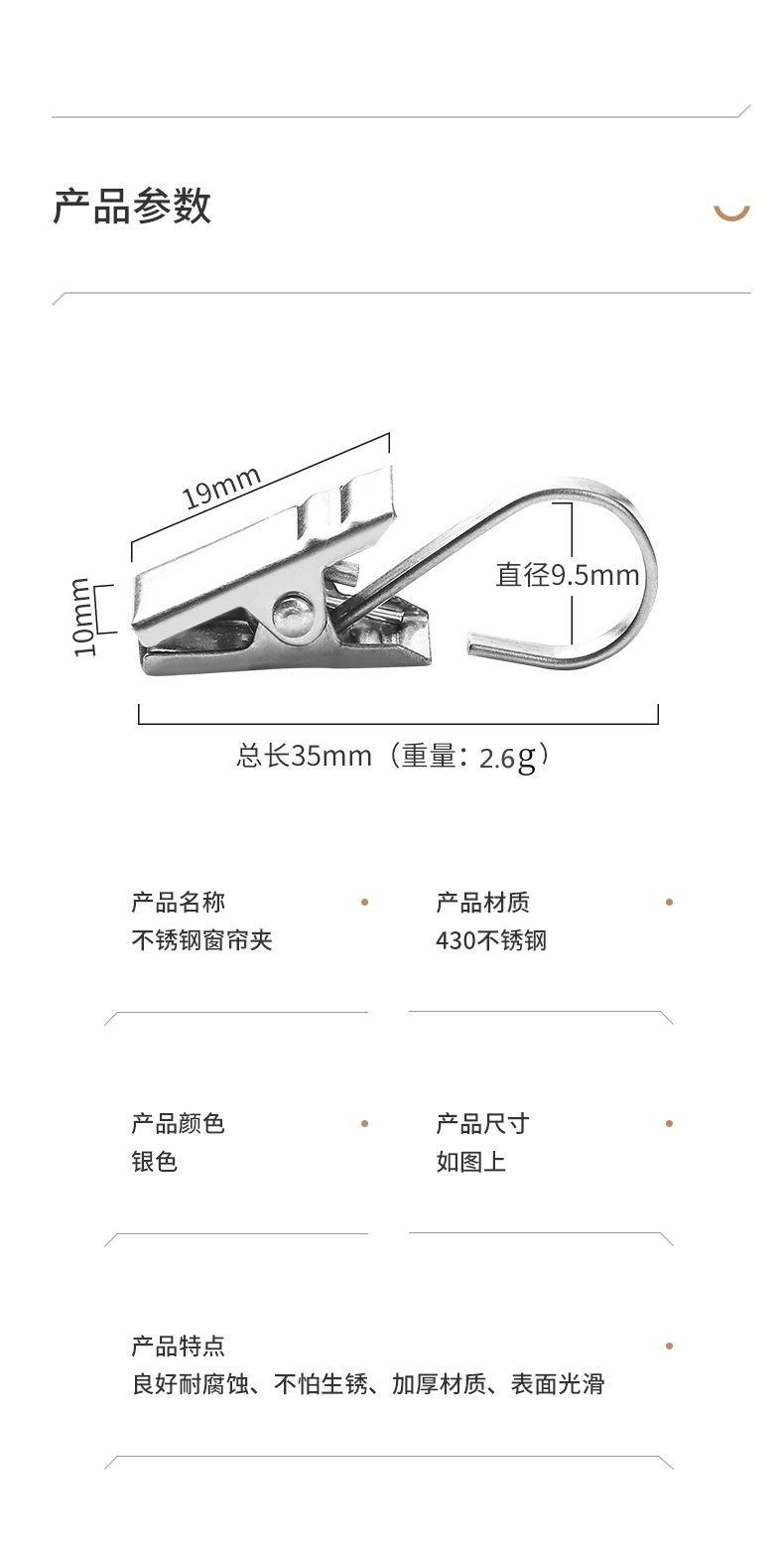 • 430 스테인리스 스틸 클립, 팩당 10개(꼬리 원형 클립은 평평하지 않음)