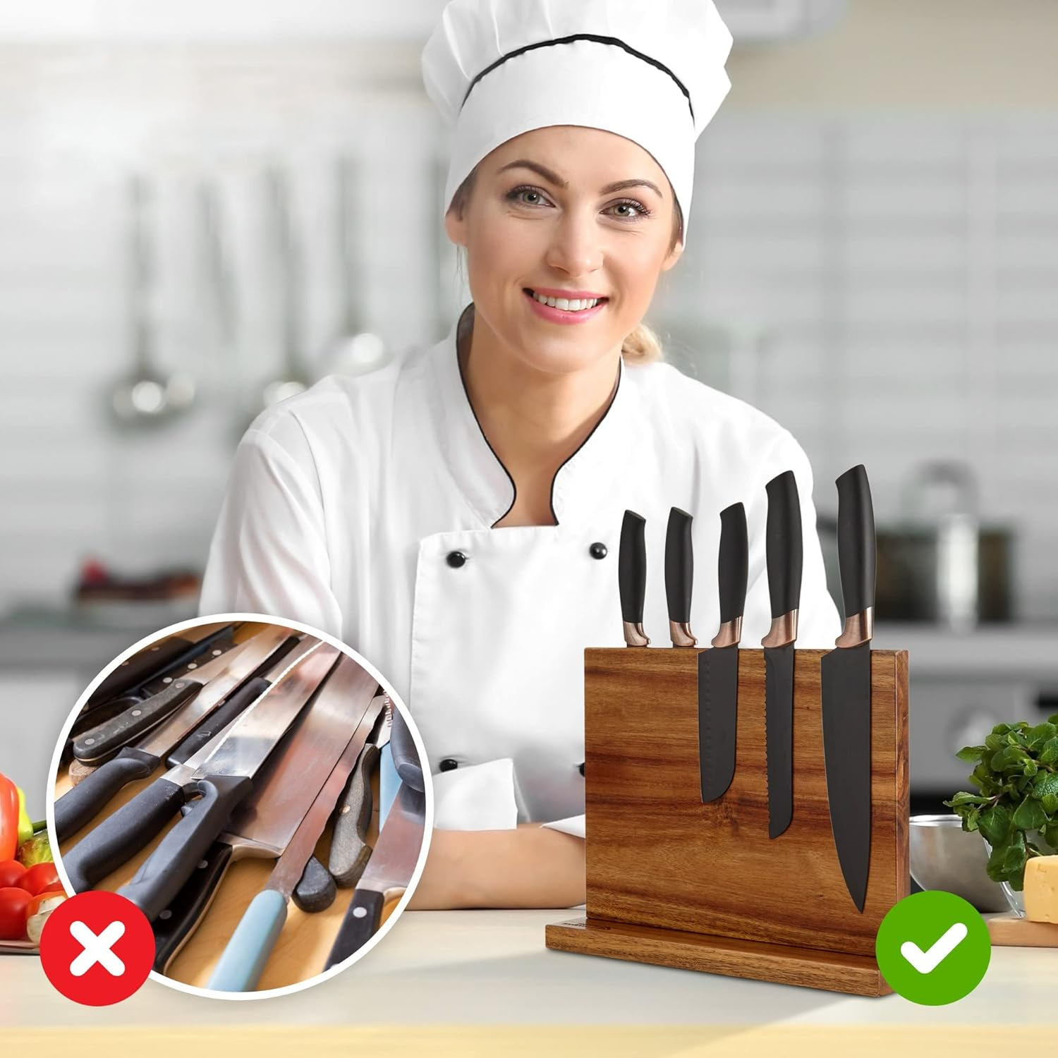 주방 양면 자기 목제 나이프 주방 보관 용 주방 나이프는 다기능 칼 저장 랙 마그네틱 나이프 홀드를 보유하고 있습니다.스토어 가기