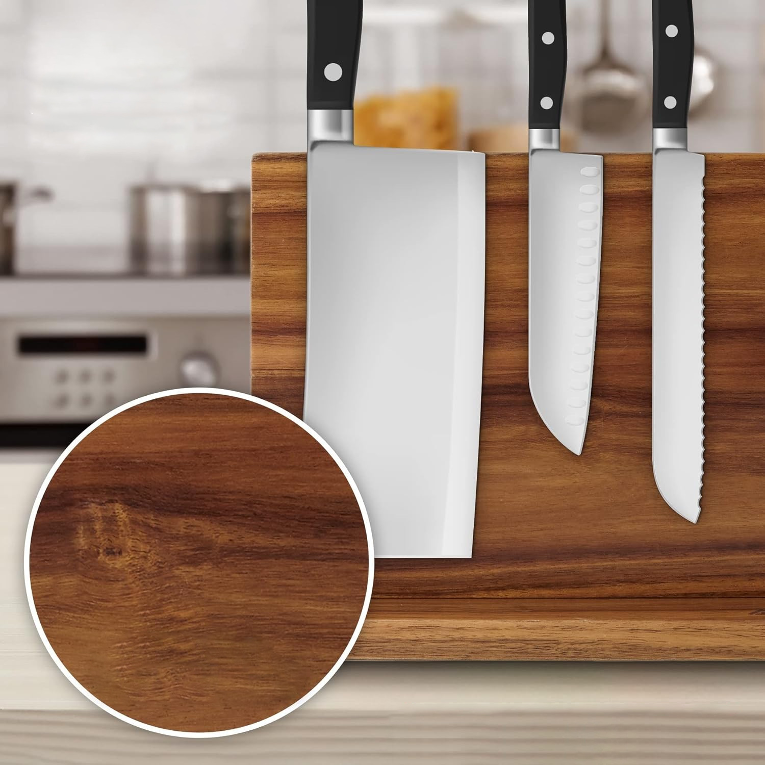 주방 양면 자기 목제 나이프 주방 보관 용 주방 나이프는 다기능 칼 저장 랙 마그네틱 나이프 홀드를 보유하고 있습니다.