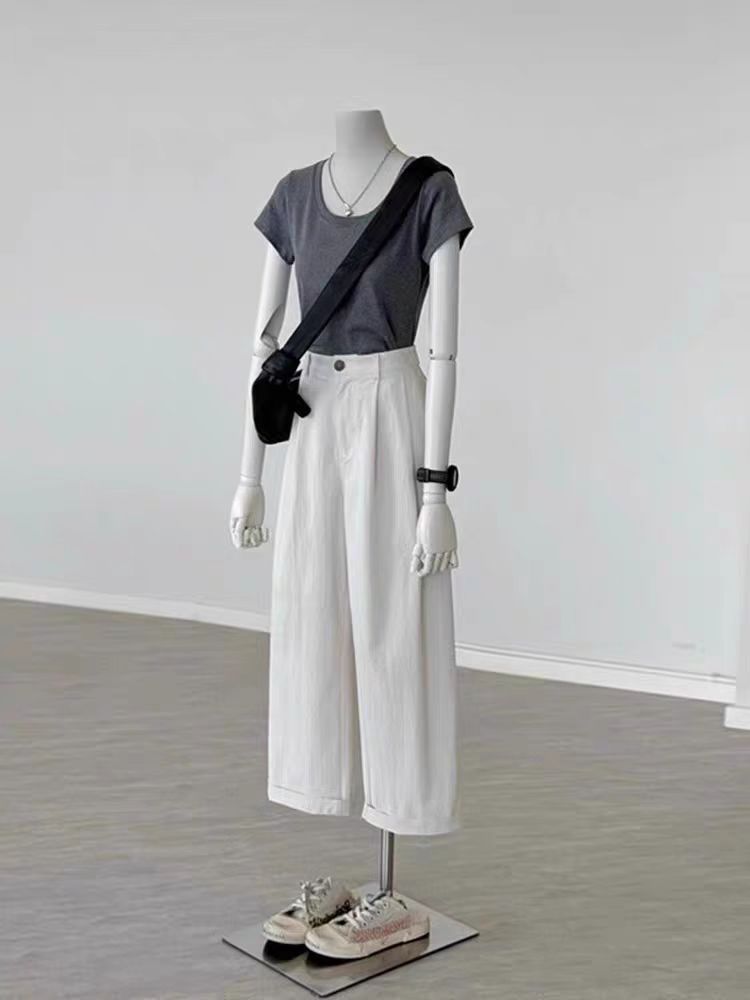 아이스 베리 파우더 U-숄더 칼라 슬림 핏 반팔 티셔츠 여성용 여름 디자인 센스 틈새 빅 코 슬리밍 티셔츠 탑스토어 가기