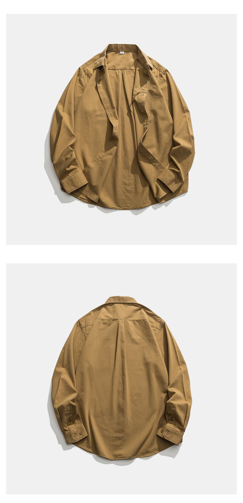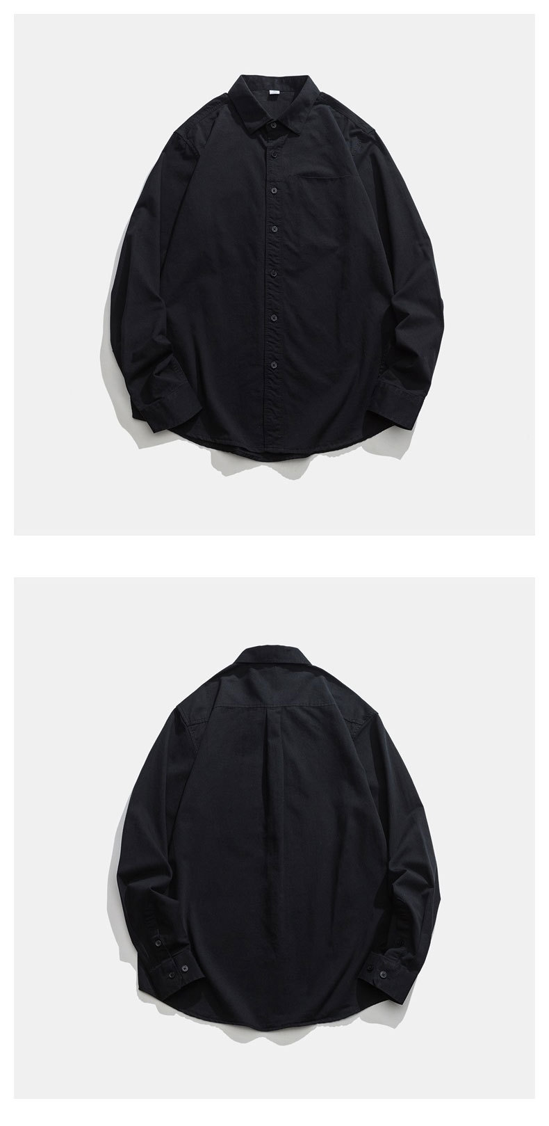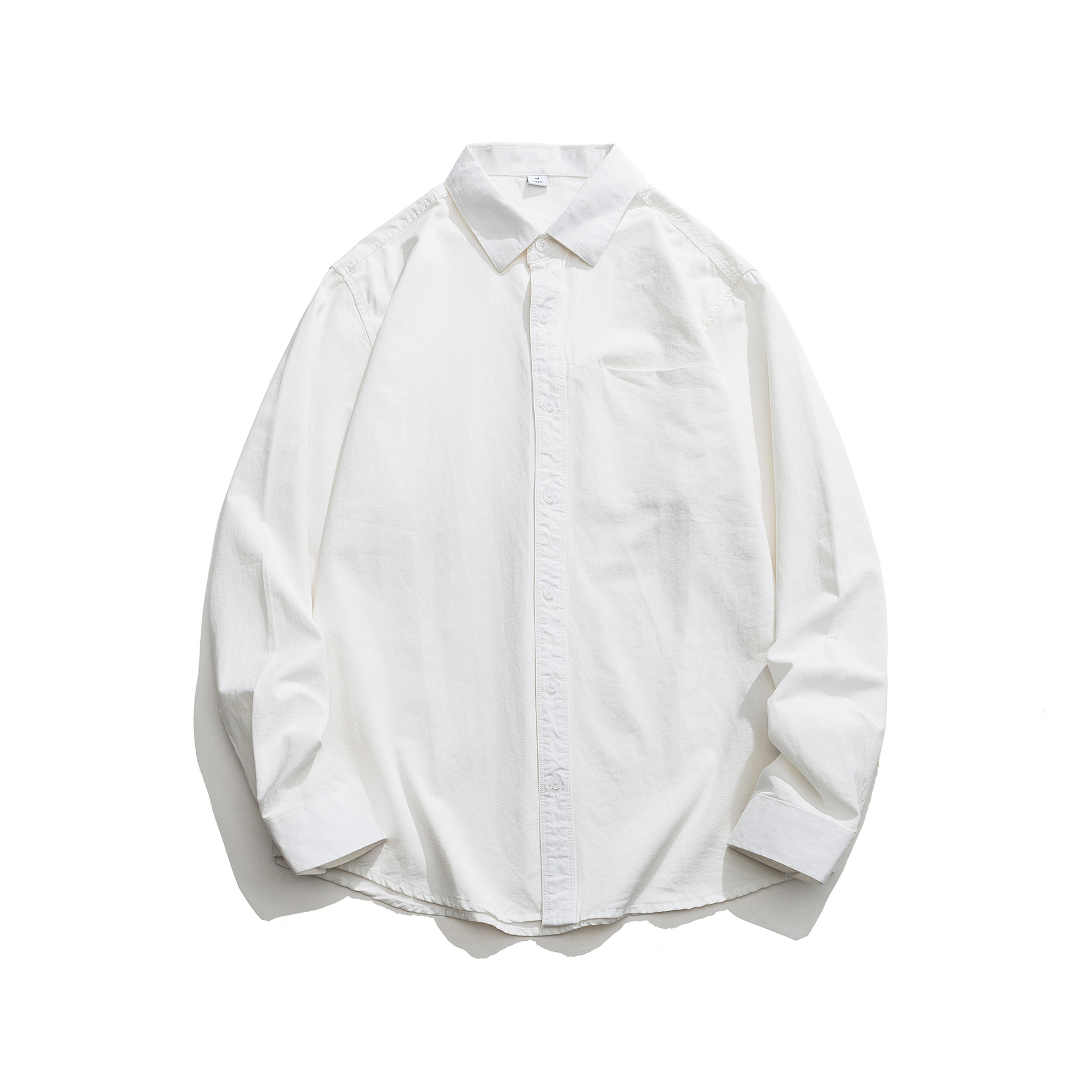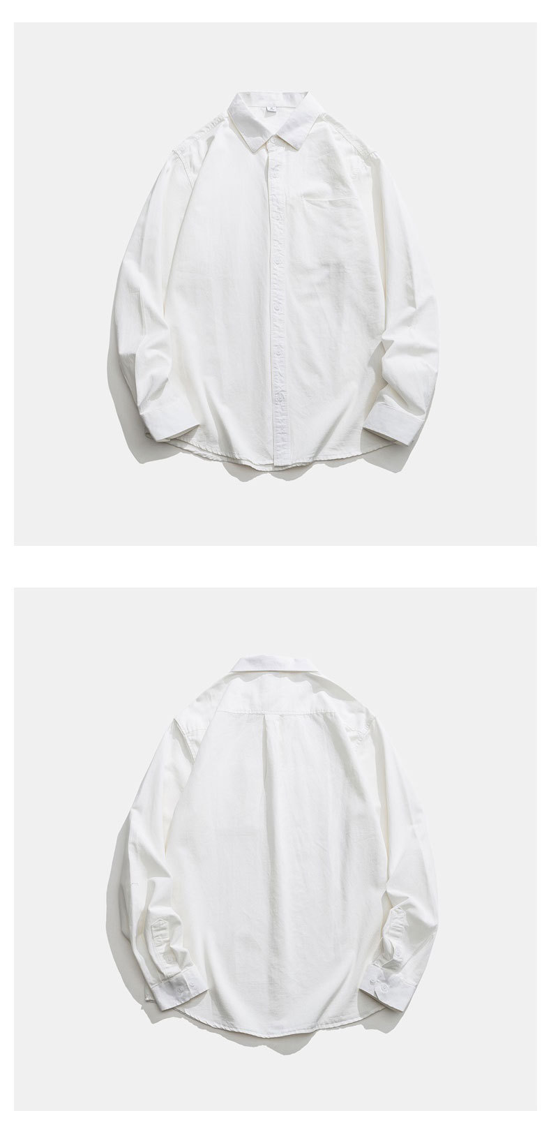 미국 스타일 무거운 긴 소매 셔츠 남자의 2024 가을 캐주얼 단색 흰색 옷깃 셔츠 빈티지 카디건 재킷스토어 가기