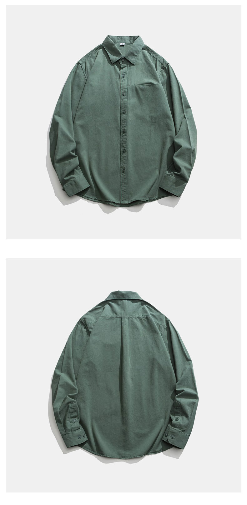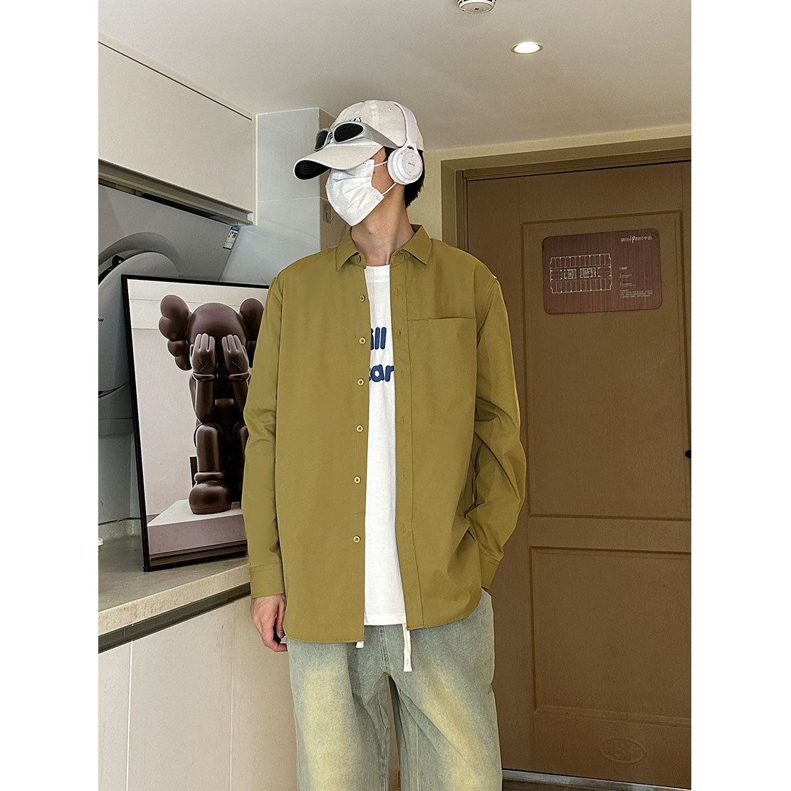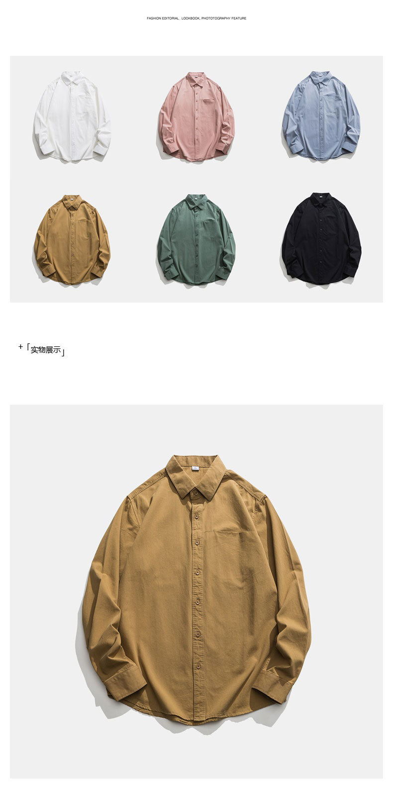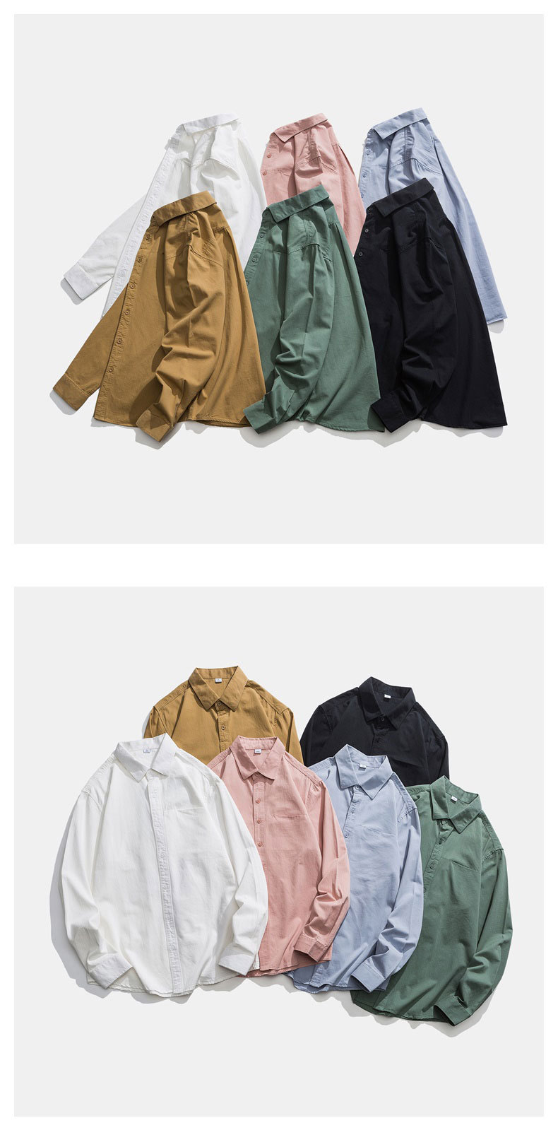 미국 스타일 무거운 긴 소매 셔츠 남자의 2024 가을 캐주얼 단색 흰색 옷깃 셔츠 빈티지 카디건 재킷스토어 가기