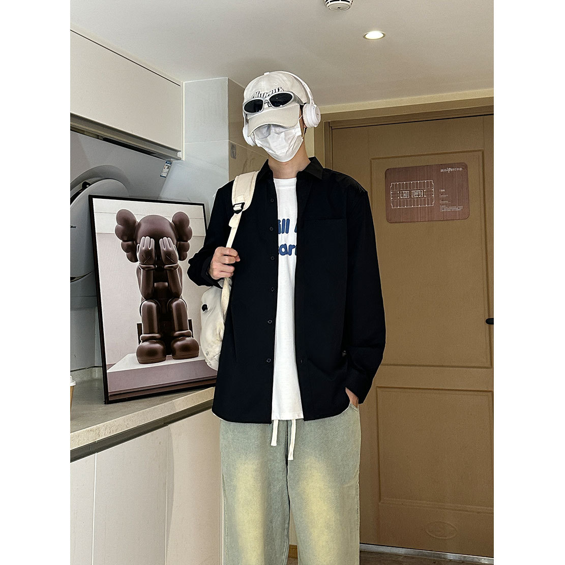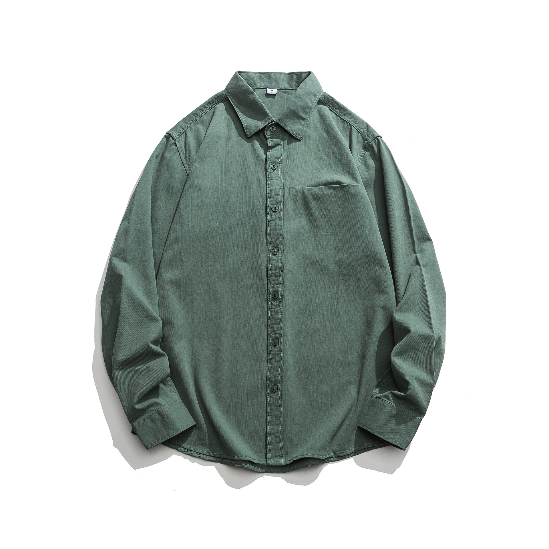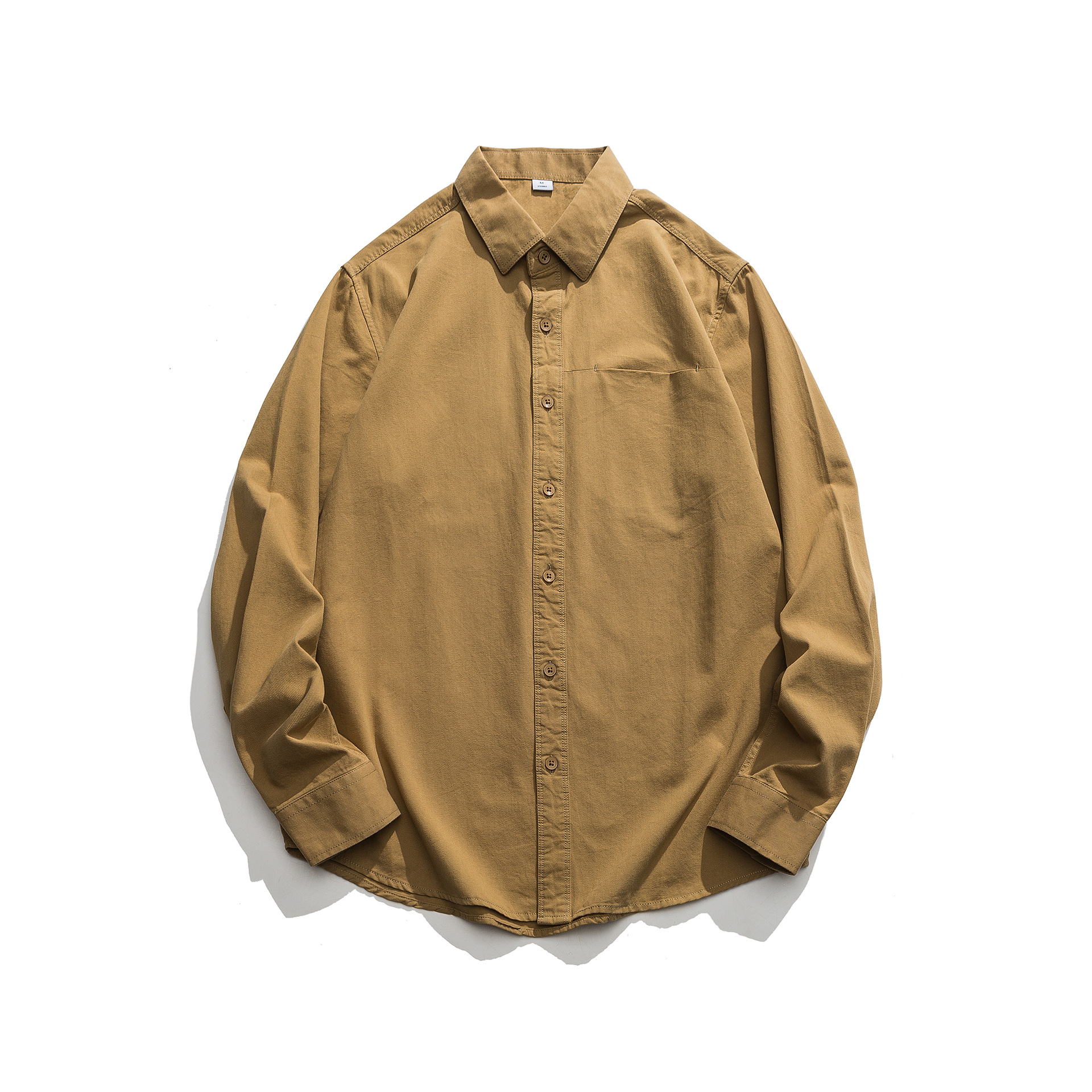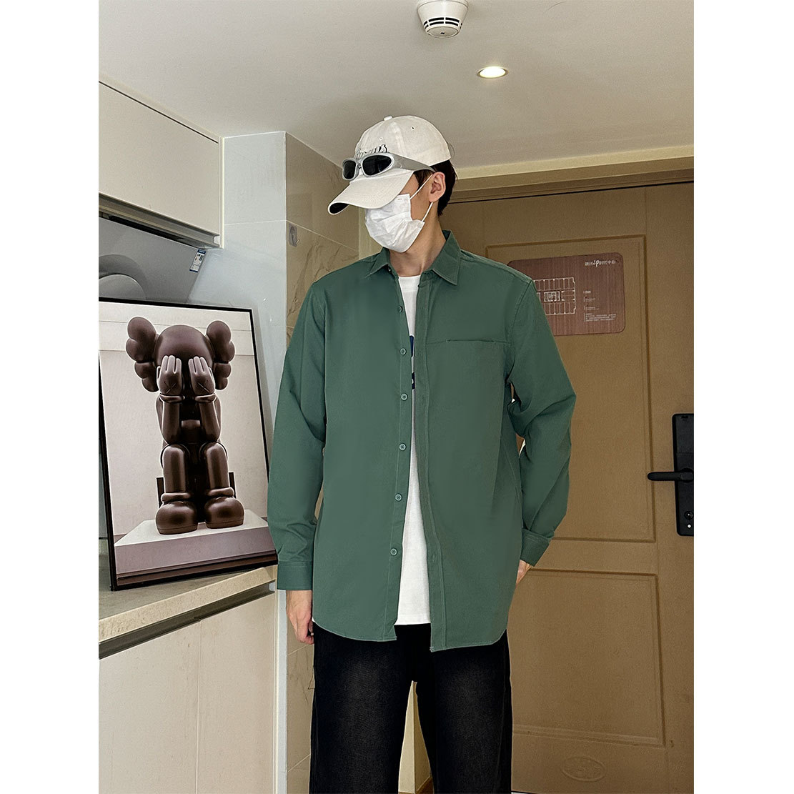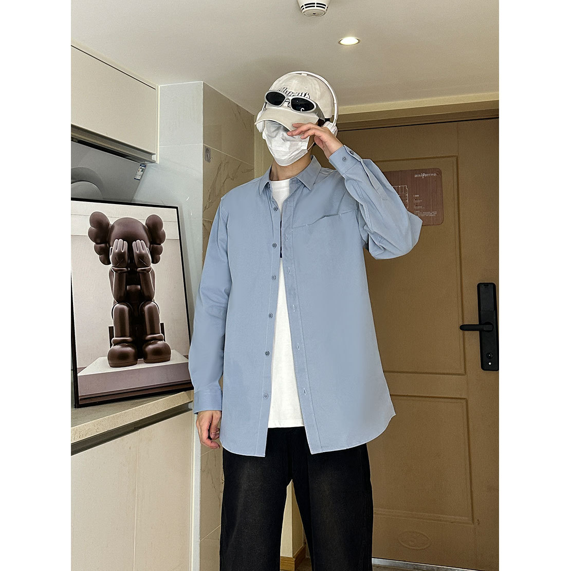 미국 스타일 무거운 긴 소매 셔츠 남자의 2024 가을 캐주얼 단색 흰색 옷깃 셔츠 빈티지 카디건 재킷스토어 가기