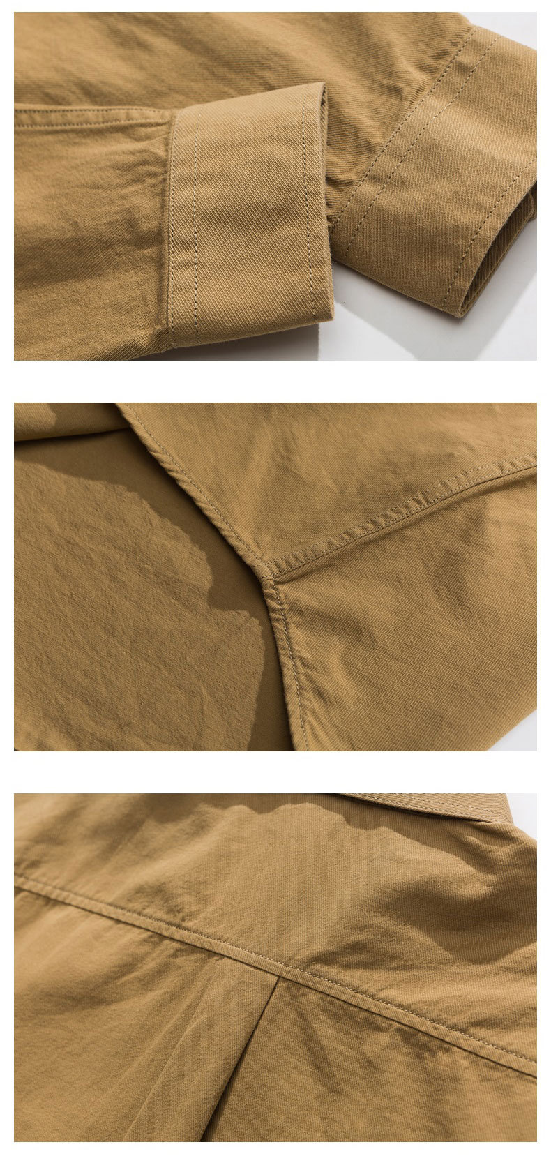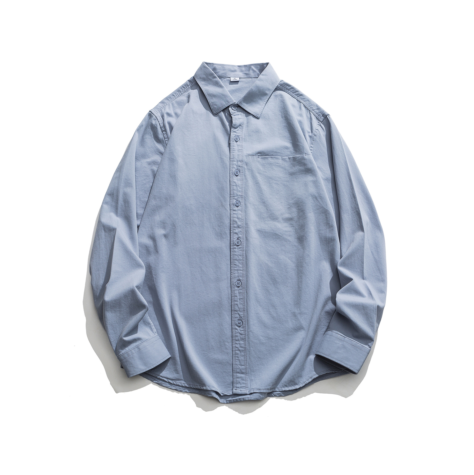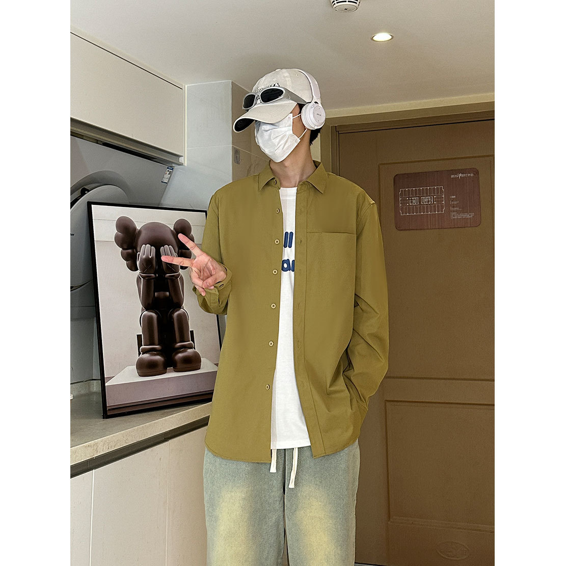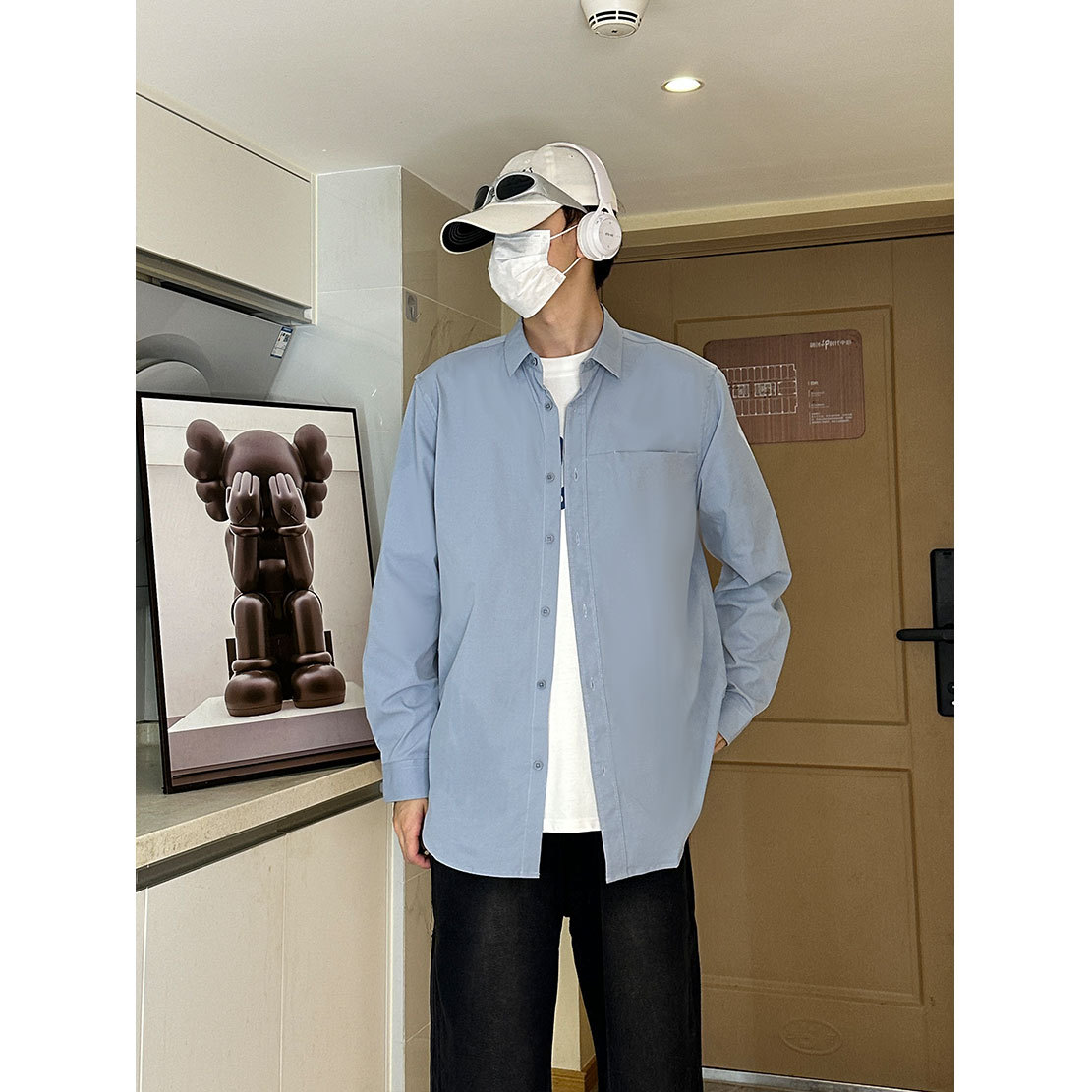 미국 스타일 무거운 긴 소매 셔츠 남자의 2024 가을 캐주얼 단색 흰색 옷깃 셔츠 빈티지 카디건 재킷스토어 가기