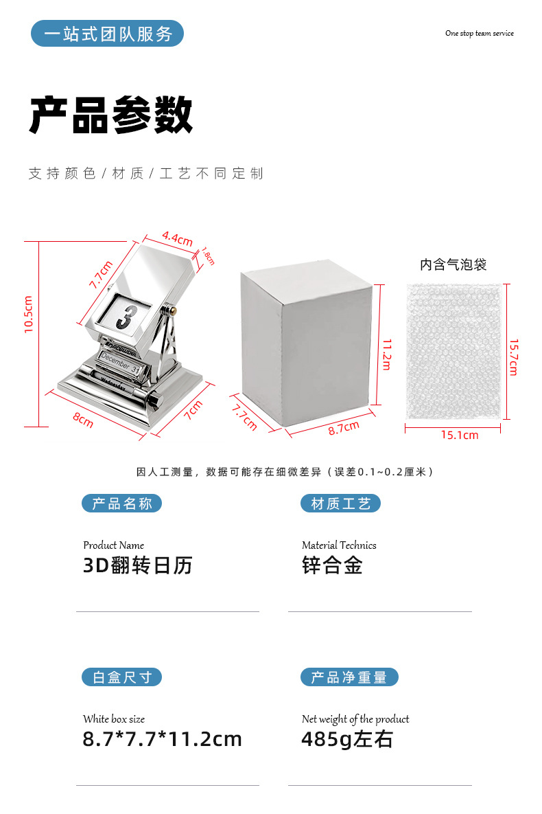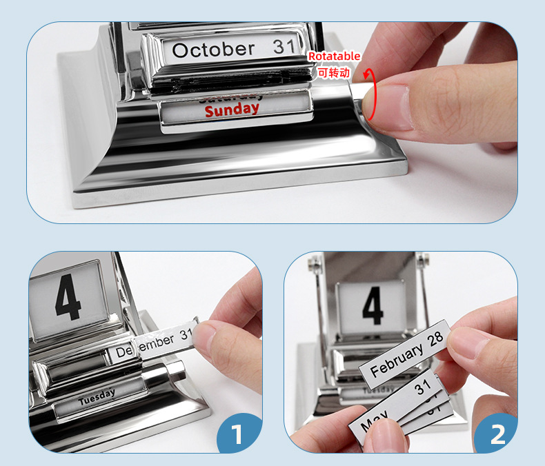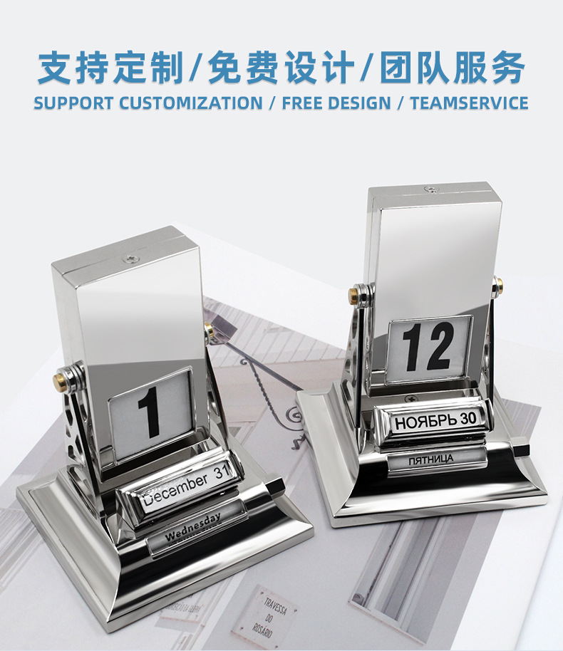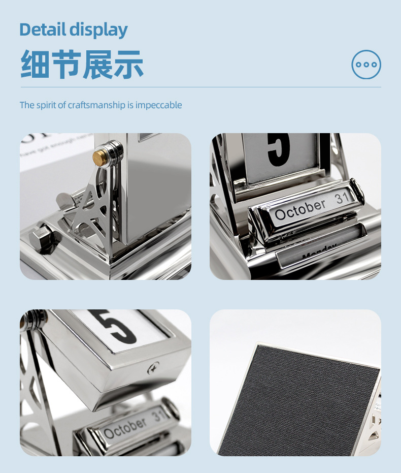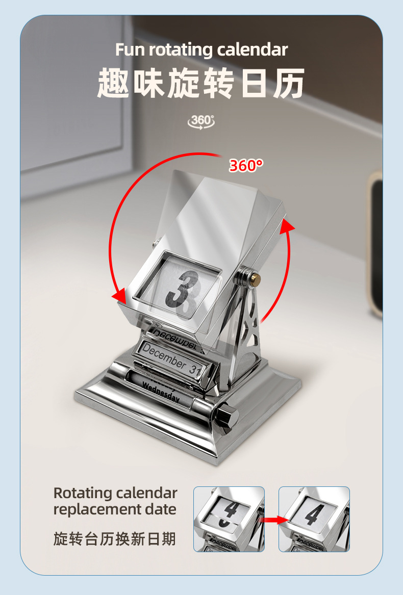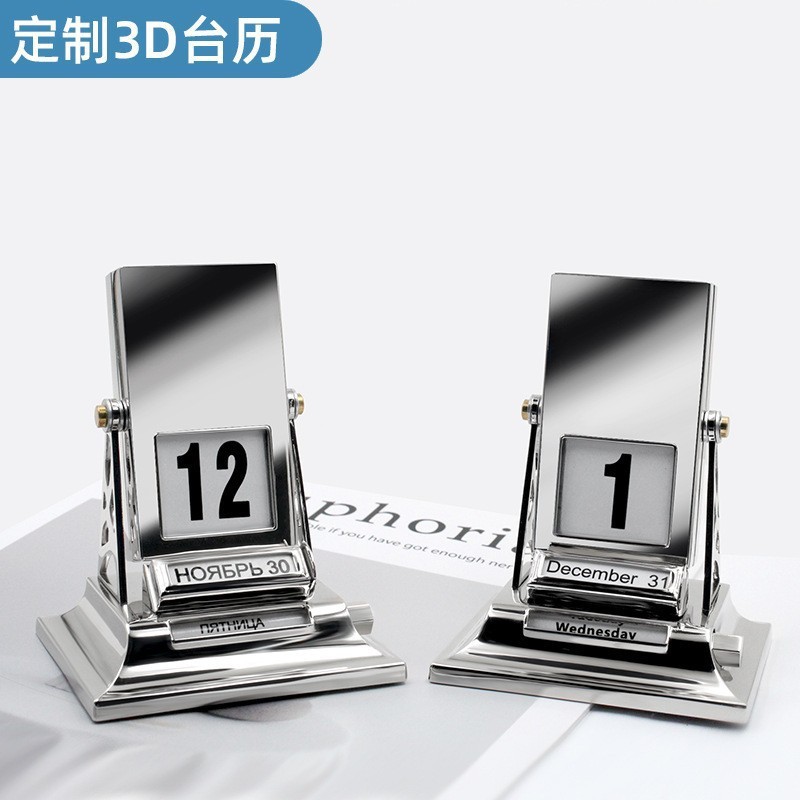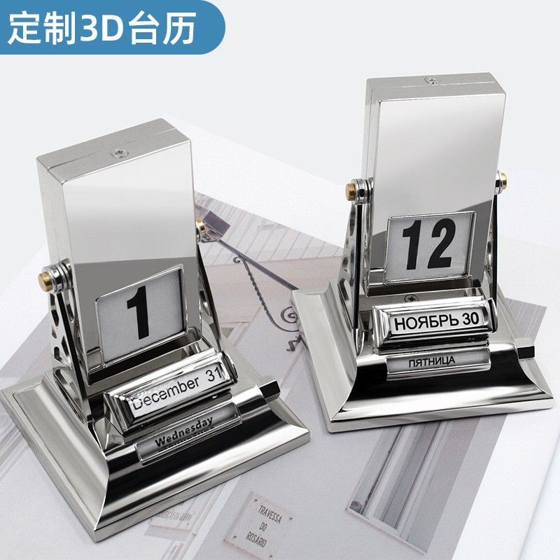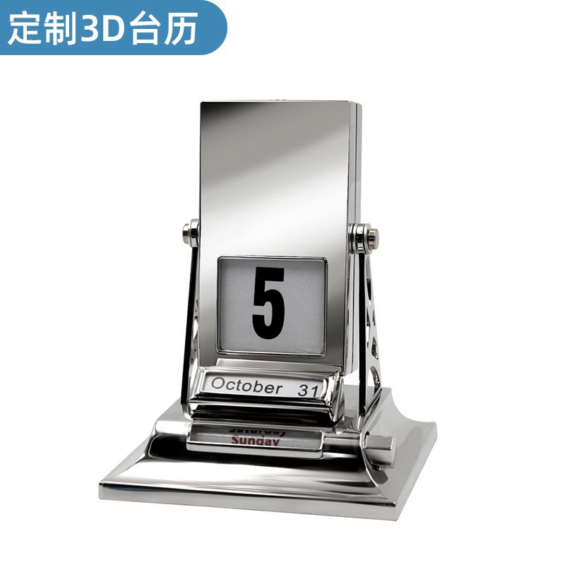 공장 직판 도매 3D 금속 탁상 달력 창의적인 비즈니스 달력 선물 가정용 사무실 책상 뒤집기 달력 장식품