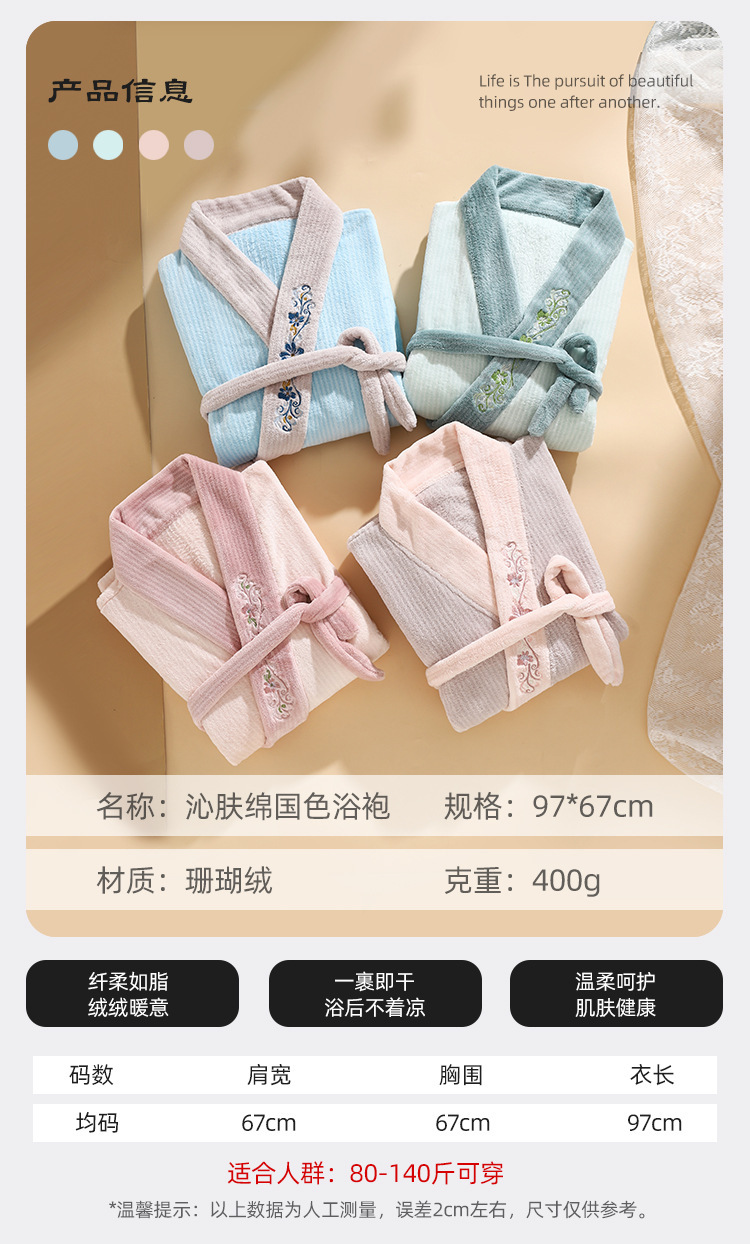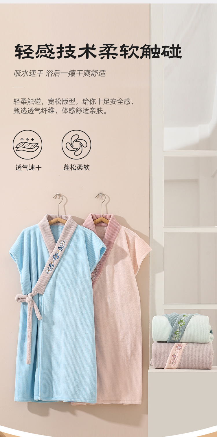 国风新品国色浴袍长款浴巾洗澡浴袍可裹吸水睡袍成人速干女夏薄款