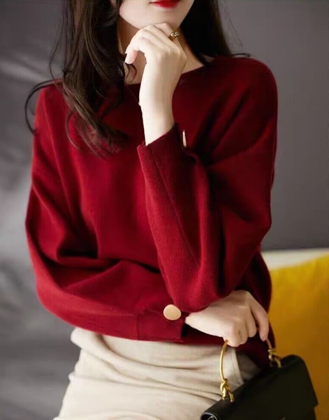 대외 무역 패션 레드 스웨터 여성의 2024 가을 새로운 디자인 센스 틈새 보토밍 스웨터 탑스토어 가기