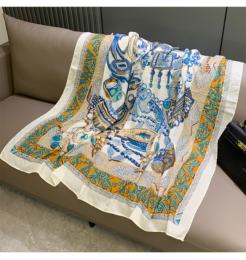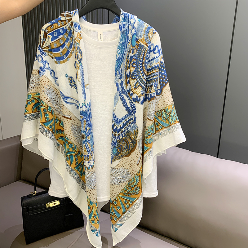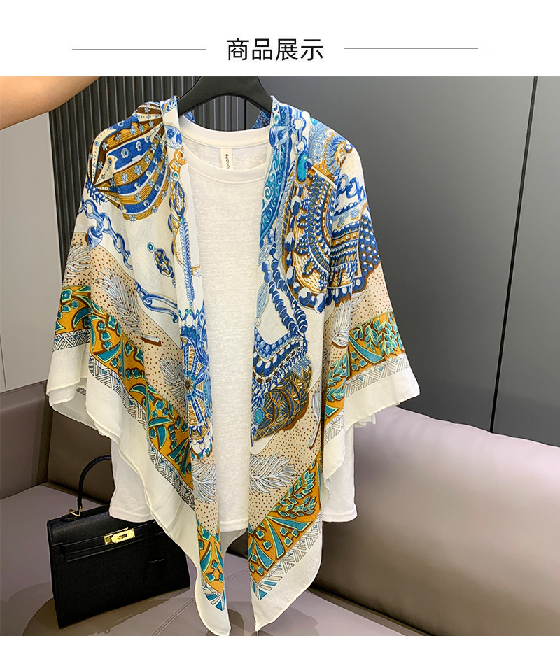 가을과 겨울 패션 따뜻한면과 린넨 느낌 식물 인쇄 여행 자외선 차단제 에어컨 목도리 스카프 130 여성을위한 대형 사각형 스카프