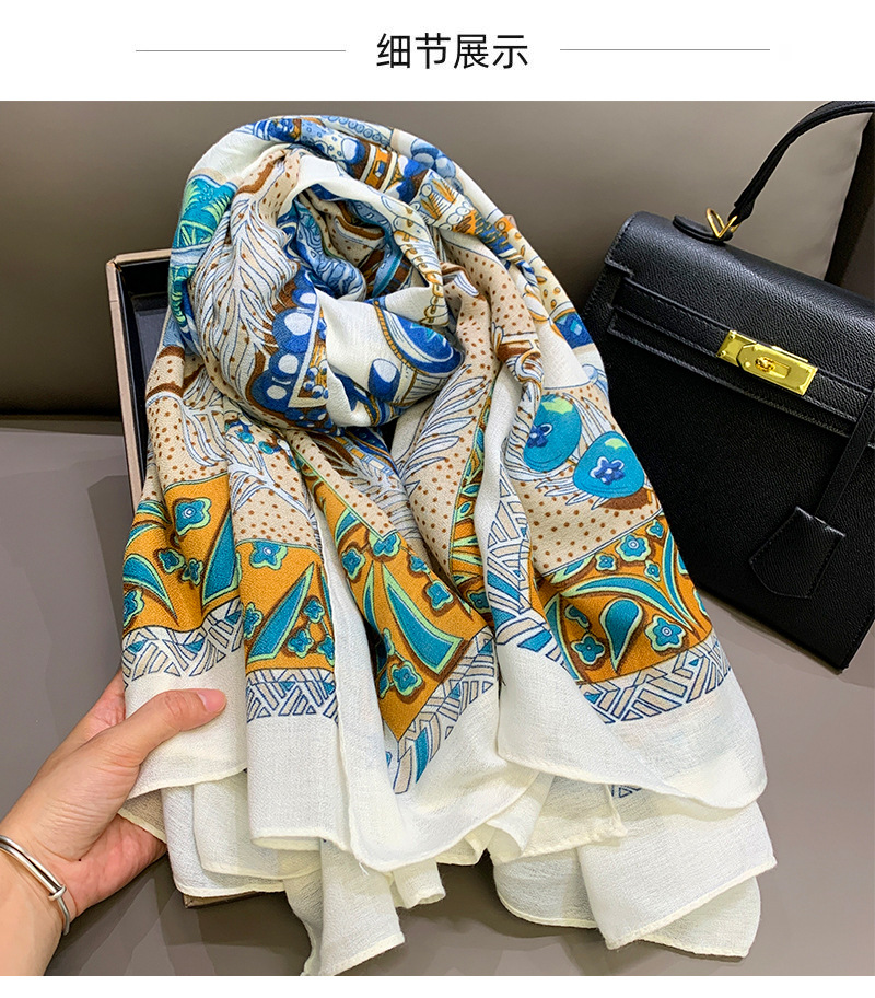가을과 겨울 패션 따뜻한면과 린넨 느낌 식물 인쇄 여행 자외선 차단제 에어컨 목도리 스카프 130 여성을위한 대형 사각형 스카프스토어 가기