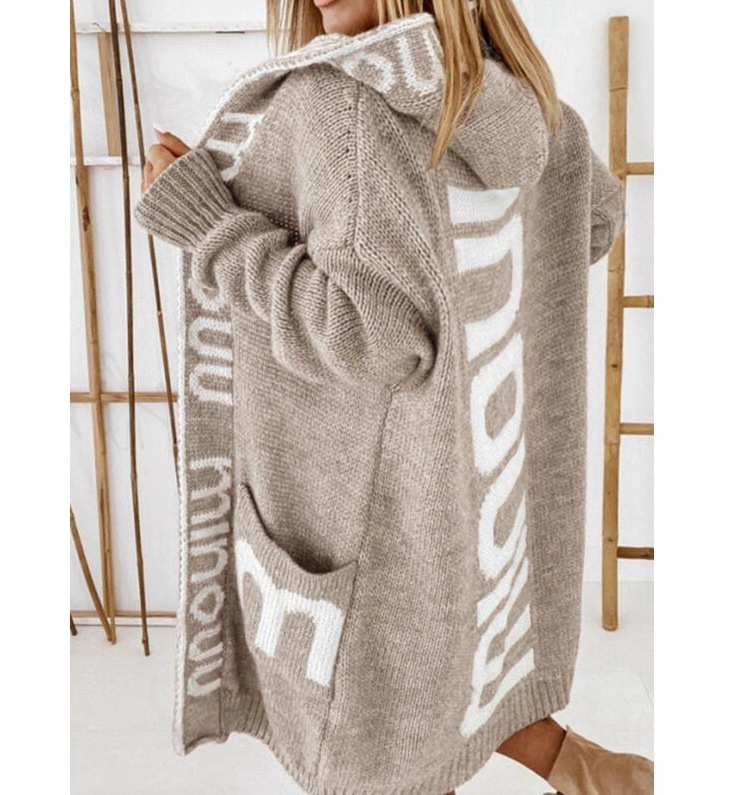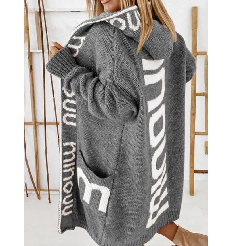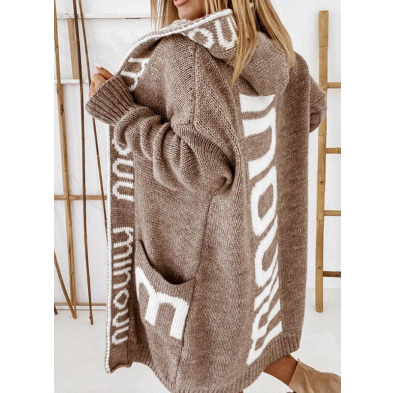 아마존 여성 스웨터 가을과 겨울 새로운 후드 알파벳 니트웨어 유럽과 미국의 긴 스웨터 코트 F0002