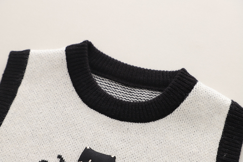 2024 소년 아기 가을 새 세트 봄과 가을 어린이 옷 새로운 만화 소년 스웨터 조끼 3 피스 세트