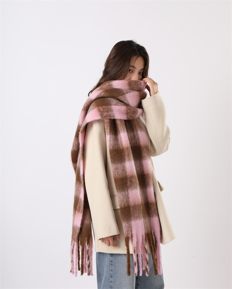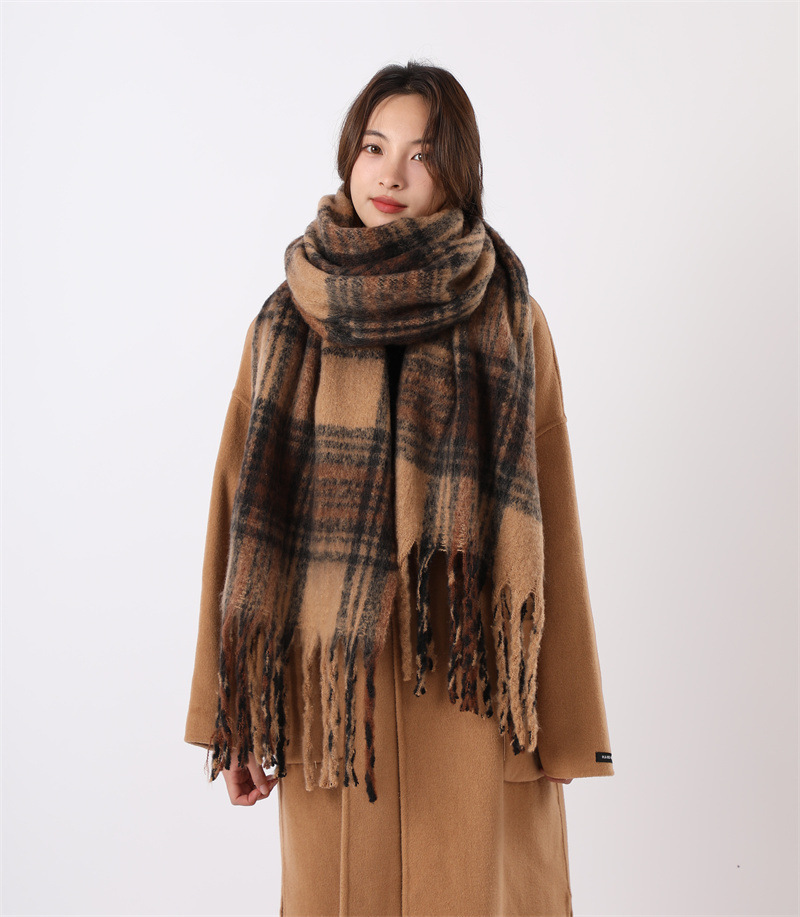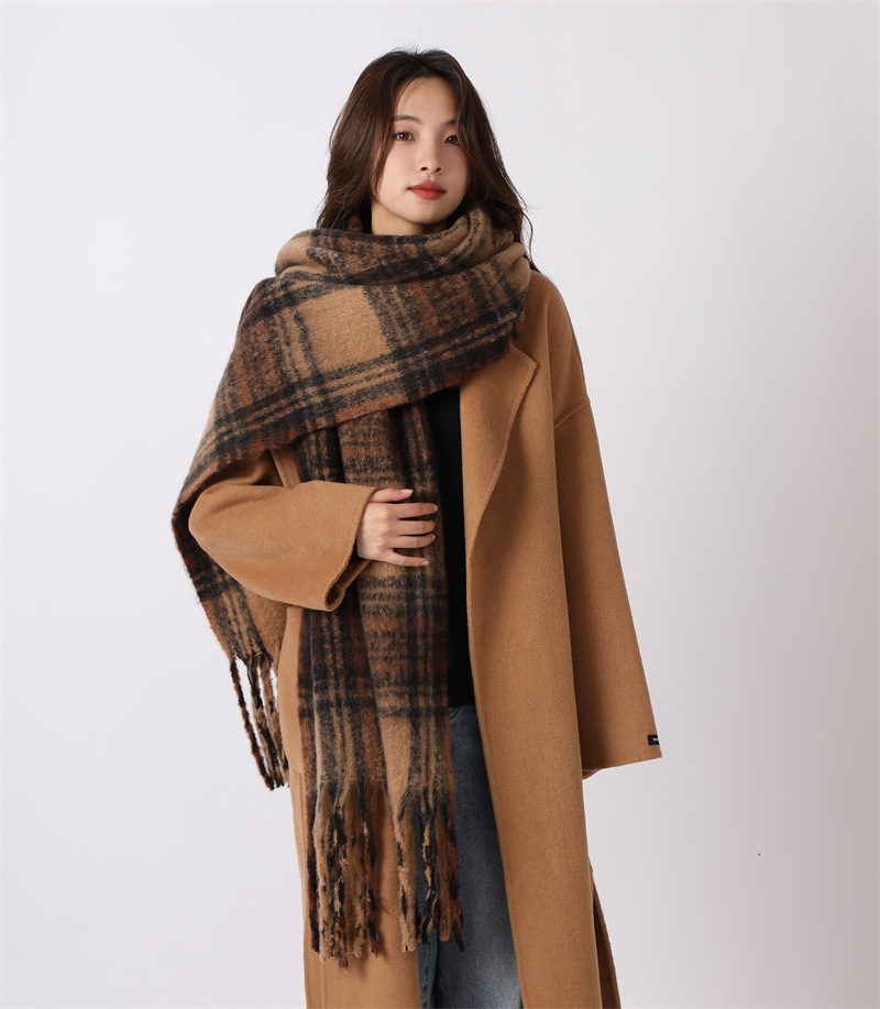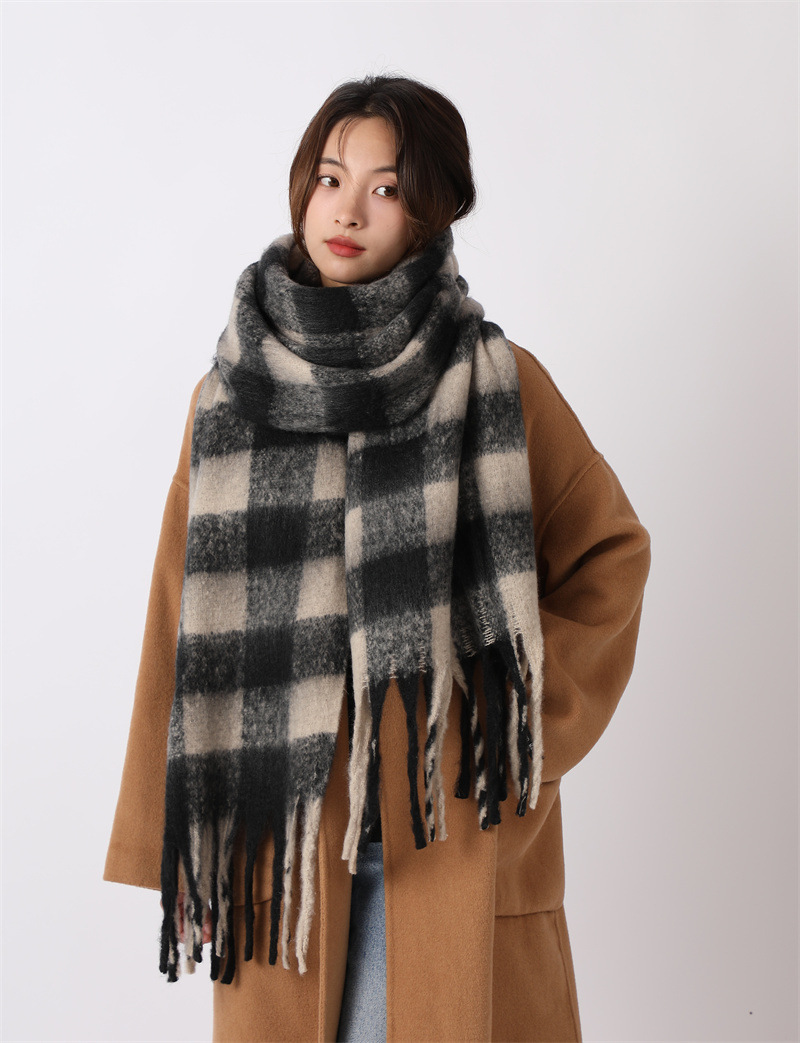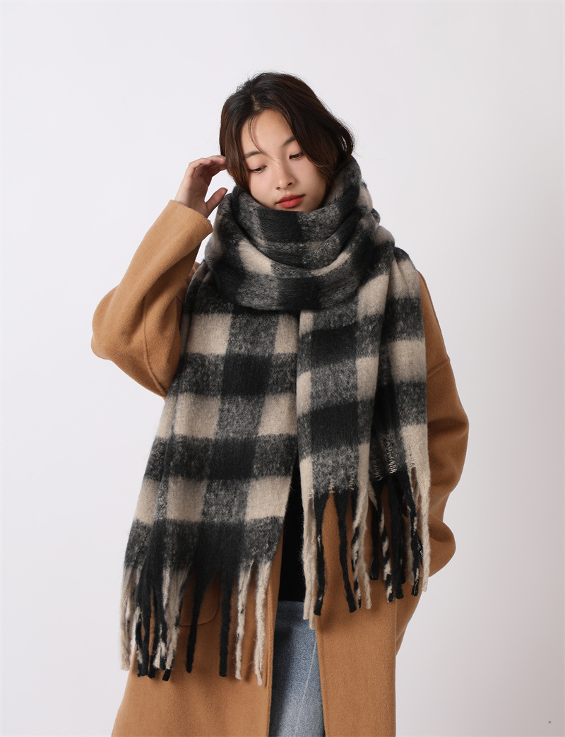 여성용 부드러운 프린지 스카프 숄 롱 랩 남성용 모조 캐시미어 체크무늬 커플 겨울 스카프 목도리 케이프