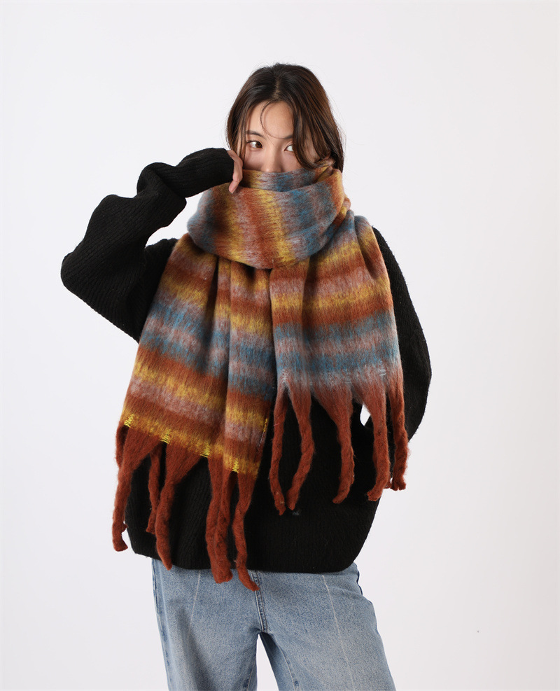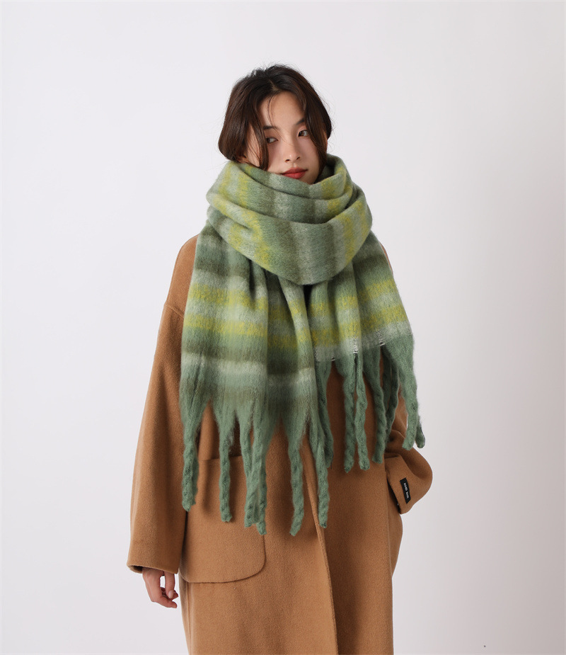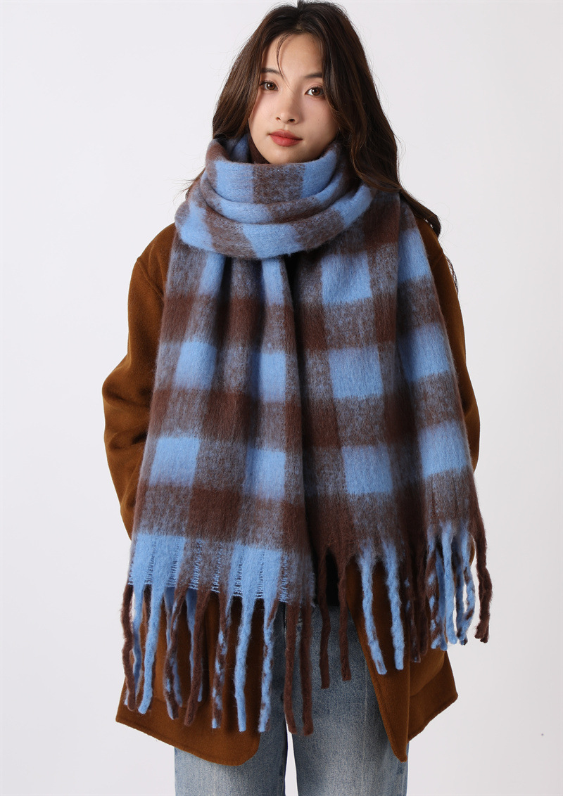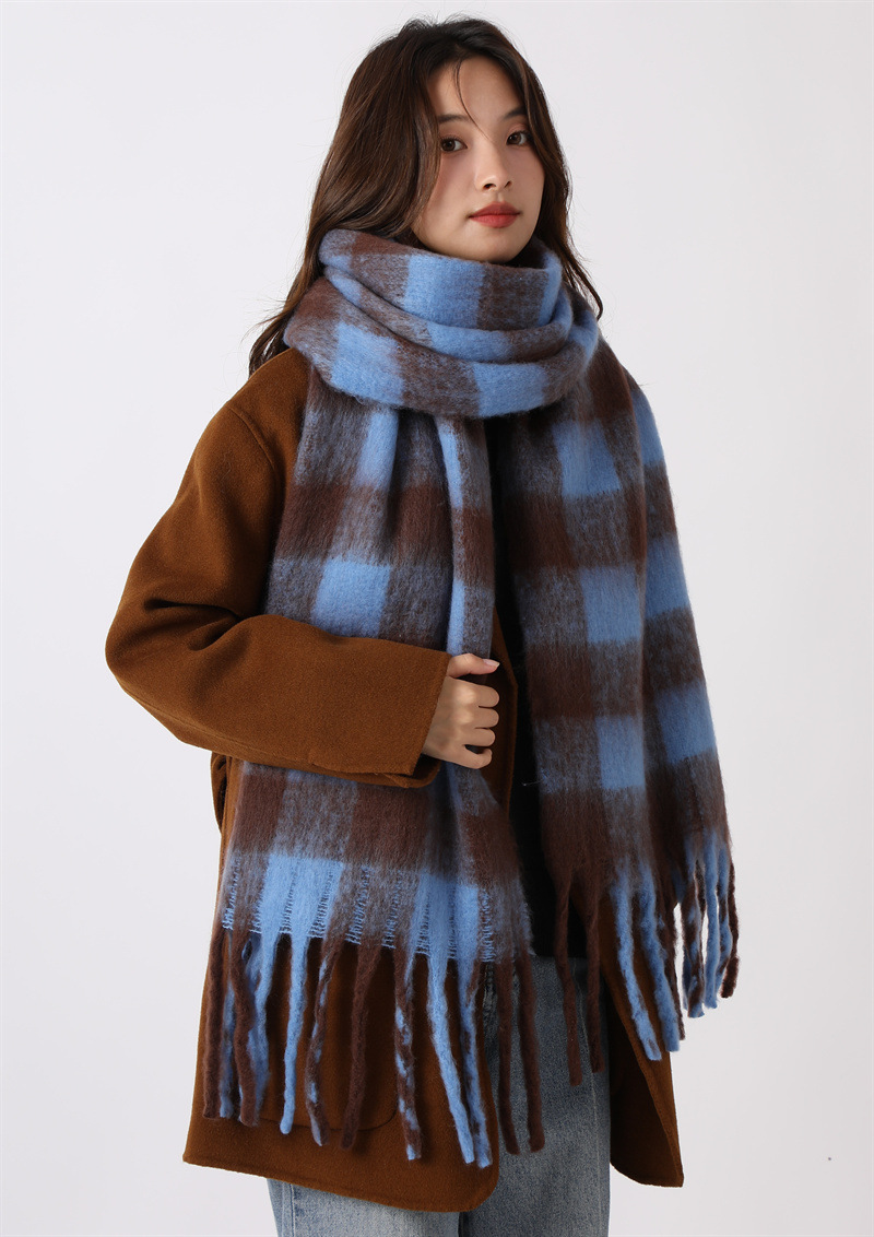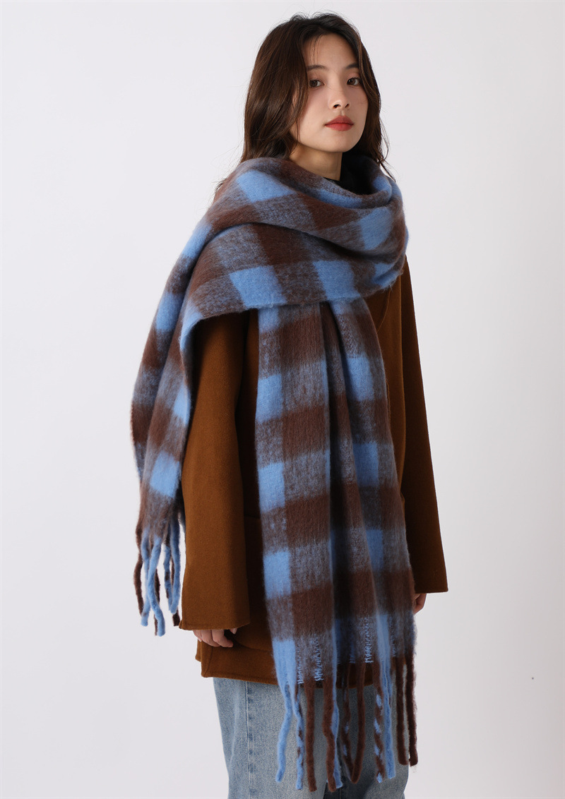 여성용 부드러운 프린지 스카프 숄 롱 랩 남성용 모조 캐시미어 체크무늬 커플 겨울 스카프 목도리 케이프