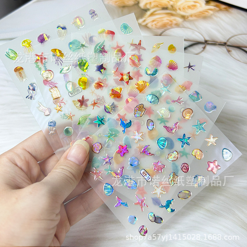 국경 젤리 네일 아트 스티커 3d 네일 스티커 어린이 네일 스티커 빛나는 5D 양각 스티커 네일 아트 공장 도매