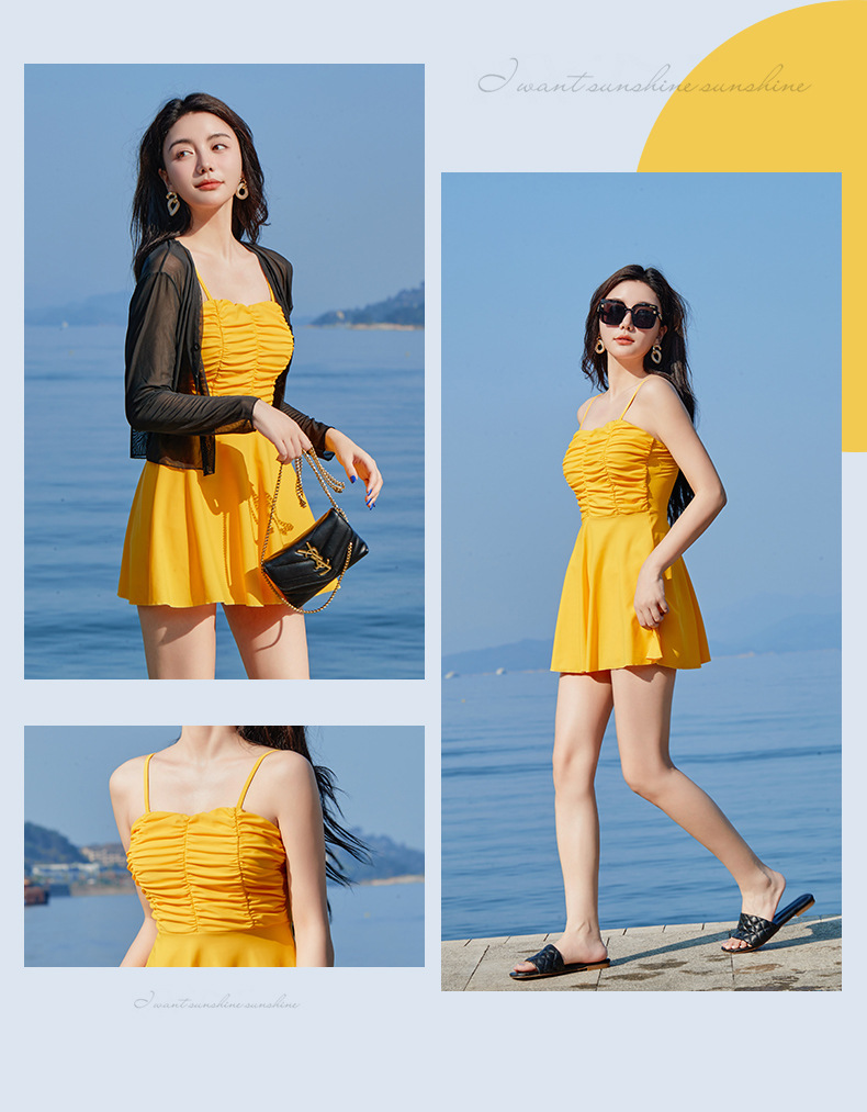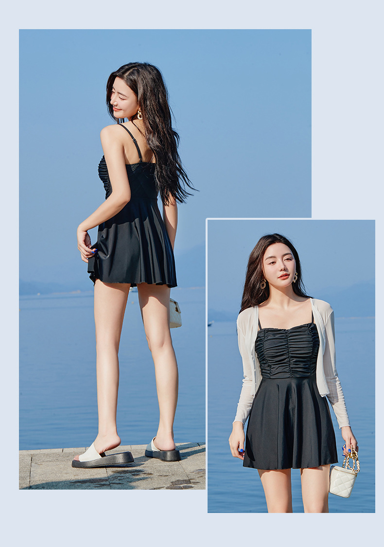 패션 호텔 온천 수영복 플러스 사이즈 어깨 수영복 여성 배꼽 덮음 슬리밍 큰 가슴 섹시한 민소매 슬링스토어 가기
