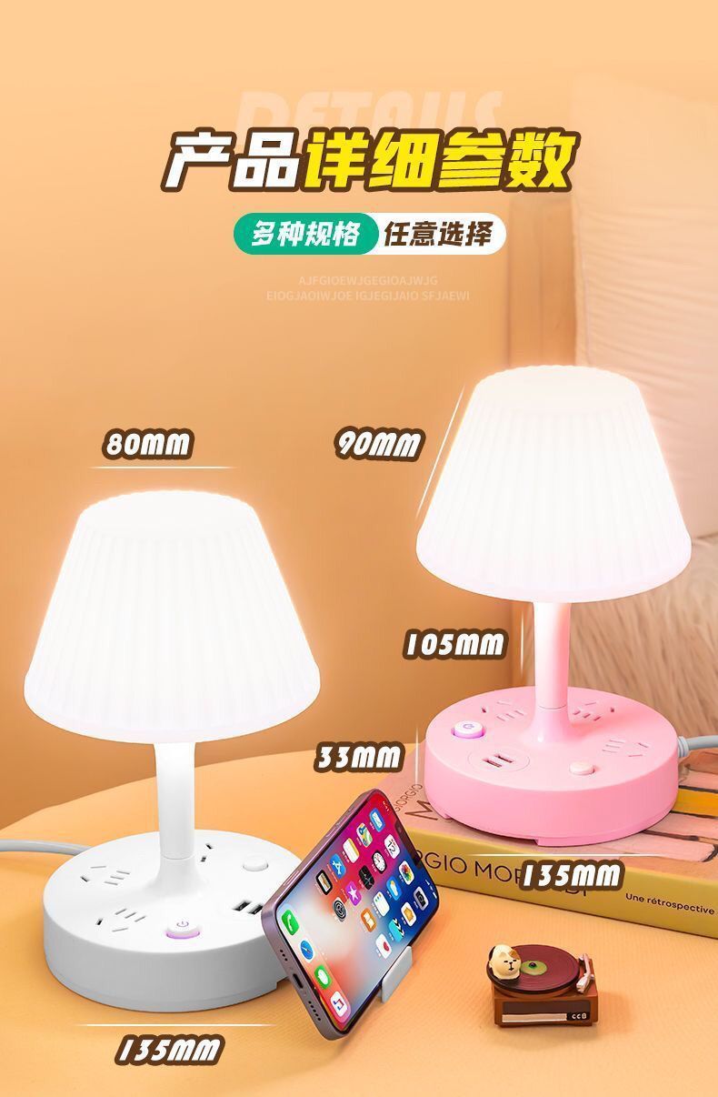 USB 학생 기숙사 플러그 인 및 플러그인 배선 보드 가정용 침실 침대 옆 램프로 천공 된 다기능 LED 책상 램프 소켓