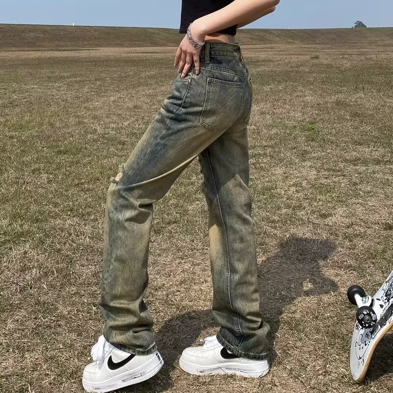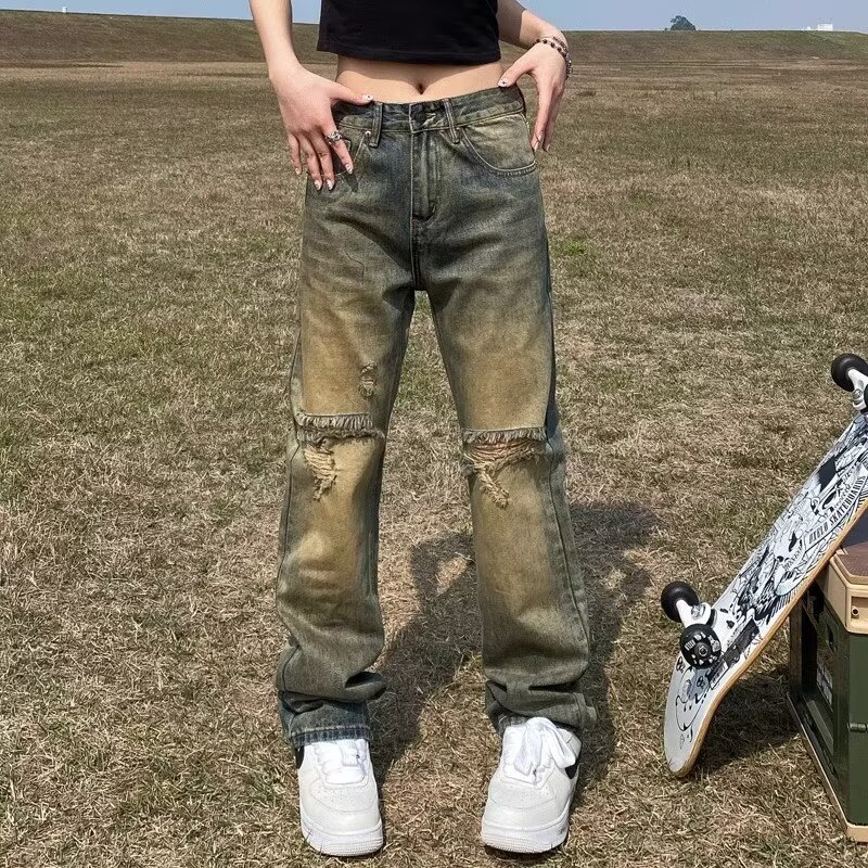 홍콩 스타일 트렌디 한 남성 여름 새로운 2024 맞춤형 알파벳 청바지 힙합 Ins 트렌디 하이 스트리트 트렌디 한 바지스토어 가기