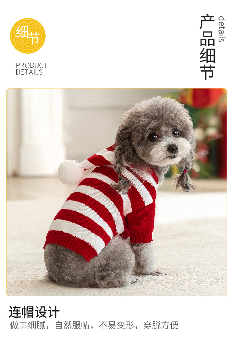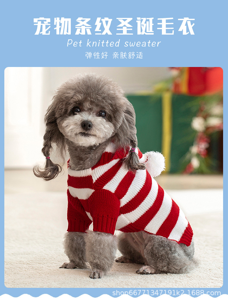 뜨거운 판매 봄 가을 겨울 따뜻한 애완 동물 스웨터 크리스마스 중소 개 줄무늬 후드 니트 애완 동물 의류 재고스토어 가기