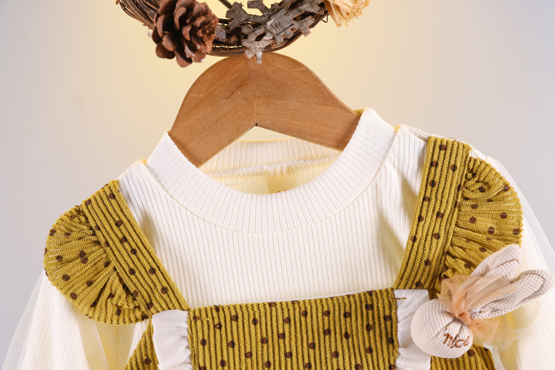 봄 소녀 치마 세트 2024 새로운 아기 어린이 봄 원피스 소녀 아기 서양 스타일 웨이브 도트 원피스 투피스 세트스토어 가기