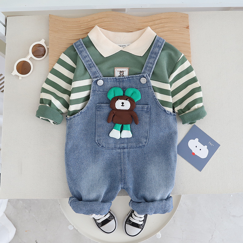 어린이 긴팔 멜빵 세트 2024 새 소년 아기 봄 가을 폴로 셔츠 투피스 아동복스토어 가기