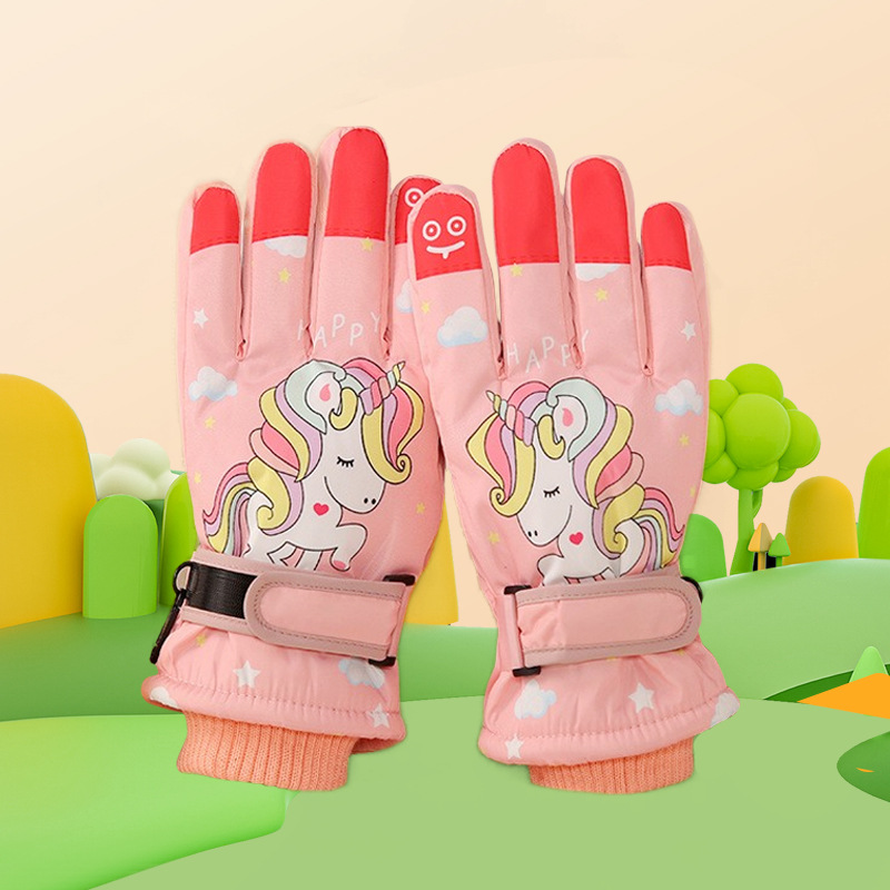 어린이 스키 따뜻한 장갑 어린이 겨울 귀여운 승마 두꺼운 방풍 미끄럼 방지 장갑