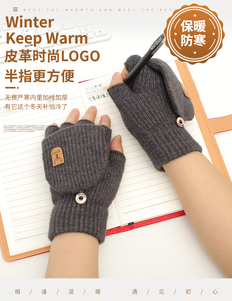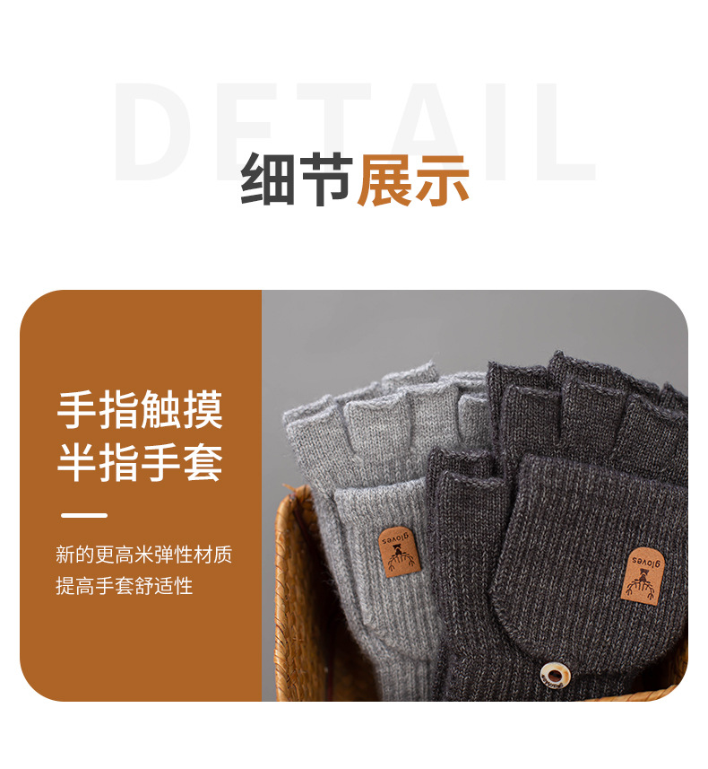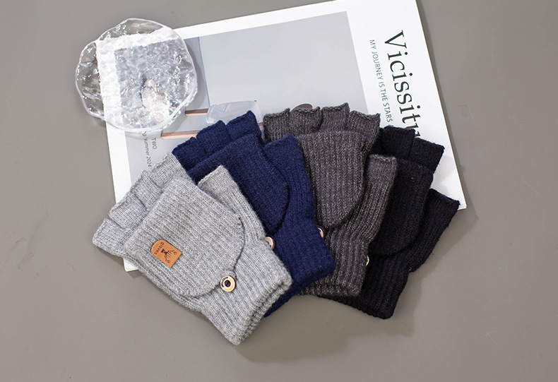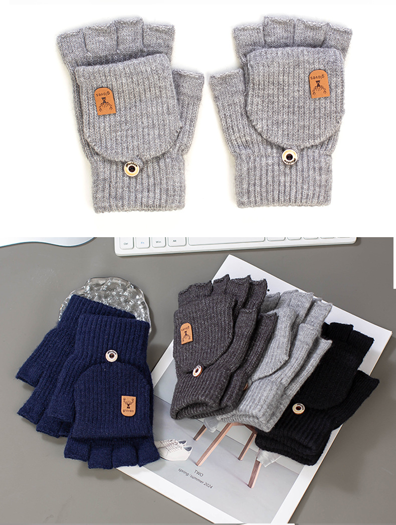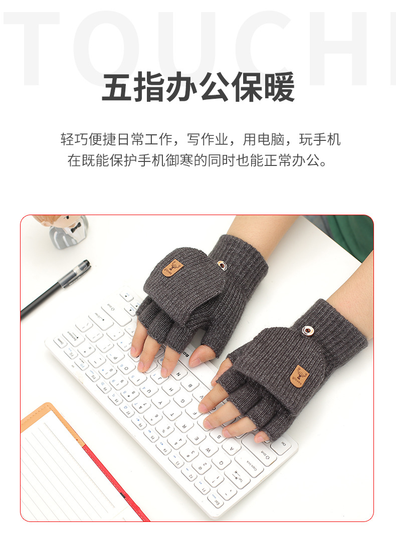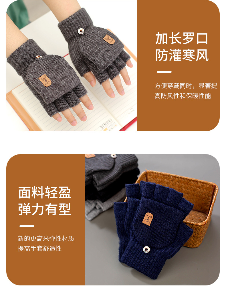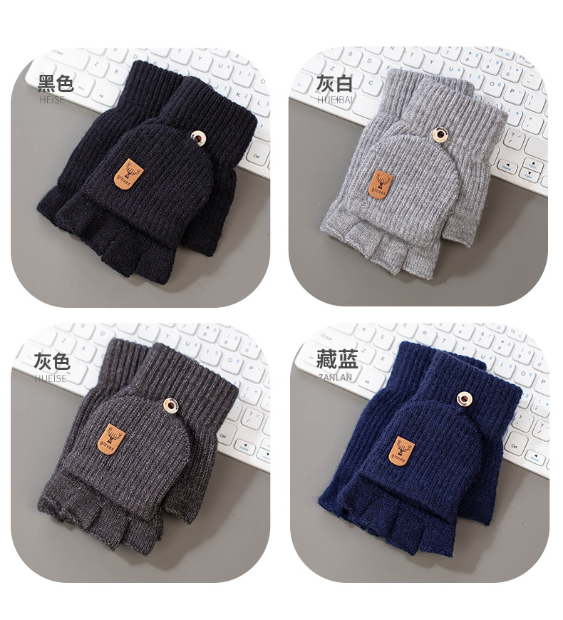 새로운 알파카 양모 니트 장갑 전시 손가락 학생 쓰기 터치 스크린 반 손가락 따뜻한 가을과 겨울 플립 커버 장갑