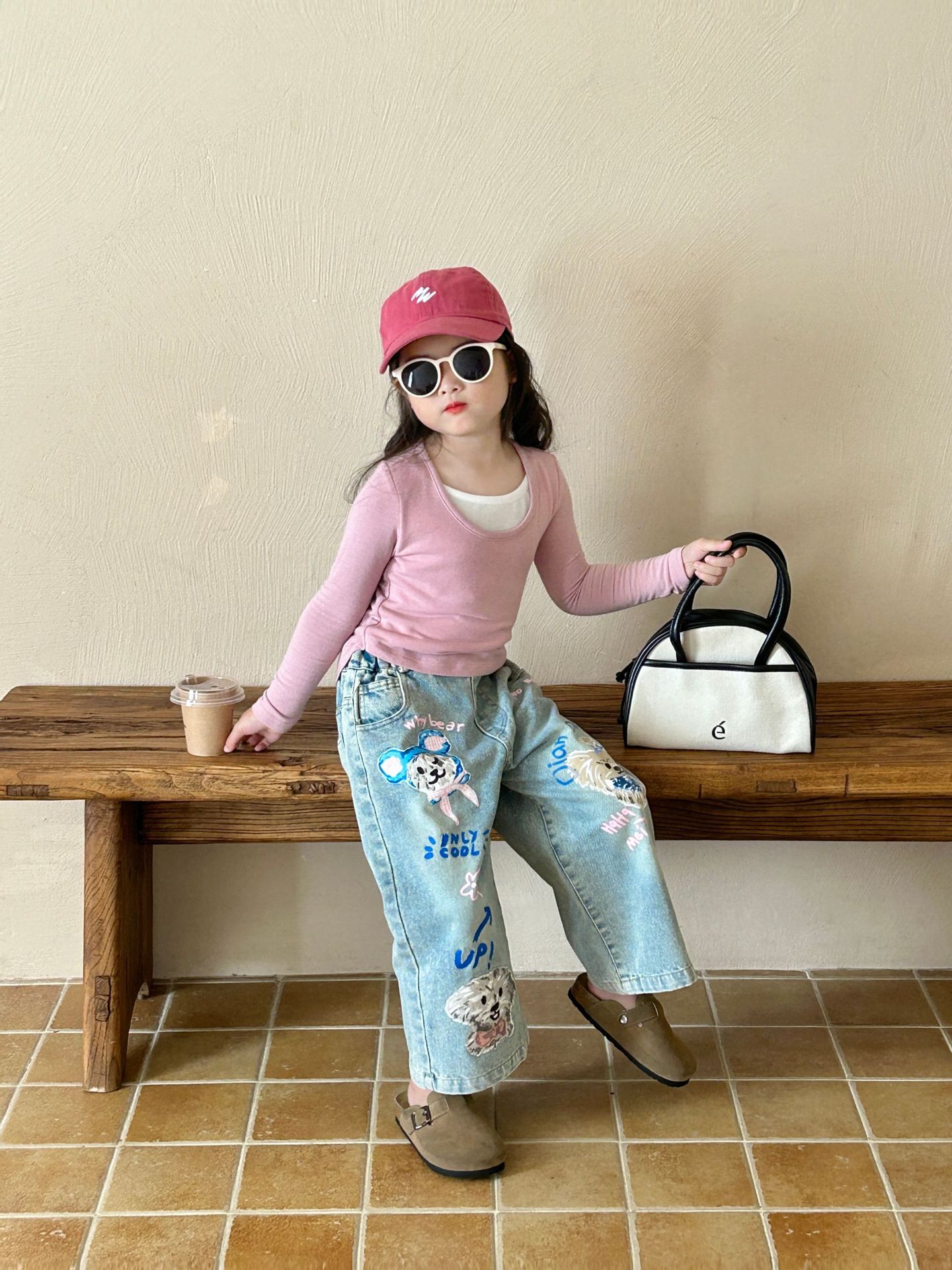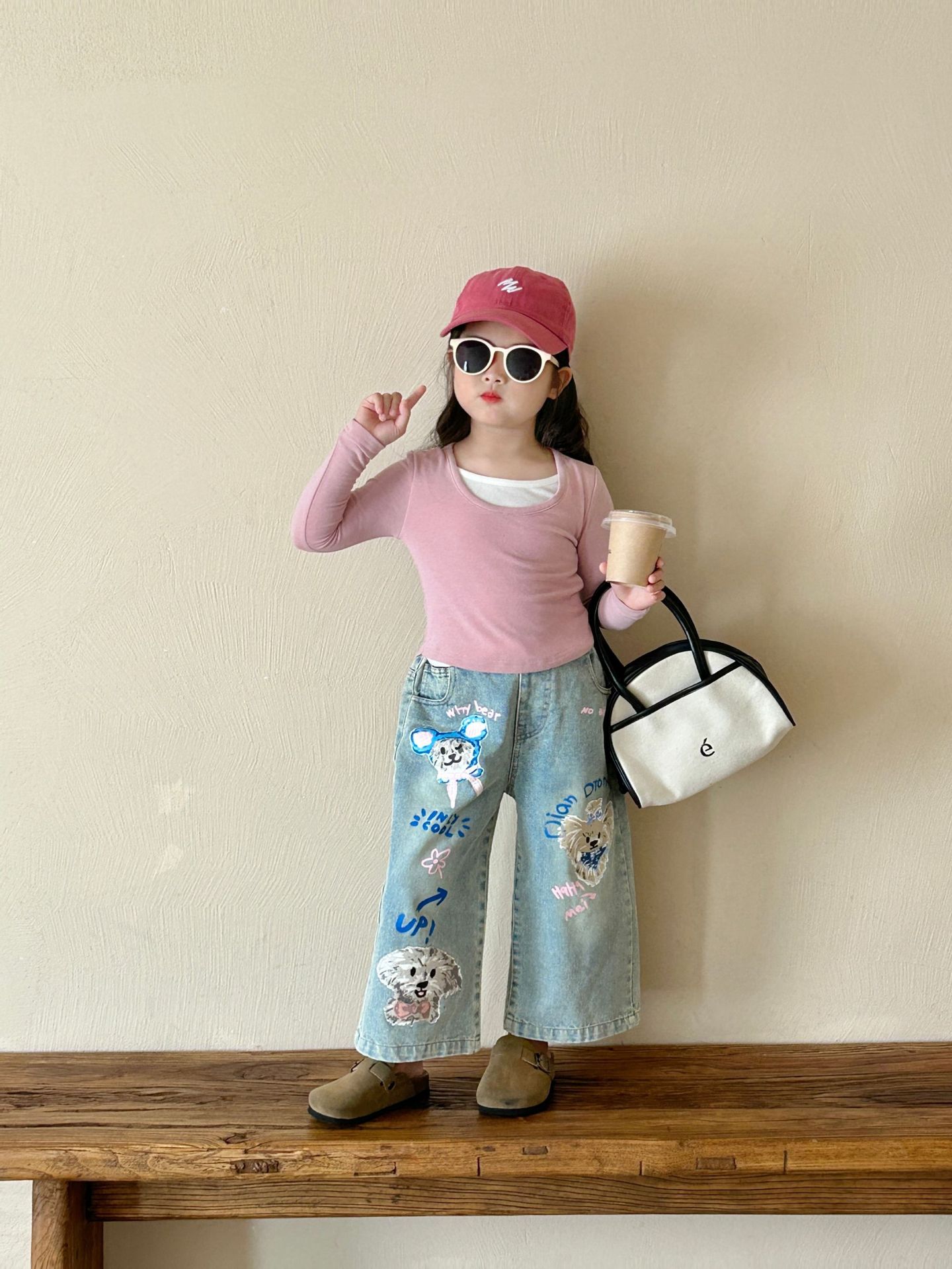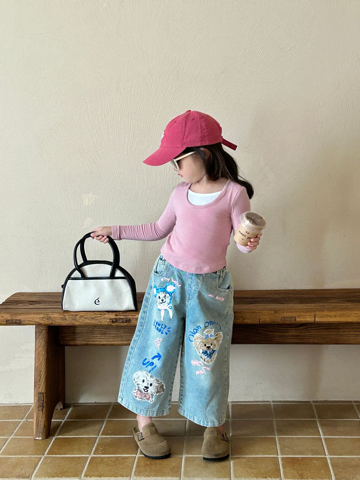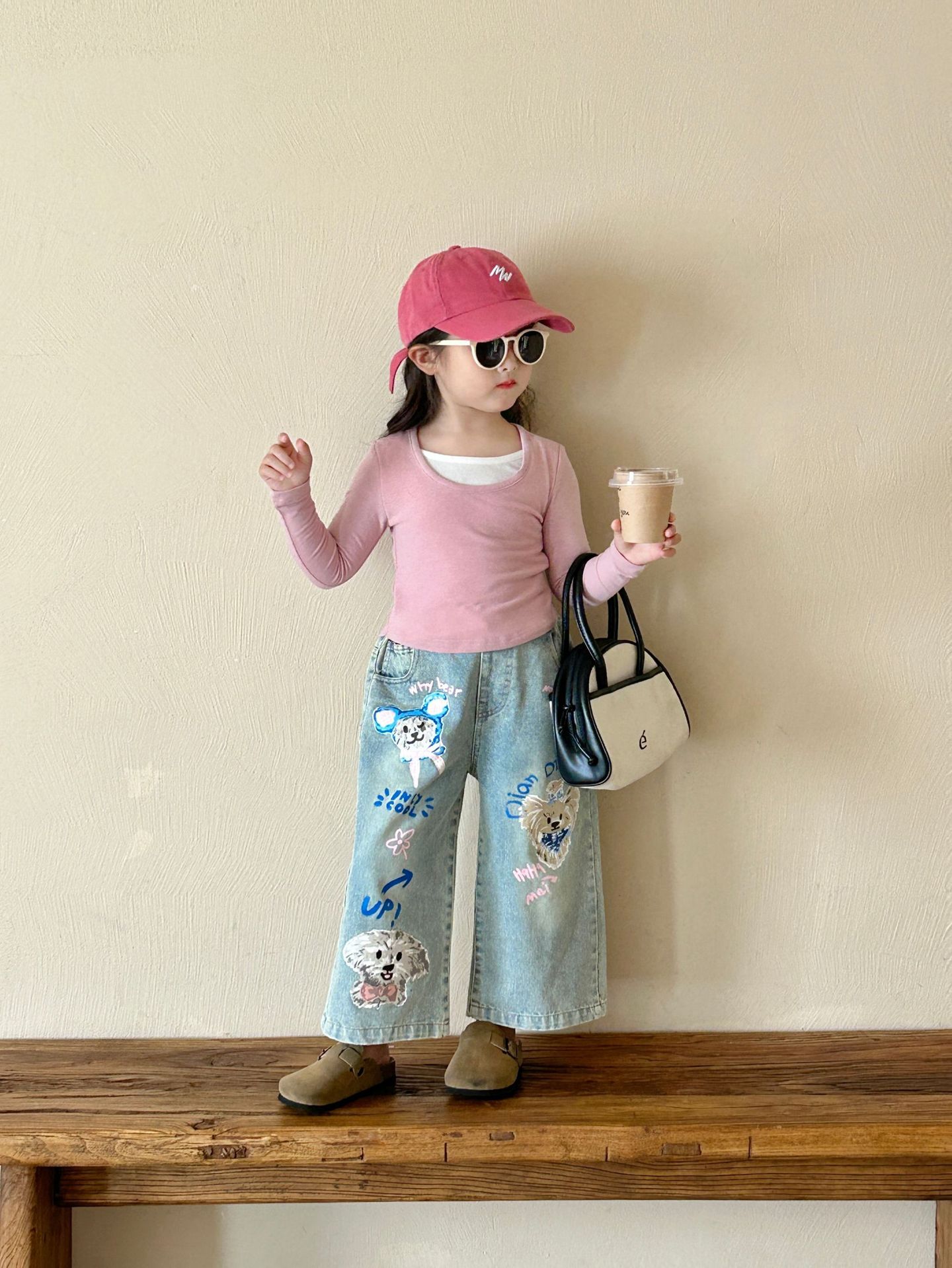 소녀 청바지 2024 가을 새 어린이 2-7 세 한국 스타일 넓은 다리 바지 어린이 느슨한 외부 착용 바지스토어 가기