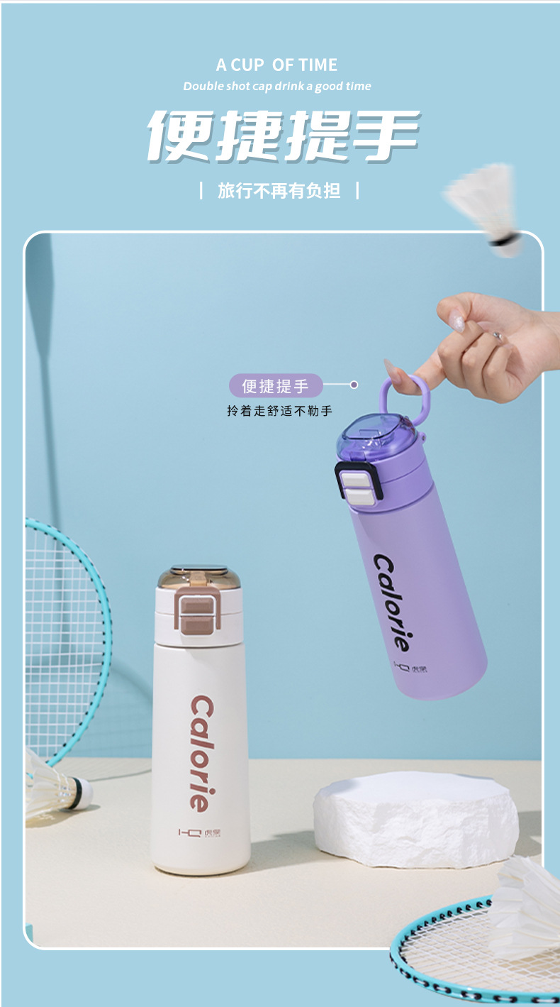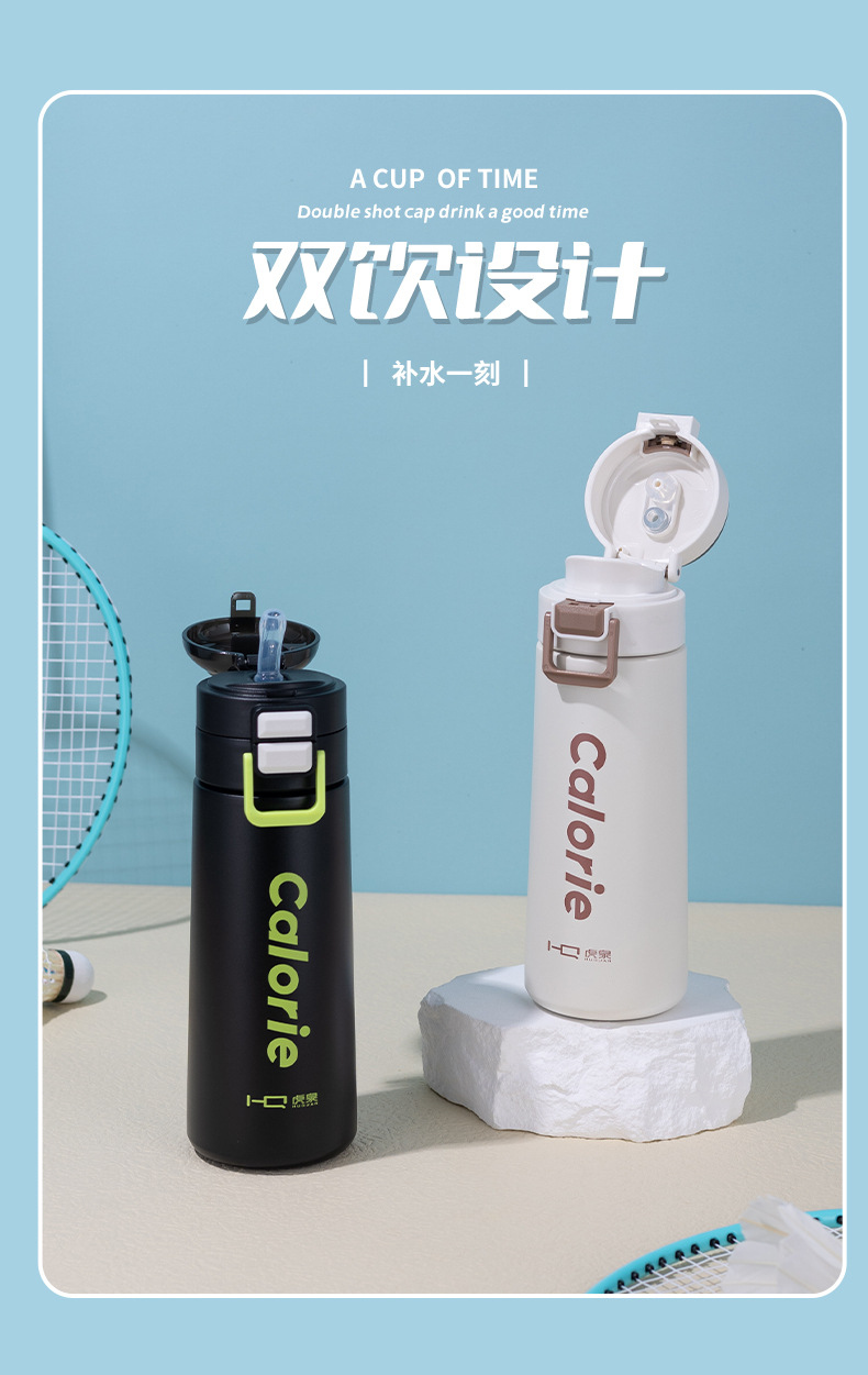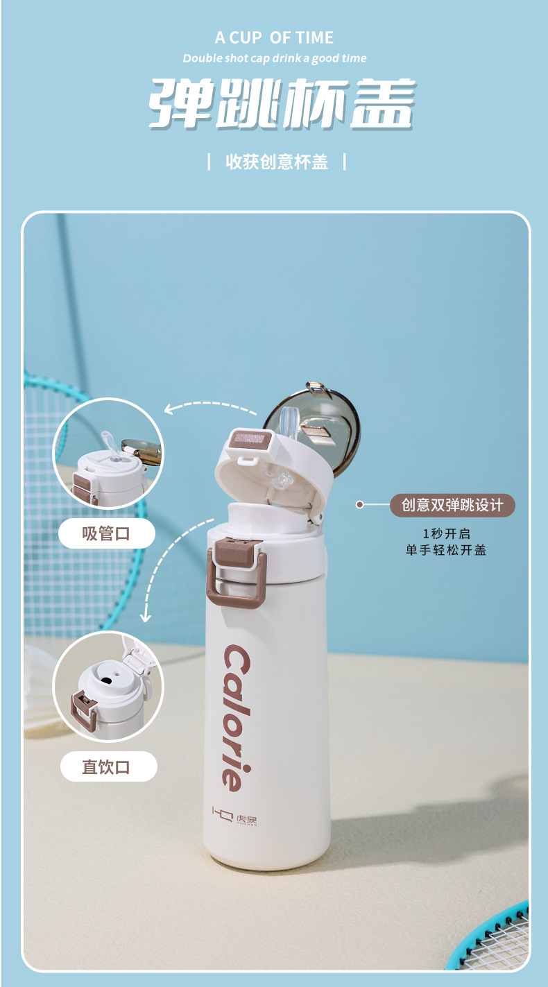 새로운 더블 음료 어린이 진공 보온병 컵 316 스테인레스 스틸 남성과 여성 학생 귀여운 휴대용 폭탄 뚜껑 밀짚 컵