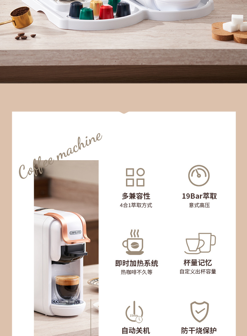 CAFELFFE 캡슐 커피 기계 자동 가정용 작은 이탈리아 휴대용 올인원 다기능 캡슐 기계 재고스토어 가기