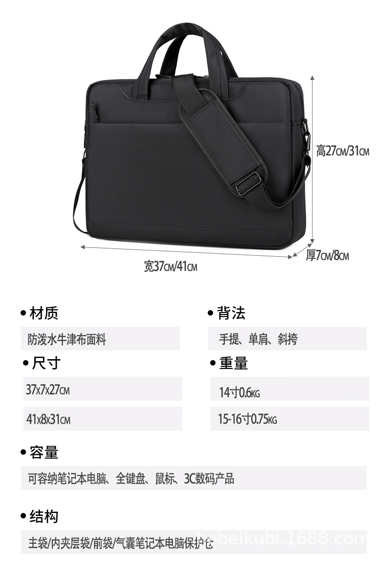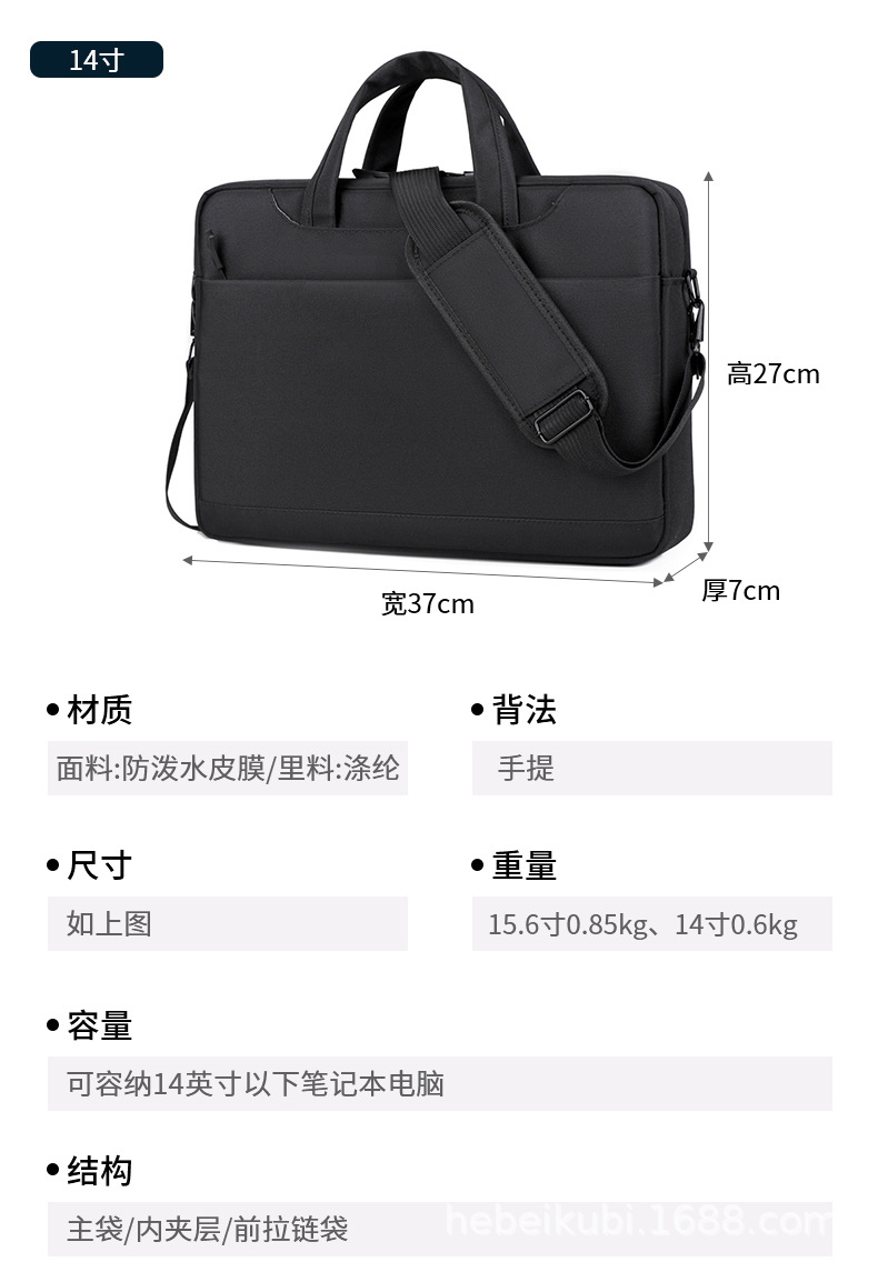 노트북 가방 두꺼운 착용 방지 회의 문서 내부 가방 대용량 휴대용 크로스 바디 비즈니스 사무실 가방스토어 가기