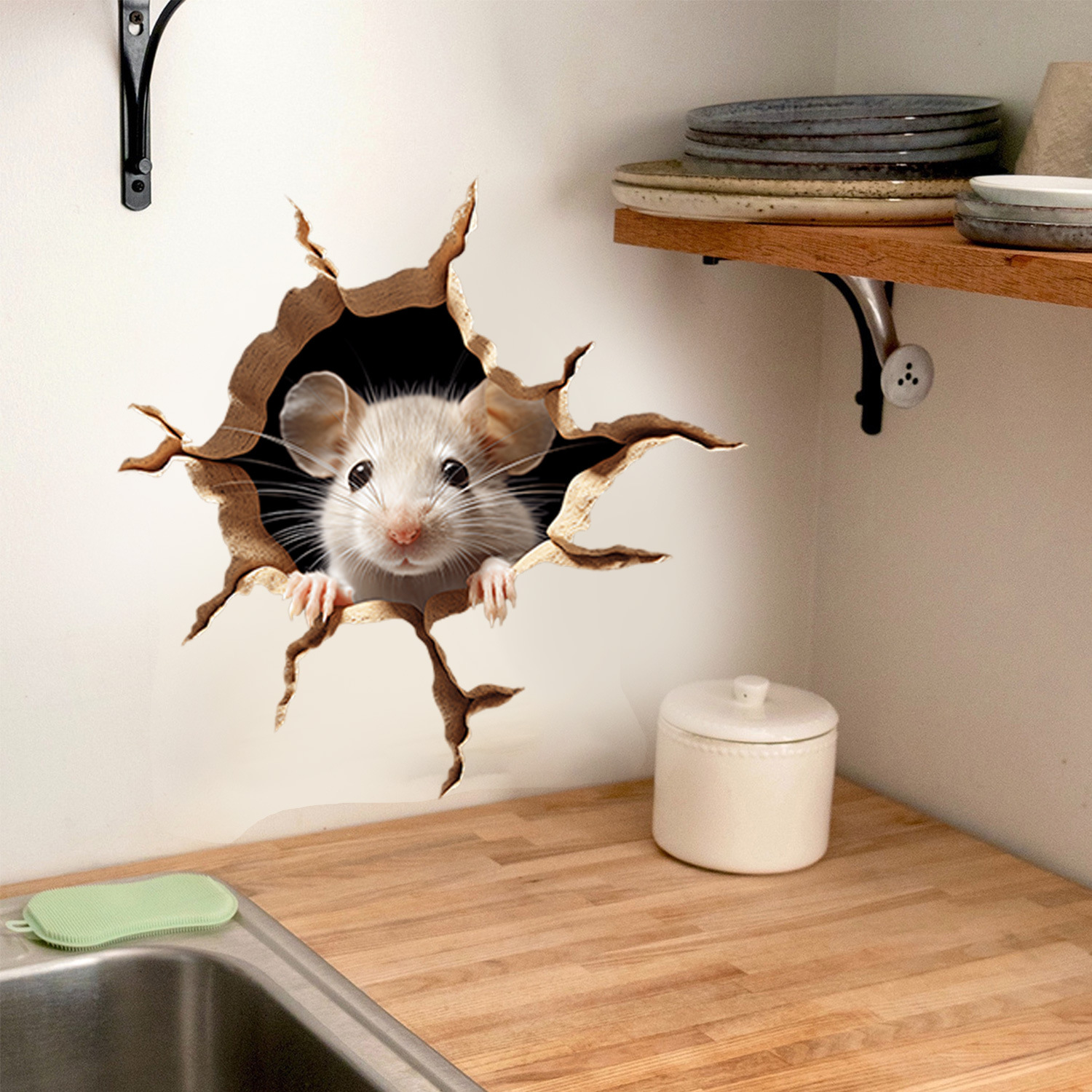 아마존 깨진 벽 프로브 귀여운 마우스 스티커 배경 벽 거실 장식 미화 벽 스티커 자체 접착 벽