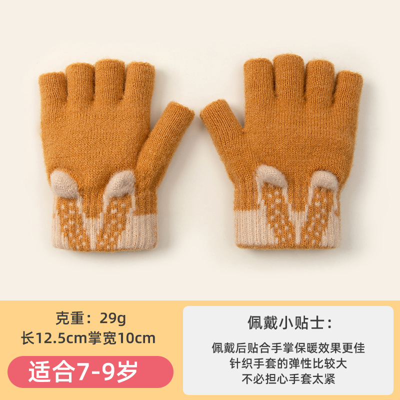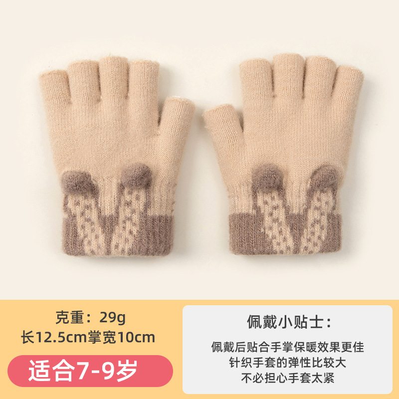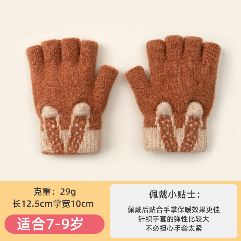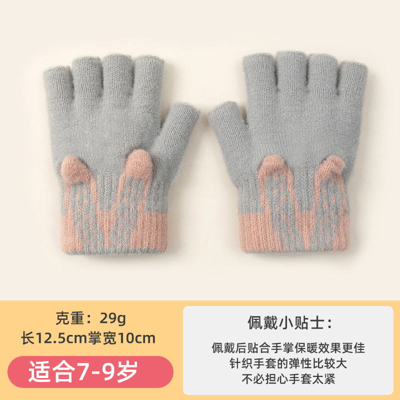 3 차원 귀여운 반 손가락 초등학생 여성 가을과 겨울 손가락 노출 글쓰기 니트 양모 두꺼운 감기용 따뜻한 장갑스토어 가기