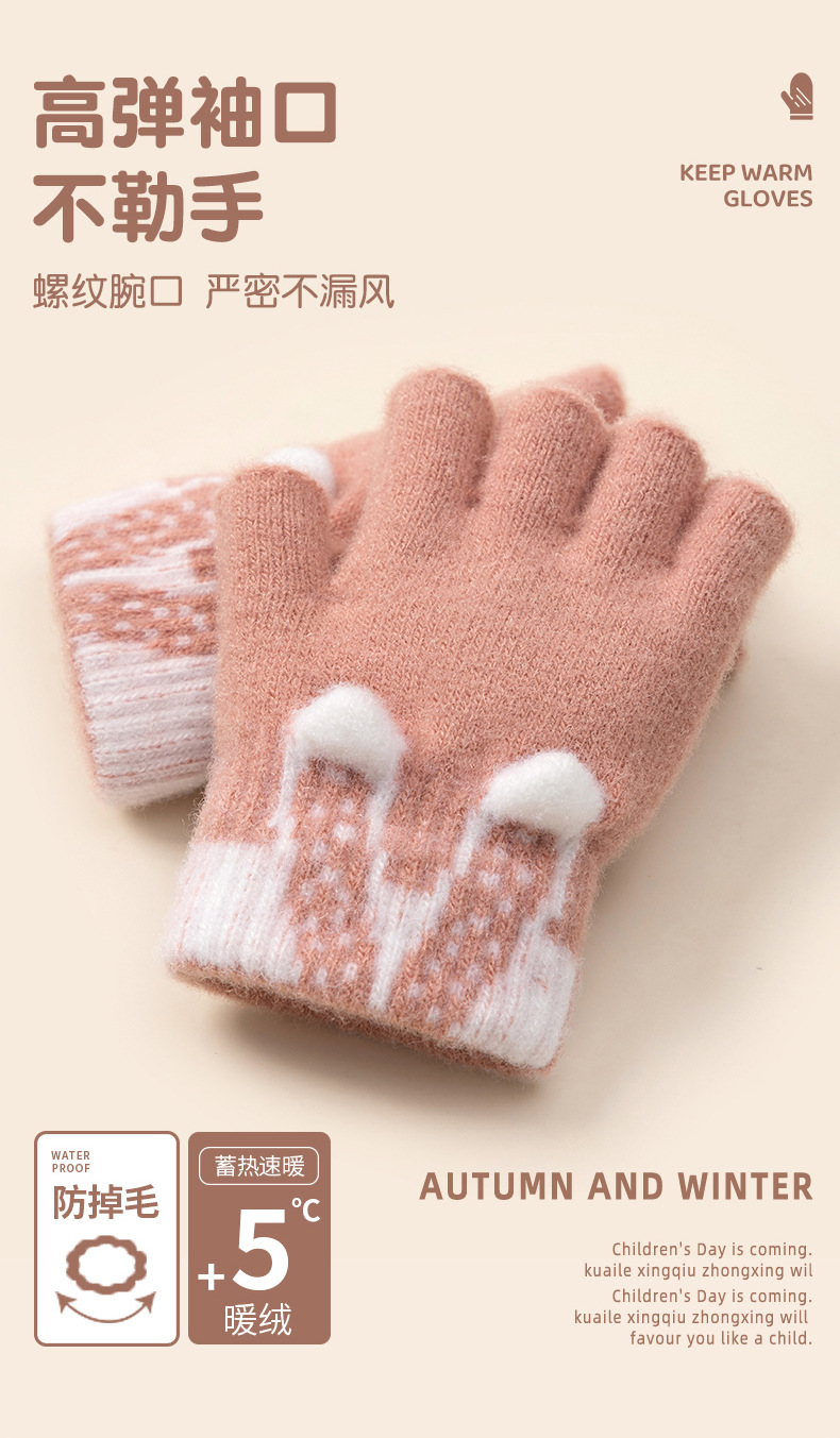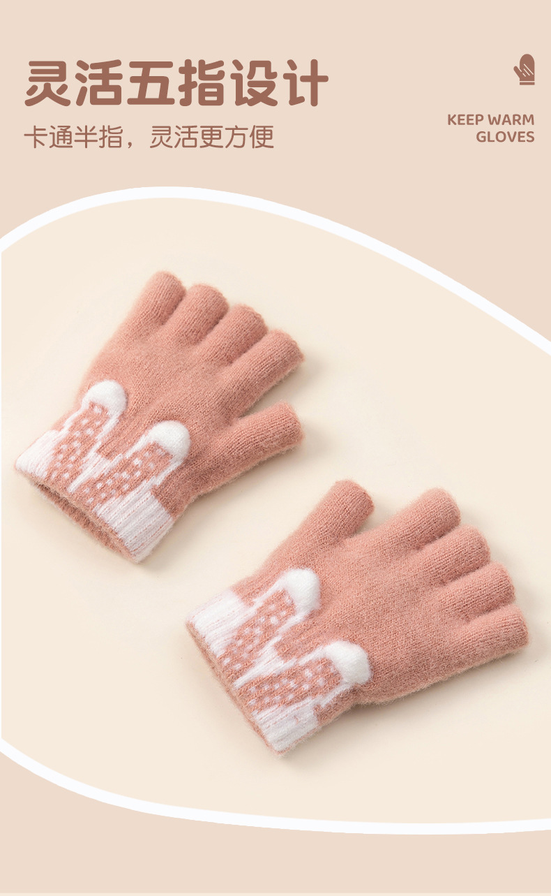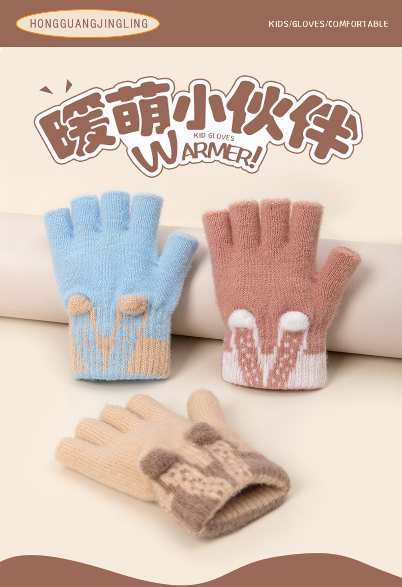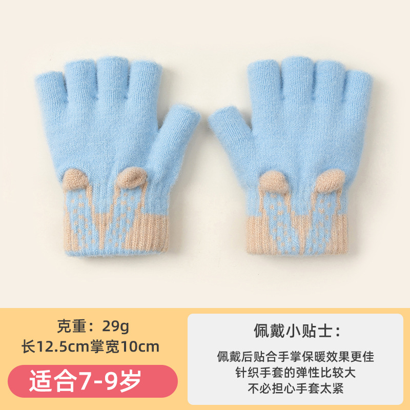 3 차원 귀여운 반 손가락 초등학생 여성 가을과 겨울 손가락 노출 글쓰기 니트 양모 두꺼운 감기용 따뜻한 장갑