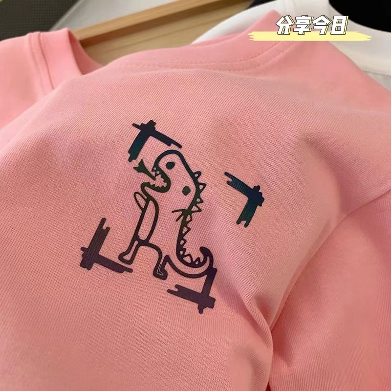 가을 어린이 아기의 올매치 유행 캐주얼 한국식 빛나는 반사 공룡 긴팔 티셔츠 소년 소녀를위한 트렌디스토어 가기