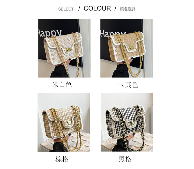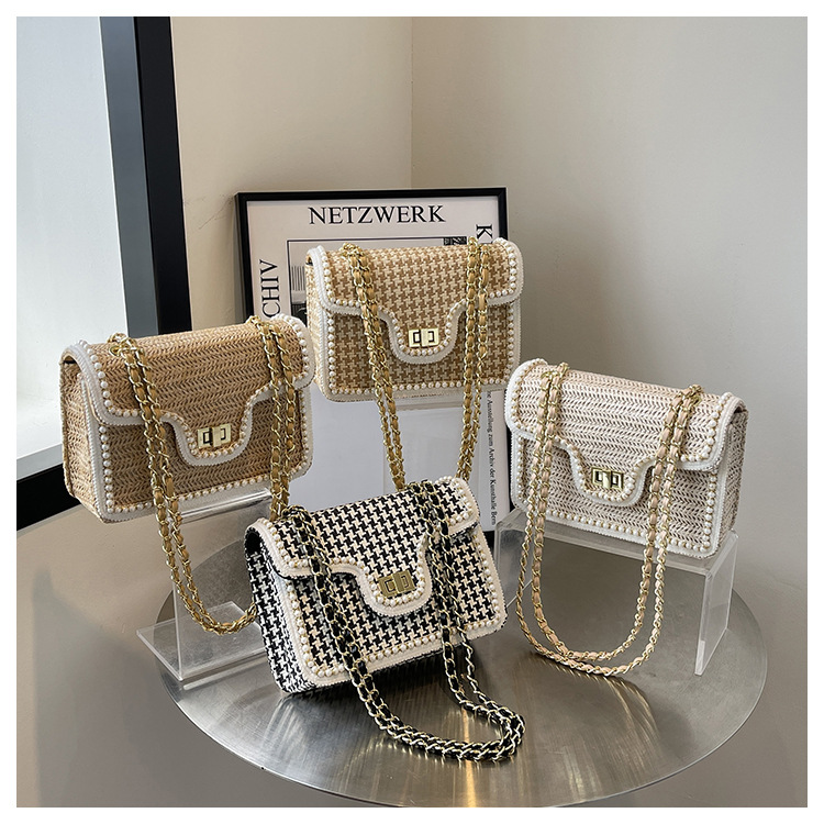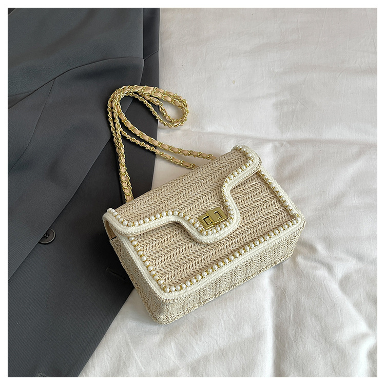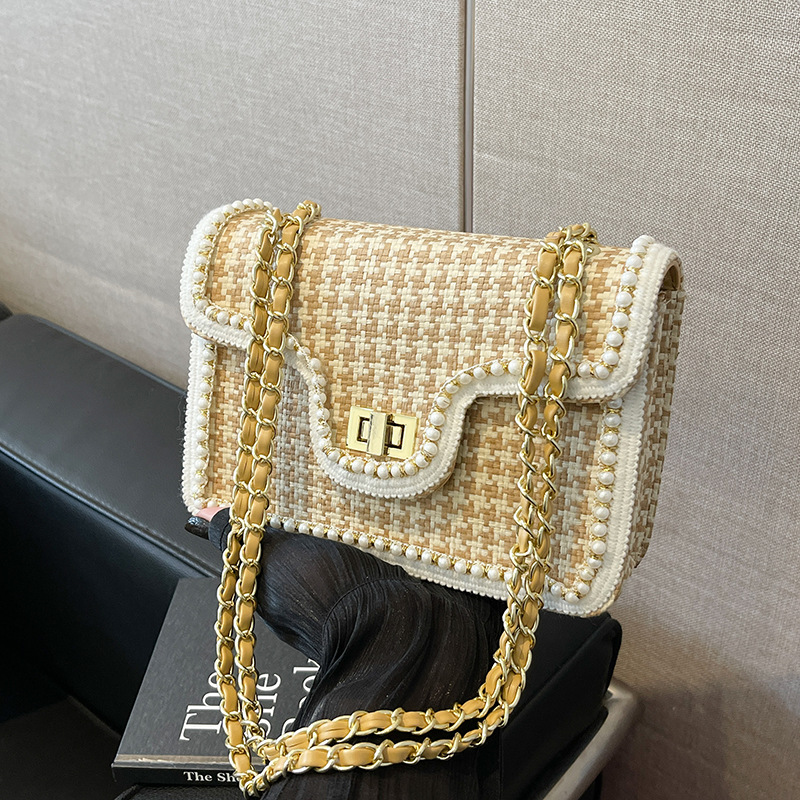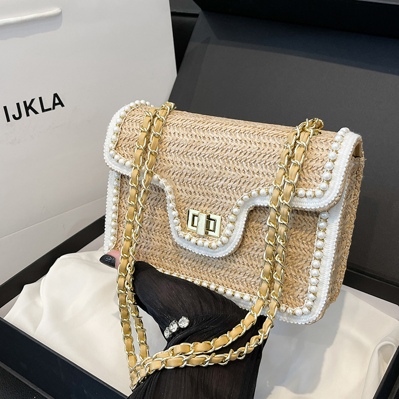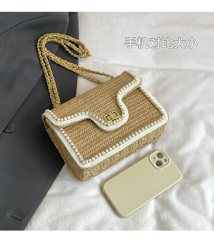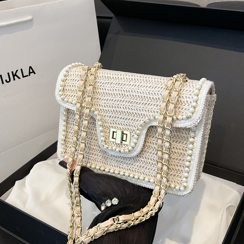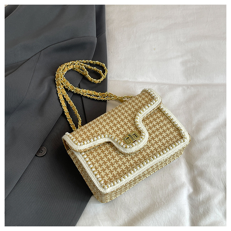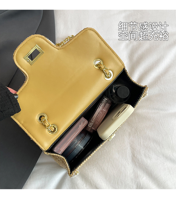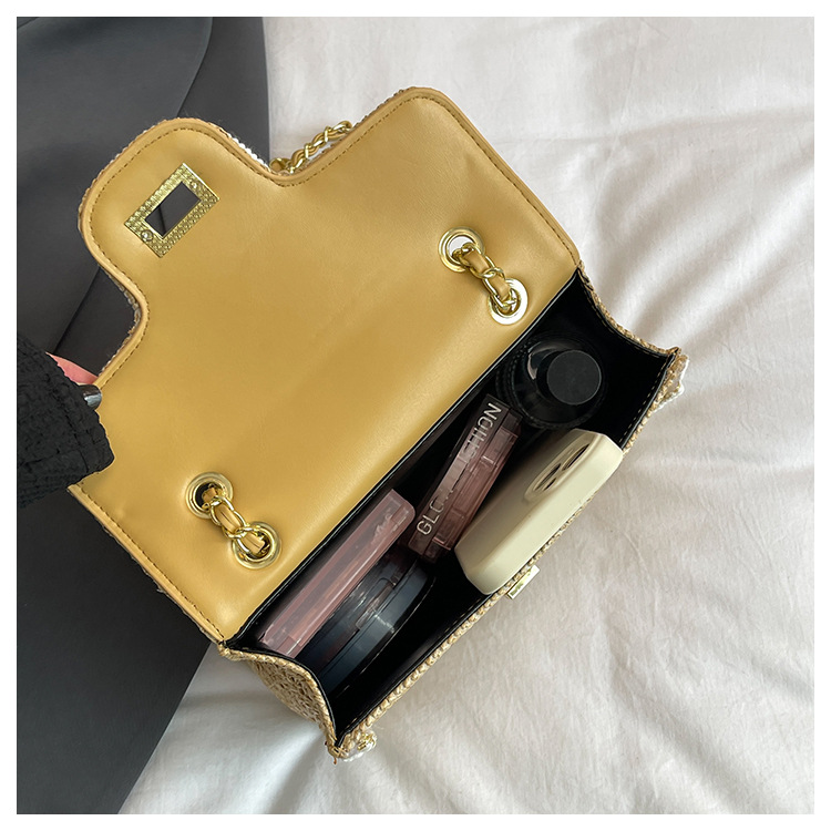 밀짚 짠 체인 속옷 가방 여성 가방 2024 새로운 고급 질감 인터넷 연예인 올 매치 유행 체인 작은 사각형 가방스토어 가기