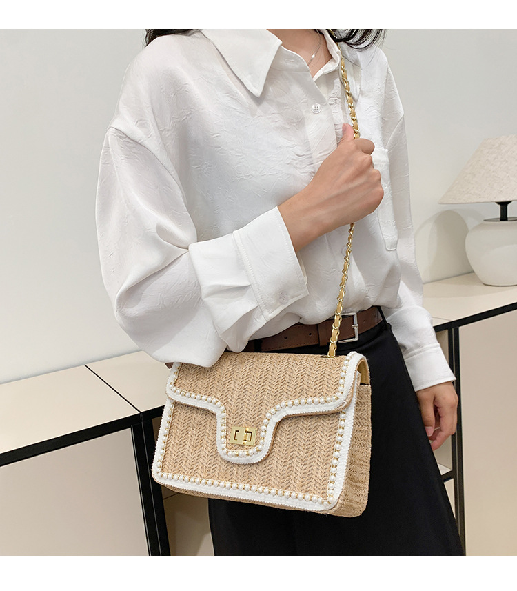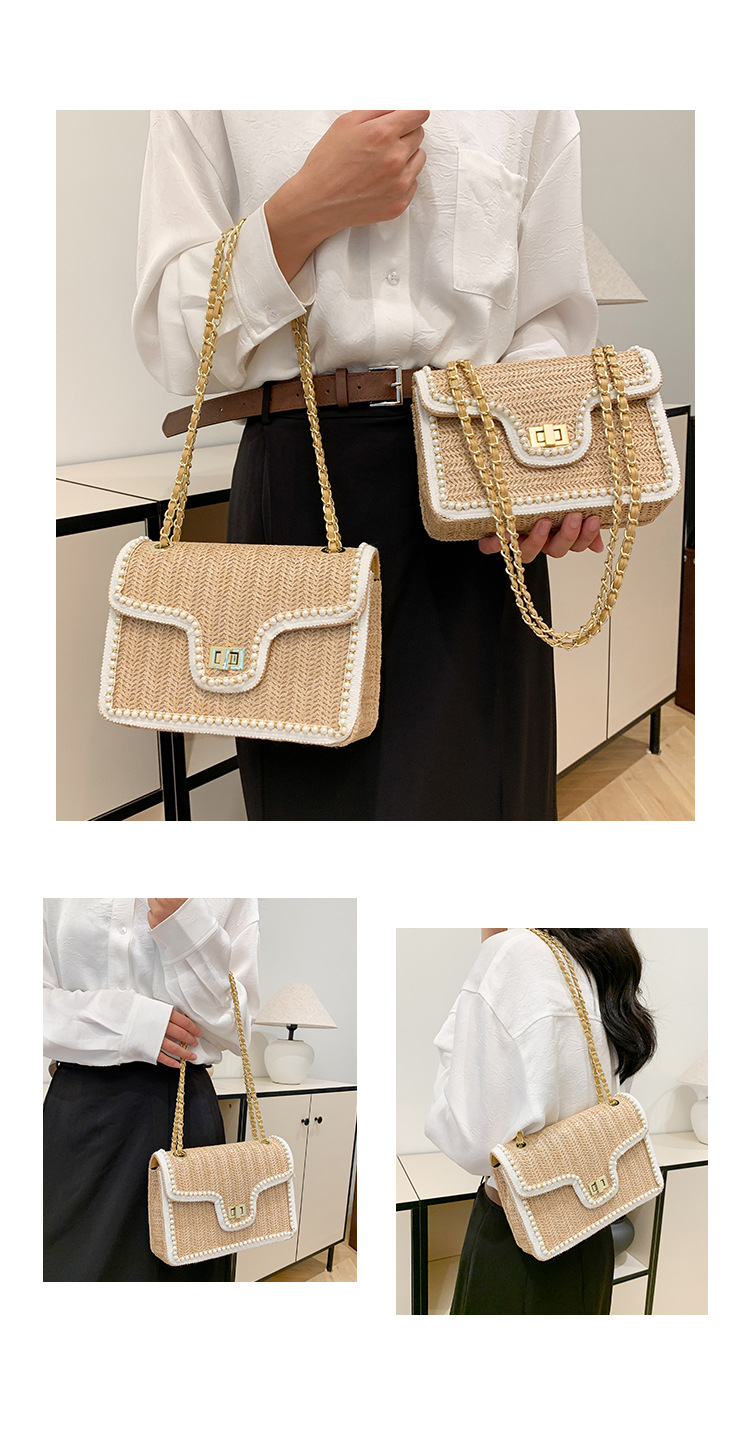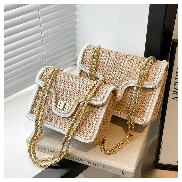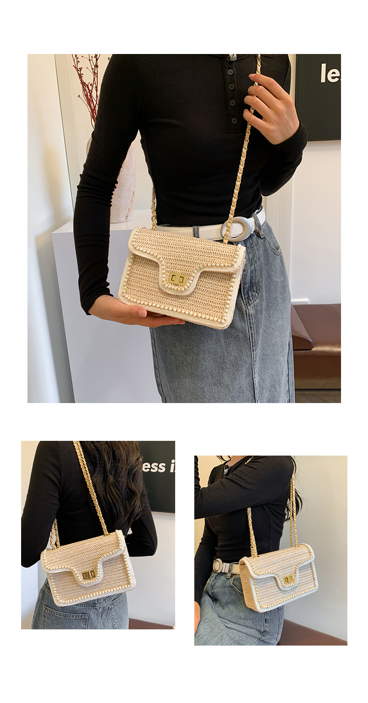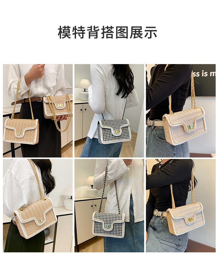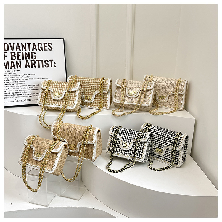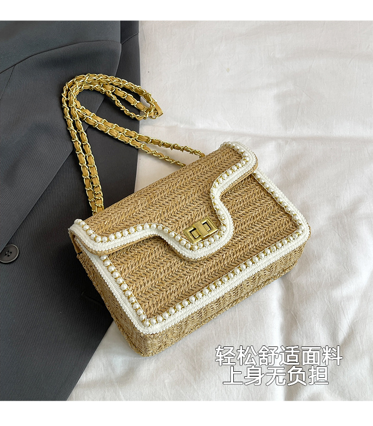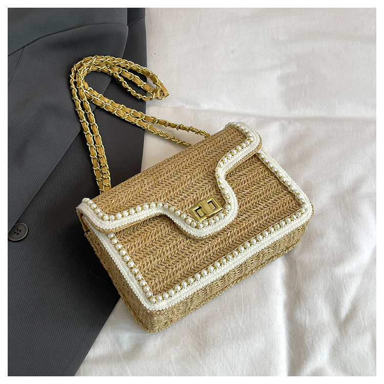 밀짚 짠 체인 속옷 가방 여성 가방 2024 새로운 고급 질감 인터넷 연예인 올 매치 유행 체인 작은 사각형 가방스토어 가기