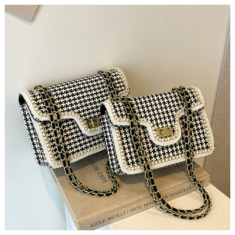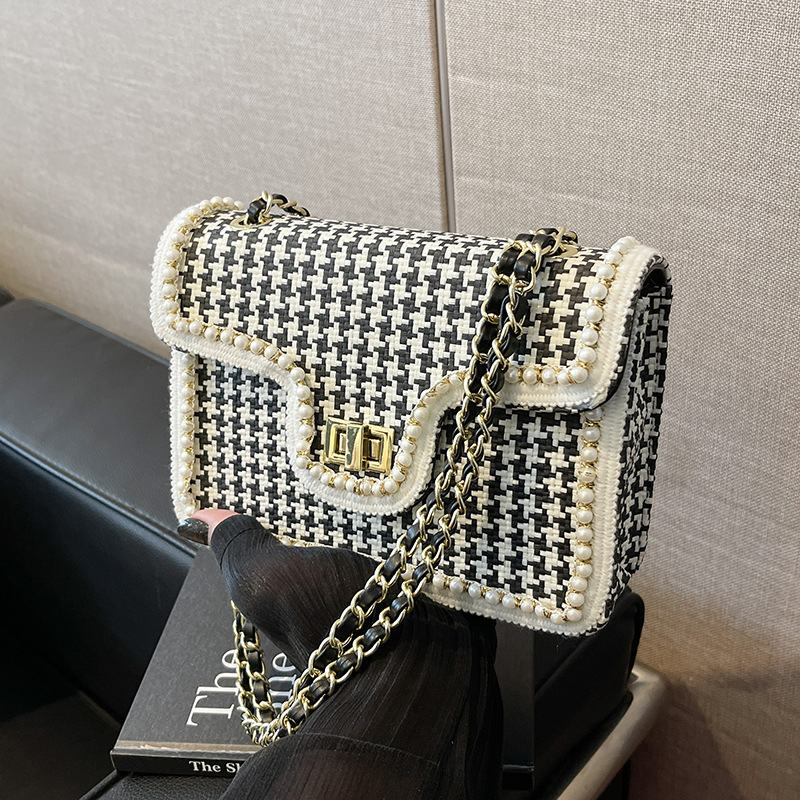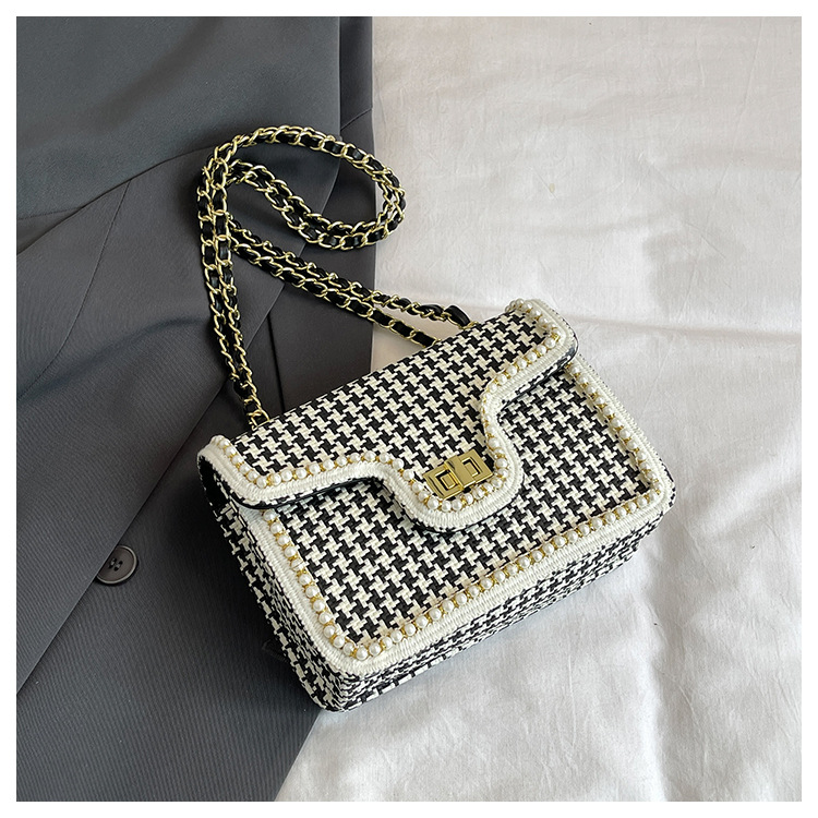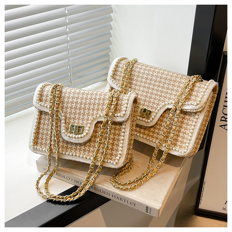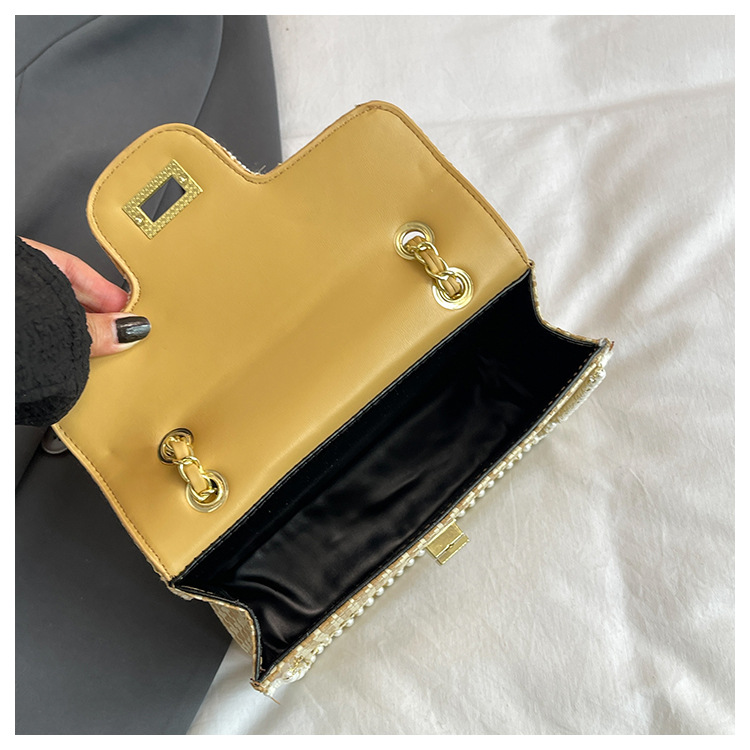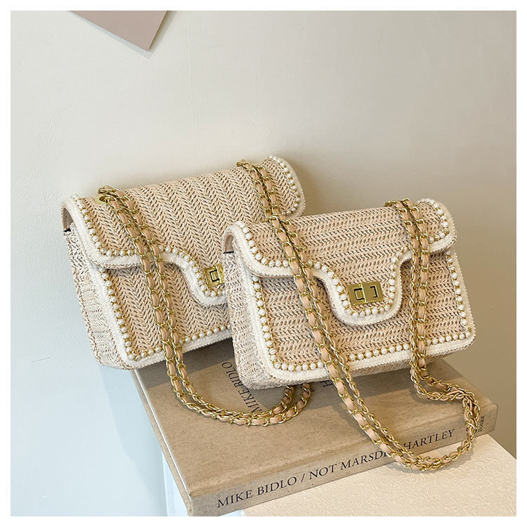 밀짚 짠 체인 속옷 가방 여성 가방 2024 새로운 고급 질감 인터넷 연예인 올 매치 유행 체인 작은 사각형 가방