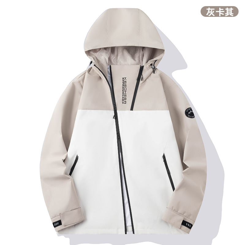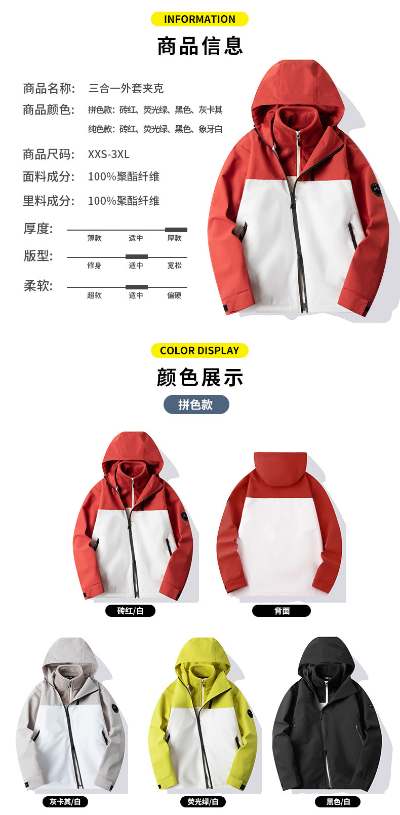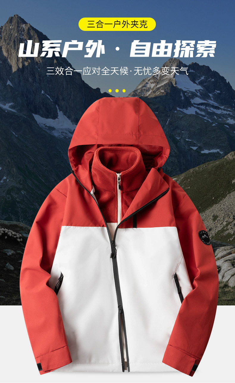 세 가지 기능을 하나로 갖춘 브랜드 동일 스타일의 봄/가을 커플 컬러블록 패셔너블한 아웃도어 남성 등산복 (로고 프린트)스토어 가기