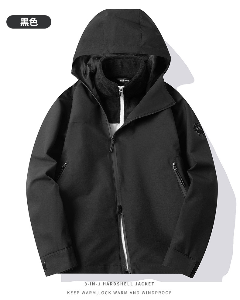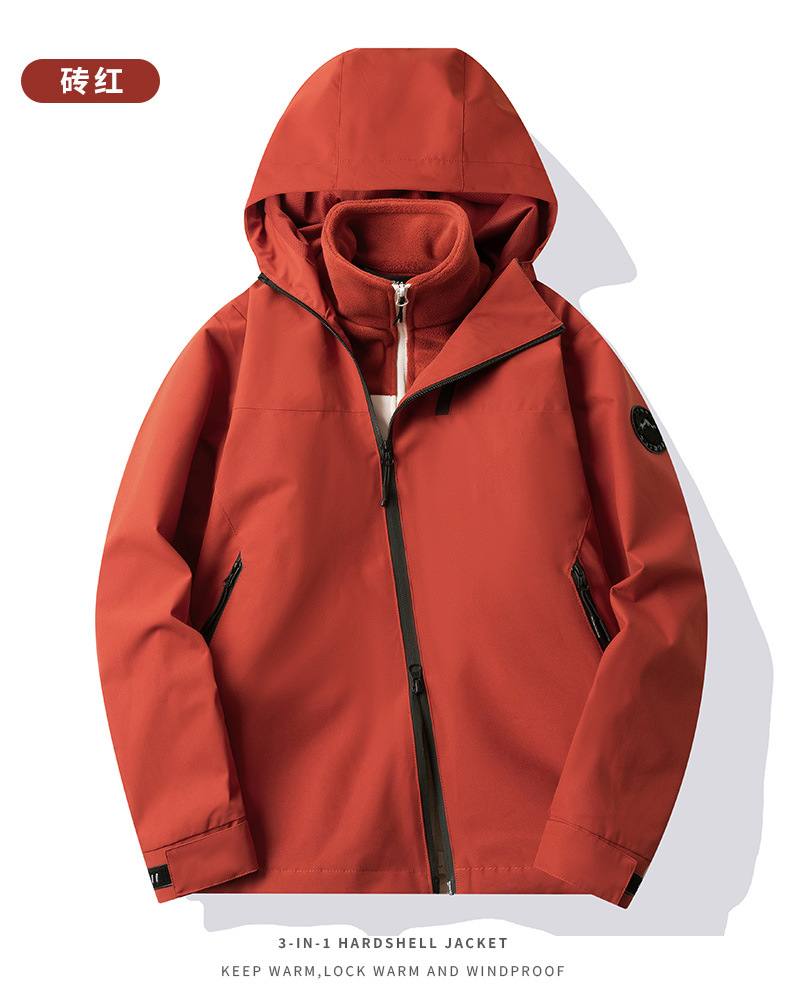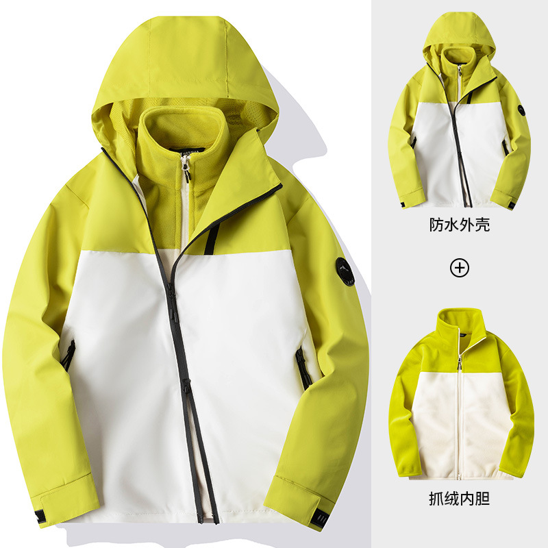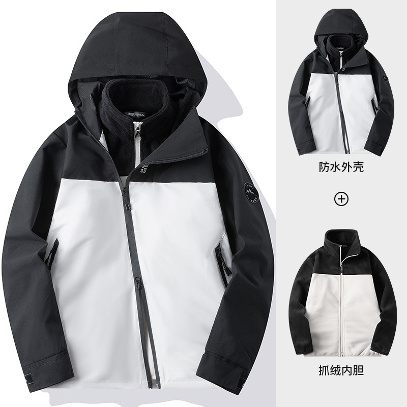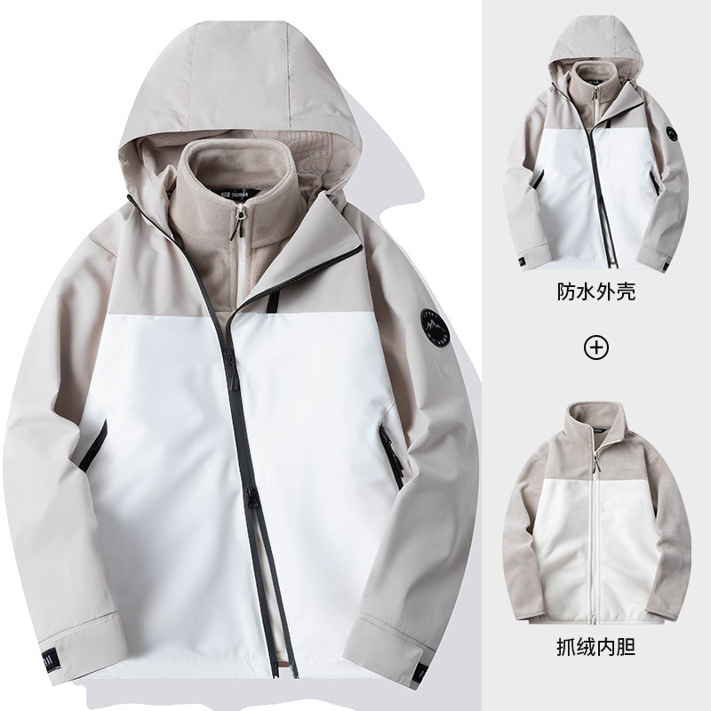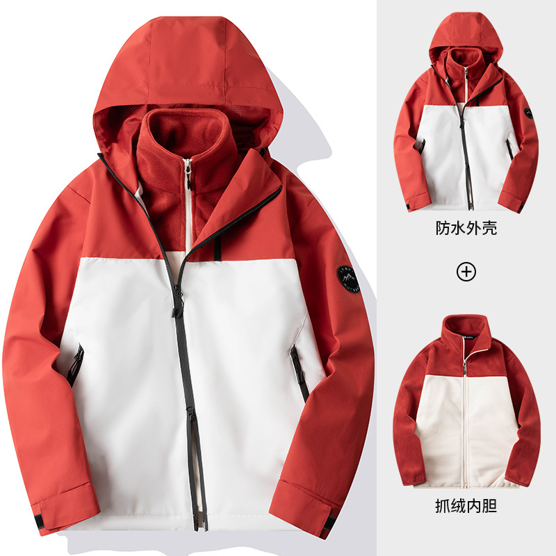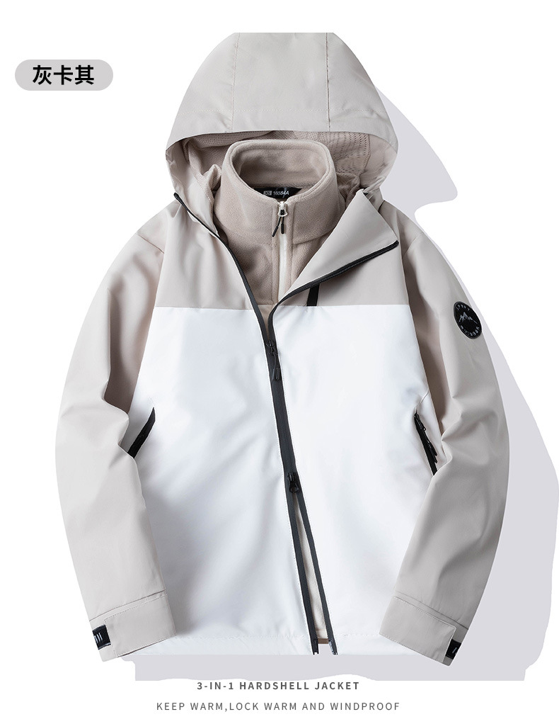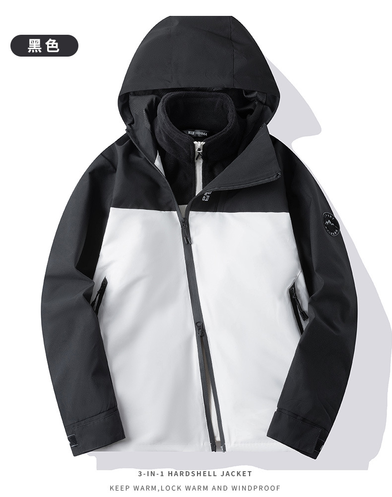 세 가지 기능을 하나로 갖춘 브랜드 동일 스타일의 봄/가을 커플 컬러블록 패셔너블한 아웃도어 남성 등산복 (로고 프린트)