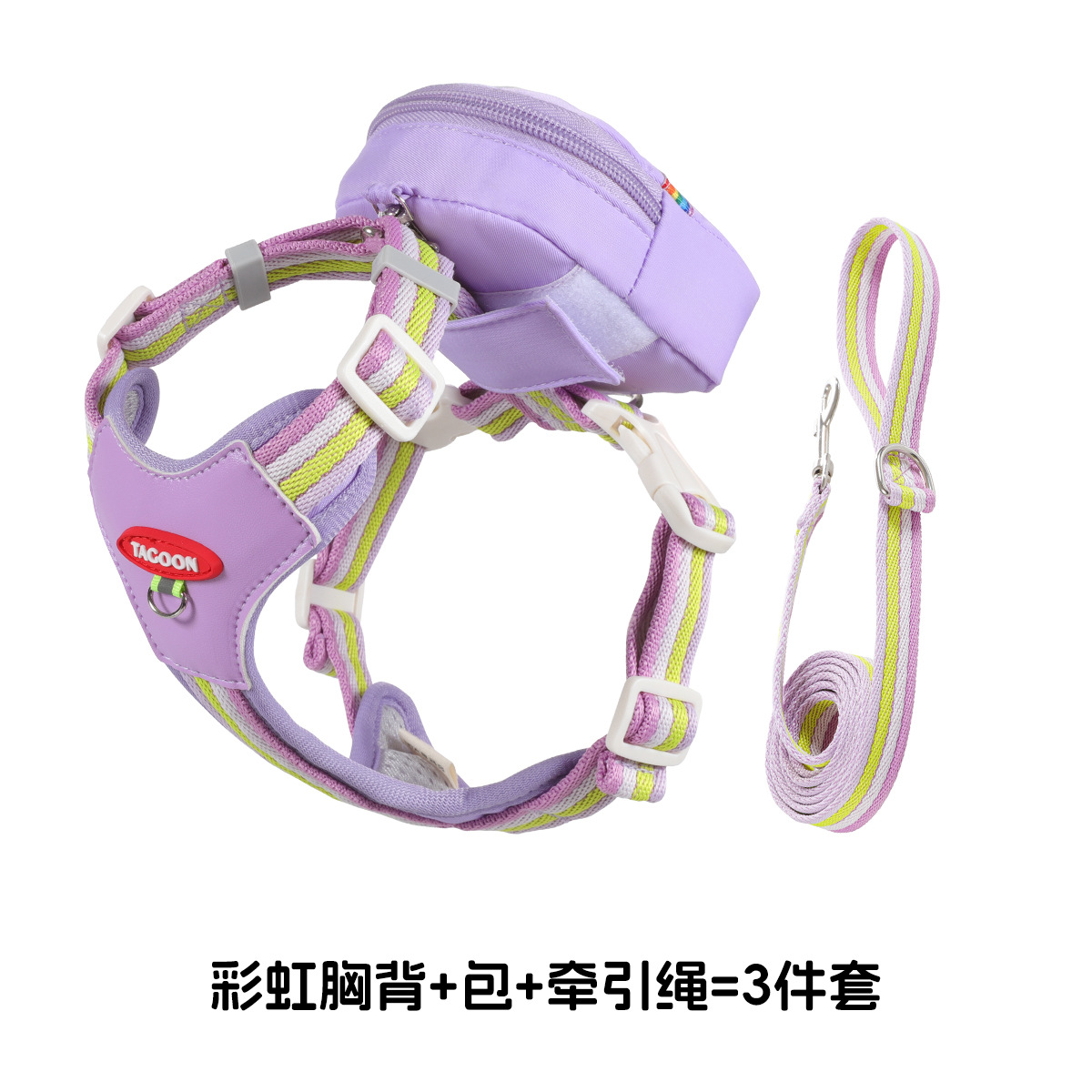 • 보라색 가슴 하네스 + 가방 + 리드줄 3종 세트
