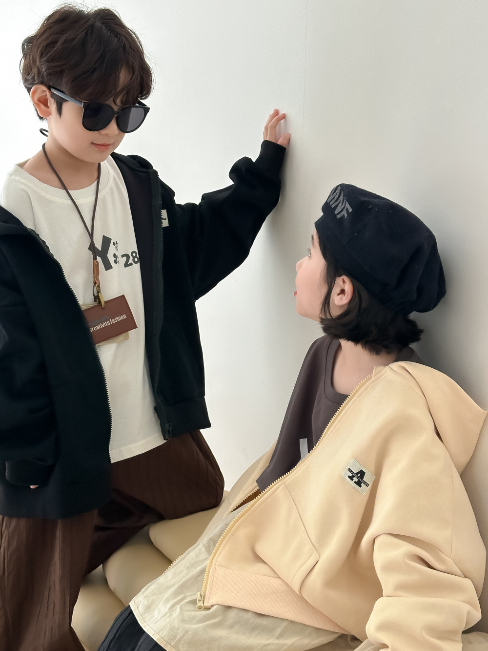 아동용 재킷 2026 봄 모델 남아 여아 한국 스타일 레터링 입체 자수 상의 아동 캐주얼 디자인 재킷 모샤오멍스토어 가기