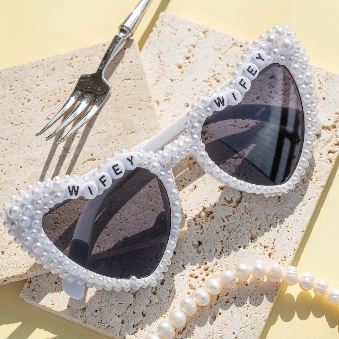 와이피 풀 펄 하트 모양의 안경 신부 들러리 진주 선글라스 여름 비치 풀 웨딩 싱글