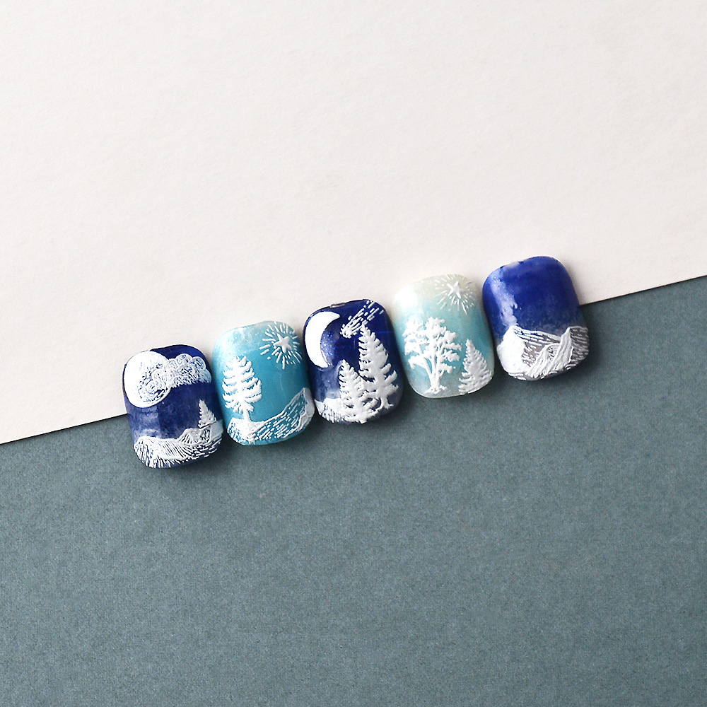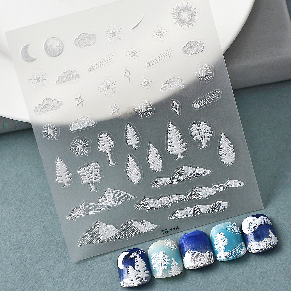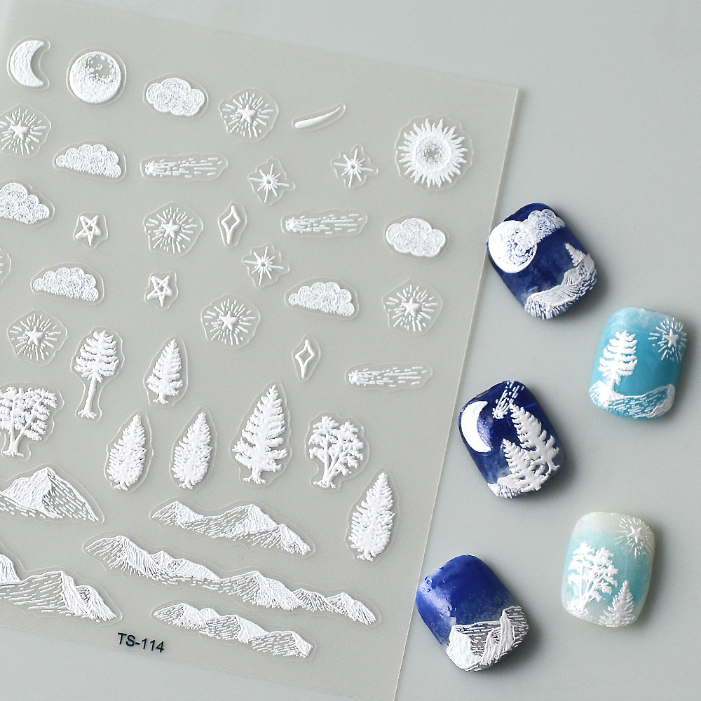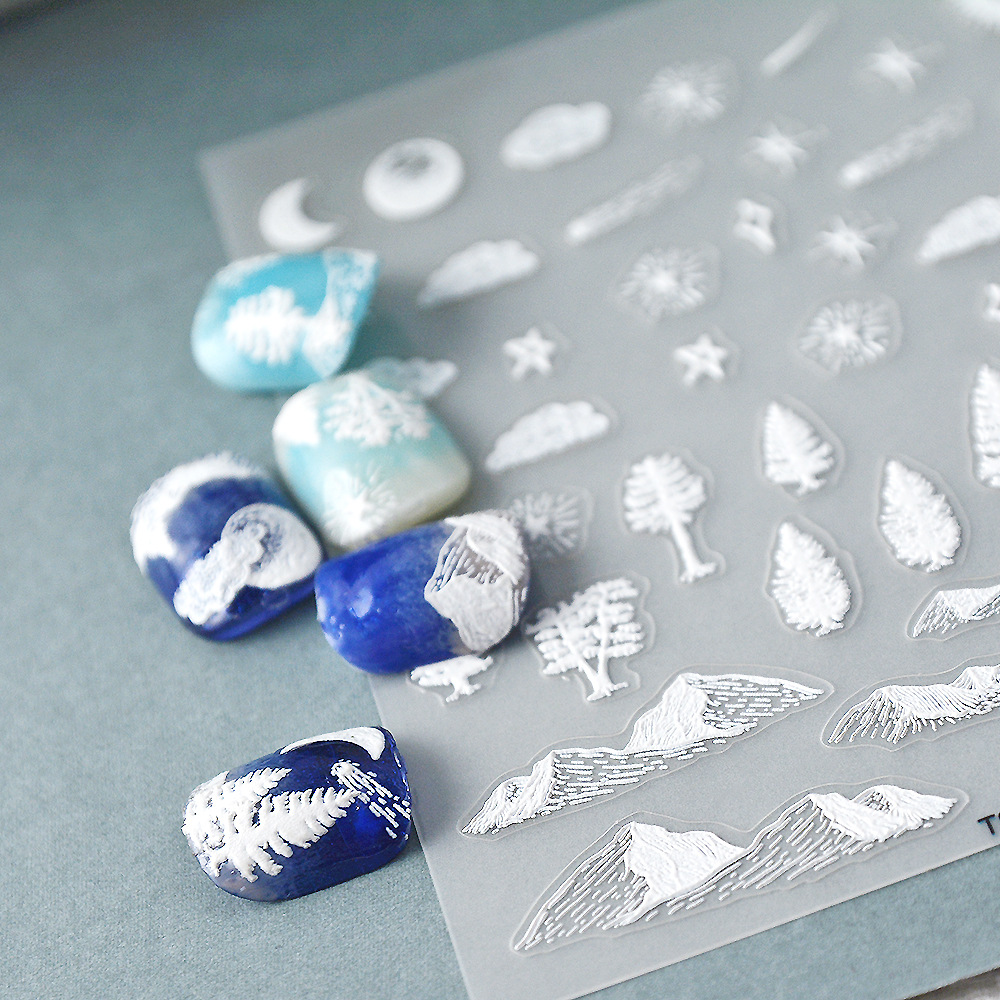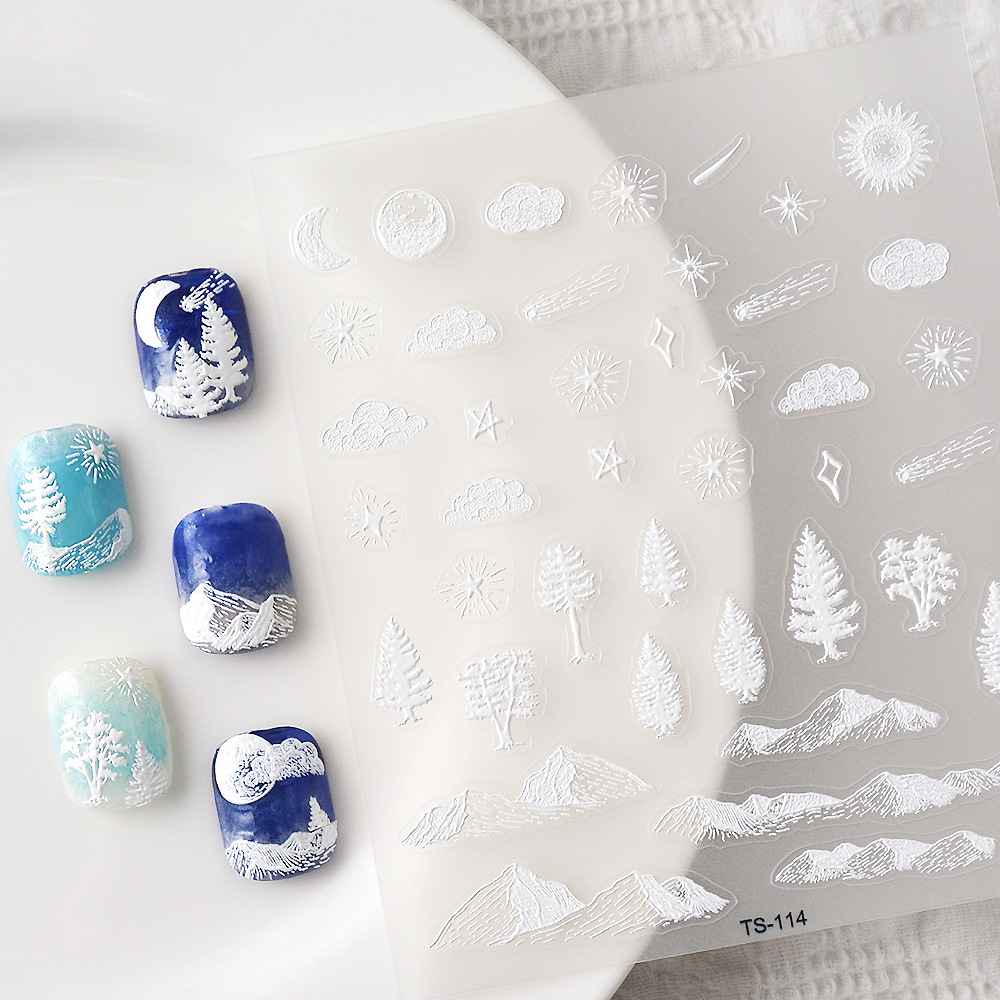 구호 네일 스티커 DIY 손 계정 스티커 달콤한 단색 눈 숲 산 재고 도매 네일 스티커