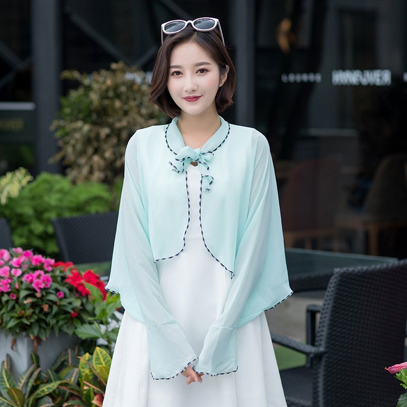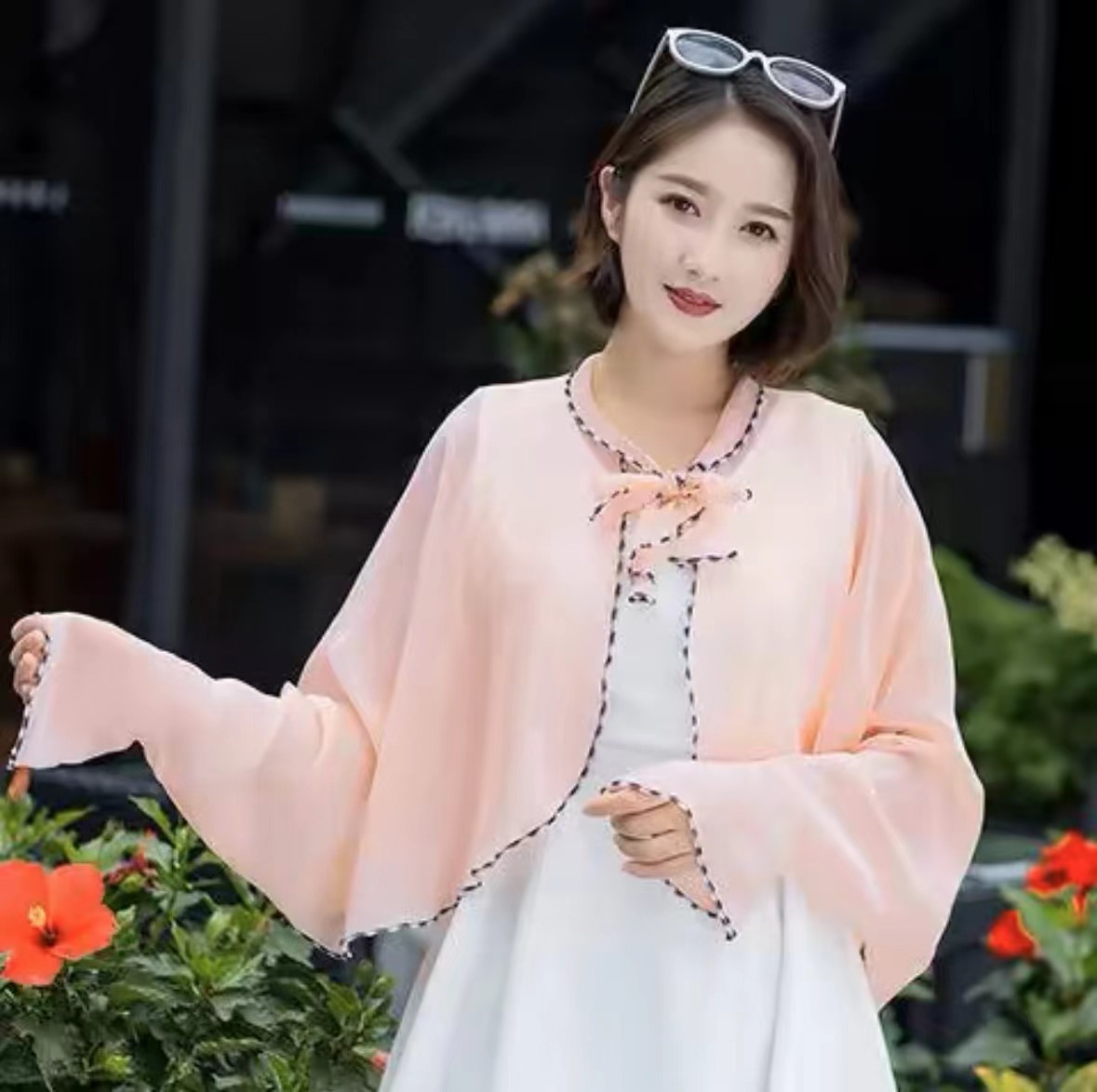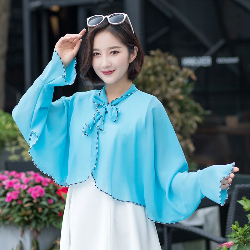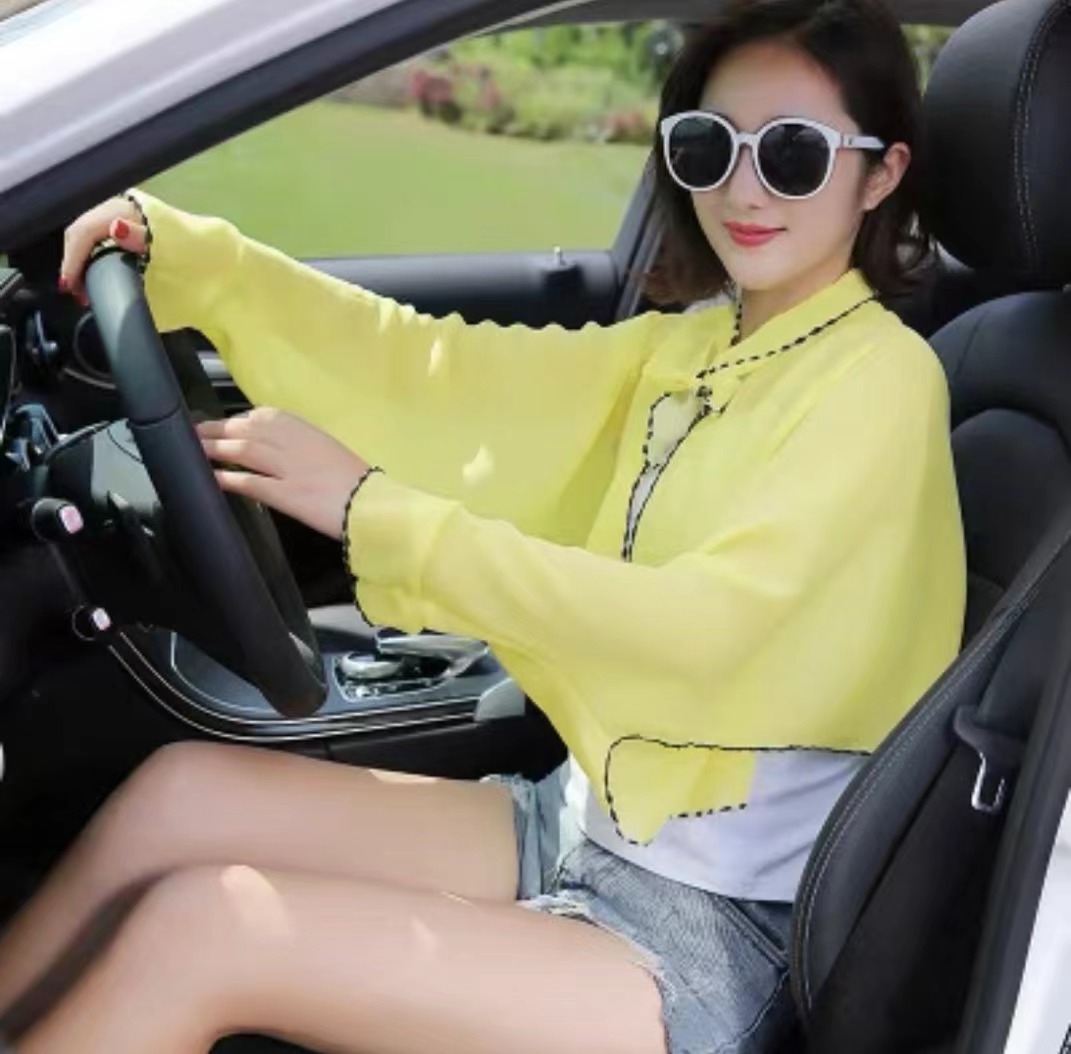 선스크린 목도리 여름 긴팔 Ruffled 시폰 얇은 통기성 실크 스카프 라이딩 차양 및 선스크린 의류스토어 가기