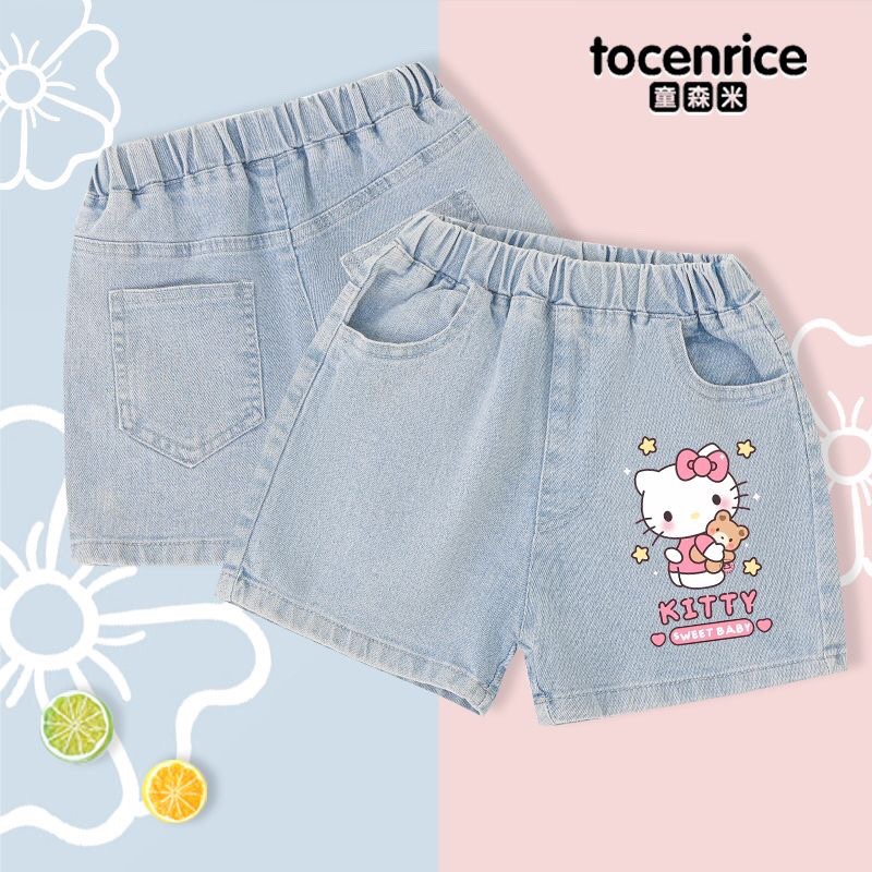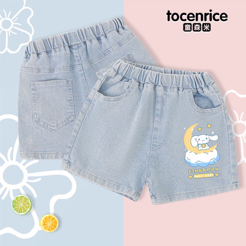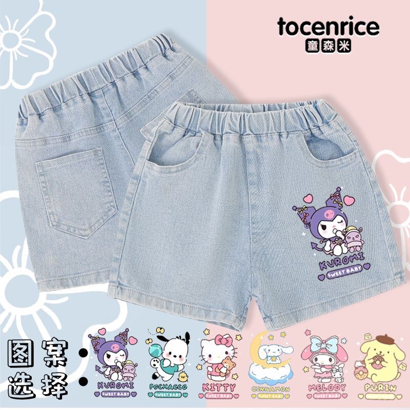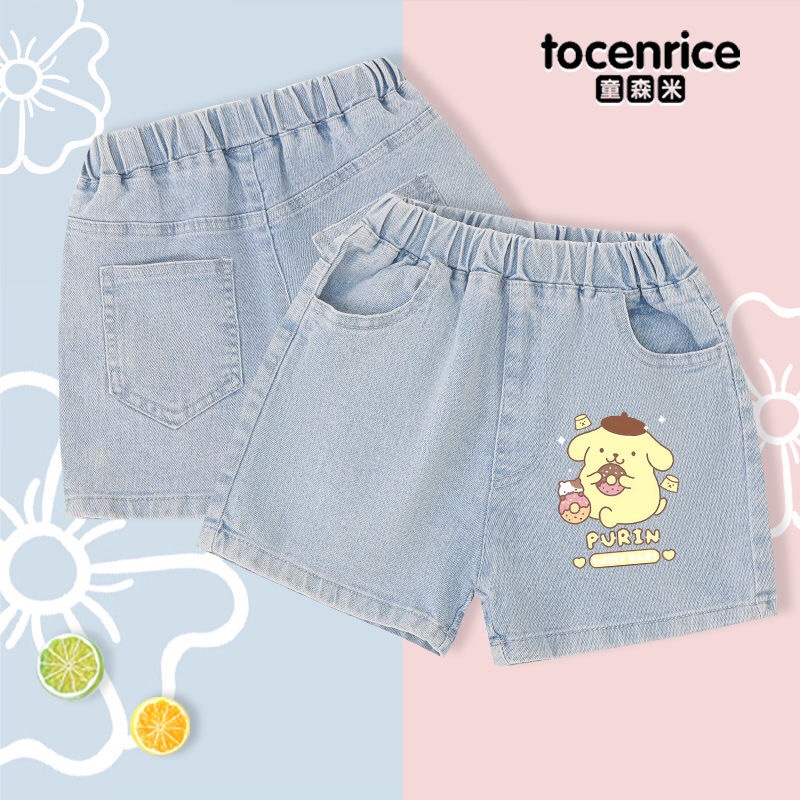 Pom Pom Purin Pudding Girl's Jeans New Style Middle and Big Kid Kulomi Pants 얇은 반바지 8스토어 가기