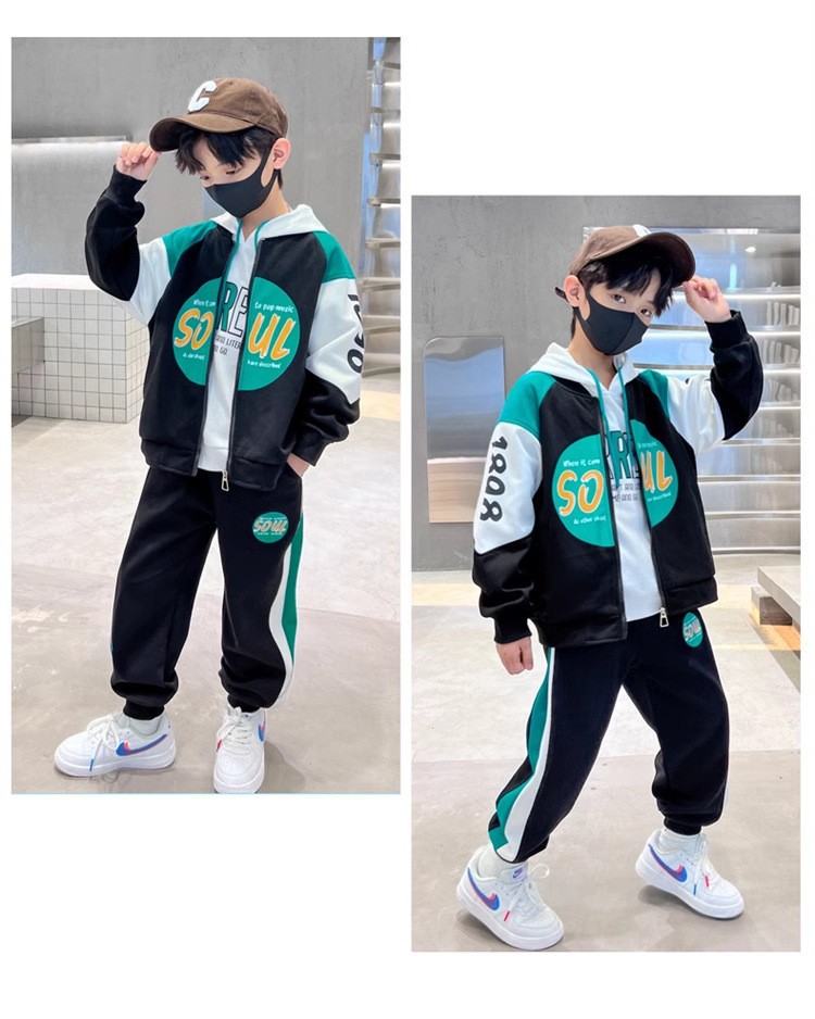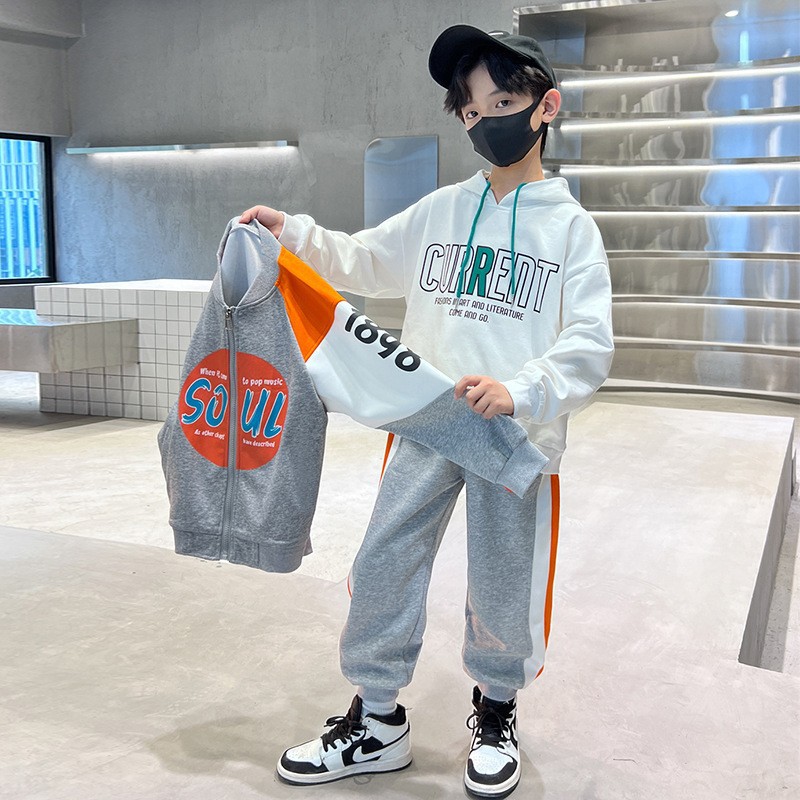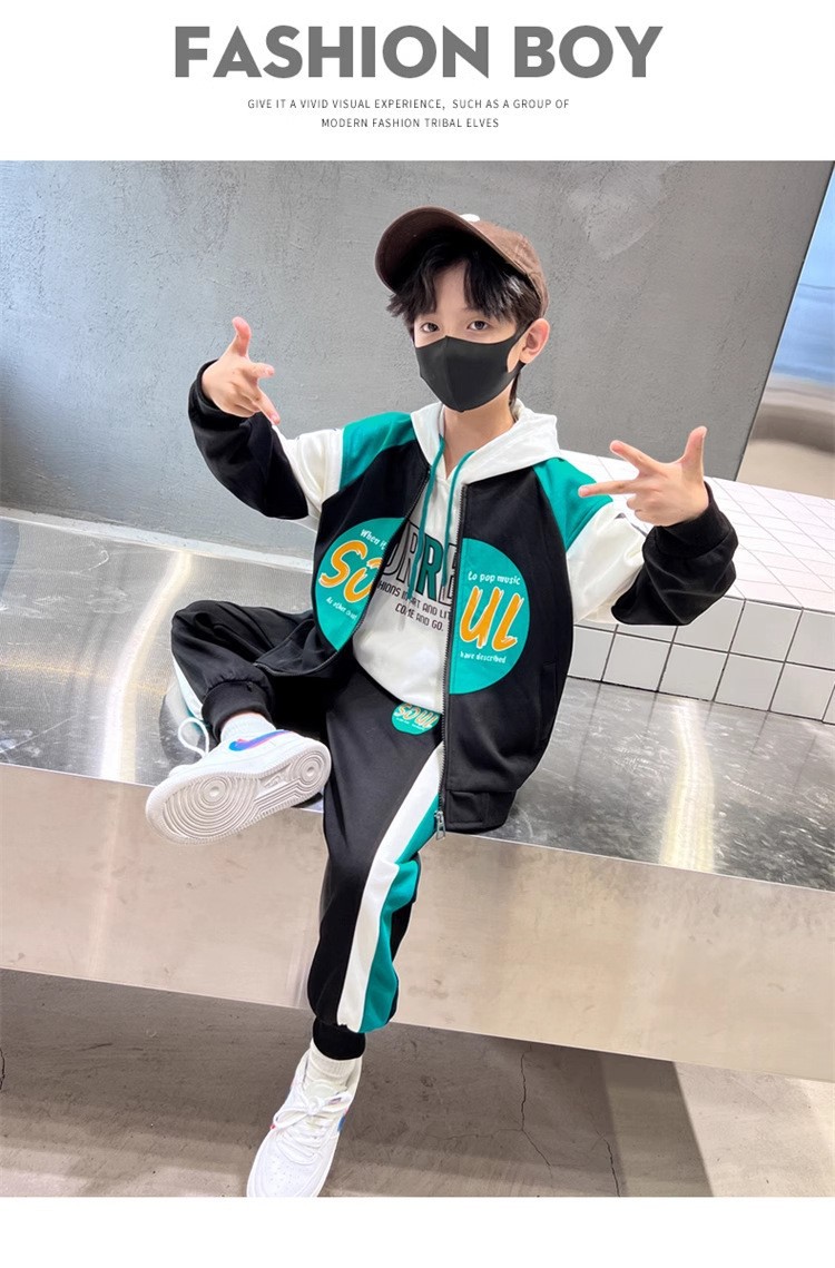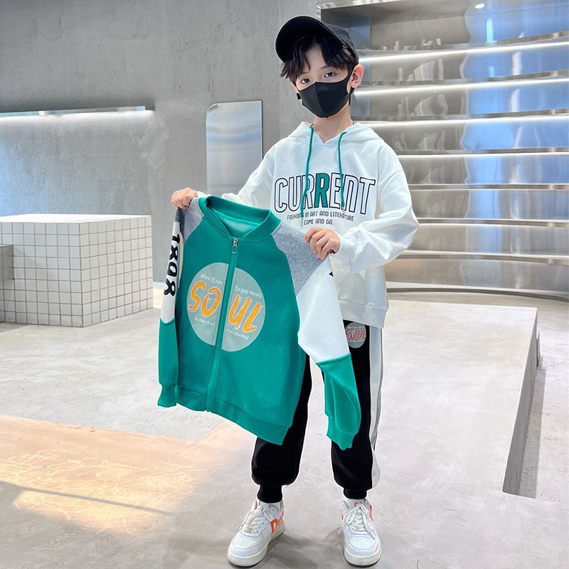 어린이 패션 유행 느슨한 캐주얼 스포츠 세트 소년 소녀 잘 생긴 지퍼 카디건 스웨터 팬츠 투피스 세트스토어 가기